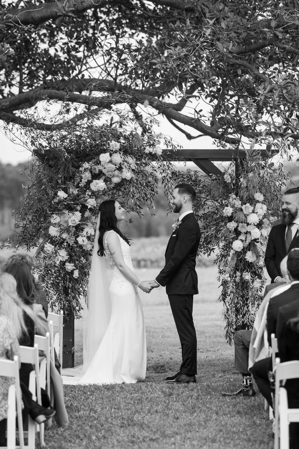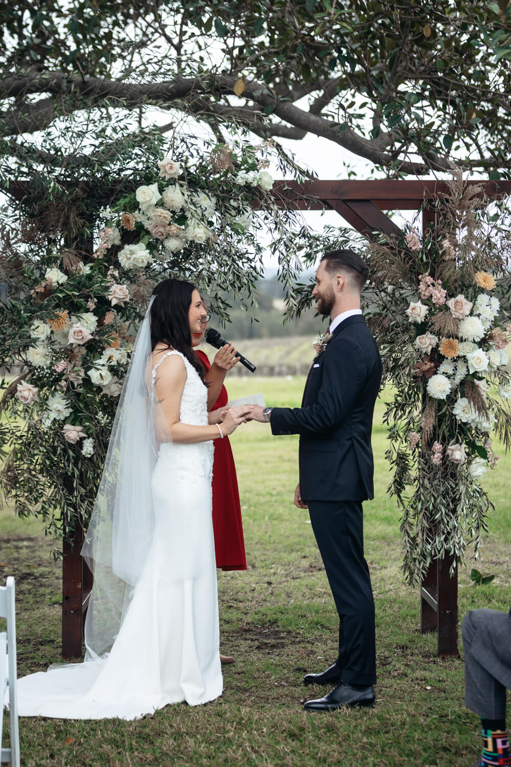 How did the proposal take place that lead to your Bimbadgen Palmers Lane wedding?: We both aren’t big on huge public proposals, so wanted to keep it simple and private for both of us. The original date for the proposal was in March, I had come back from school camp exhausted and sick, and our second bedroom flooded to the point were we had to take up all the carpet. Safe to say Matt re-scheduled the proposal for a later date. About a month later we’d decided to do something nice for our 4 year anniversary which Matt had used that opportunity to propose. He booked a fancy room at a wonderful hotel overlooking Sydney harbour. We checked in and went to our room where Matt got down on one knee, said a few really lovely things and asked me to marry him. We popped a bottle of champagne and celebrated with a extravagant dinner. It was perfect for us.