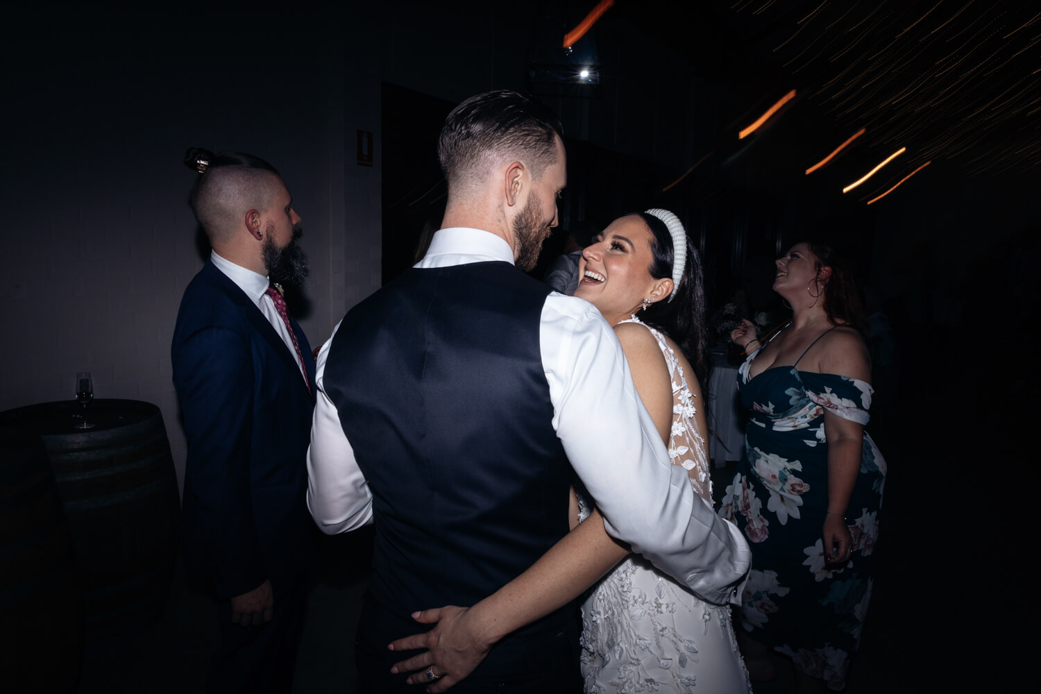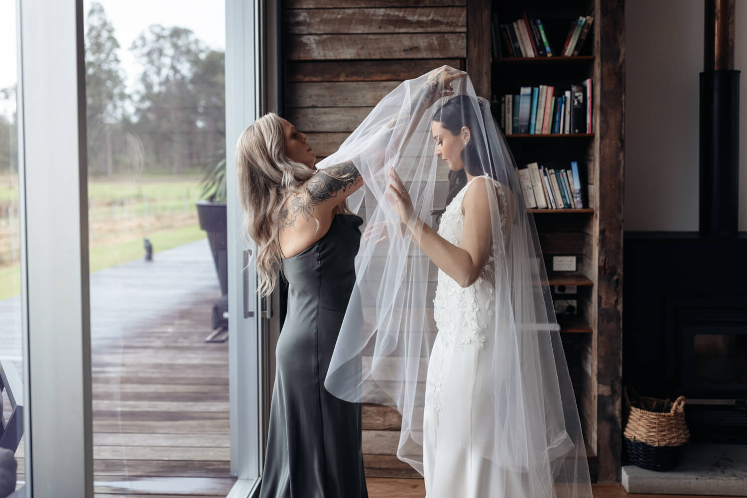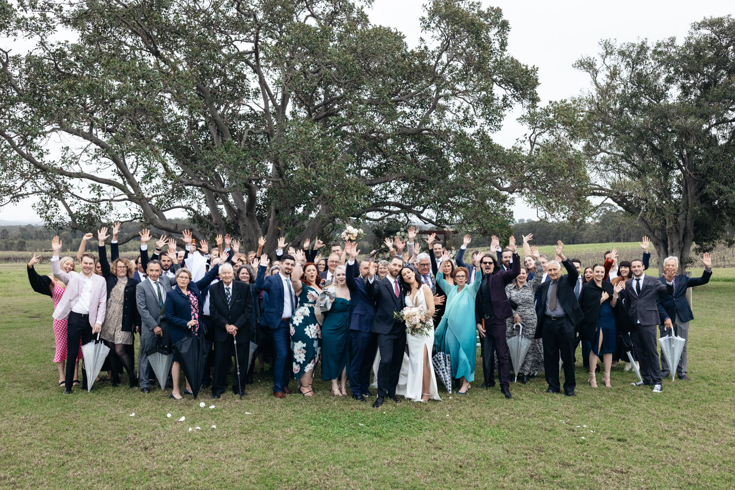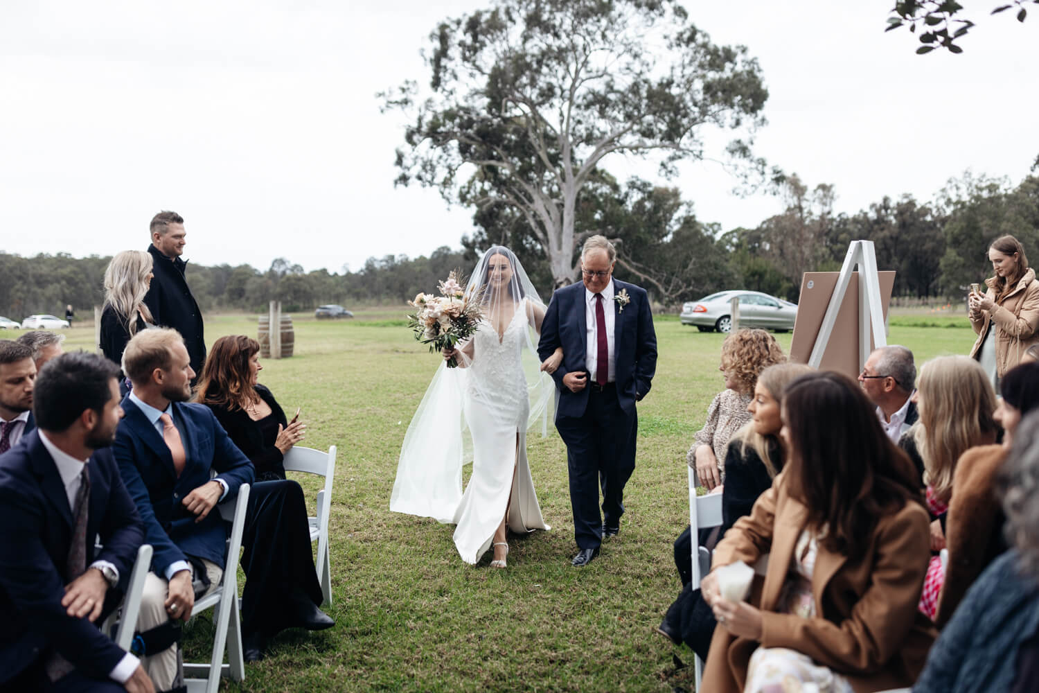 Venue: Bimbadgen Palmers Lane | Wedding stylist: Isn’t It Lovely | Celebrant: Wed by Kez | Make-up artist: Ivory State Hair and Make Up | Hair stylist: Project of Hair | Floral designer: WOW Flowers | Videographer: Lovereel | Cake designer: Cakes by Han | Live Music & DJ: Event Entertainers | Bride’s dress & hair piece: Moira Hughes Couture | Bride’s shoes: Rainbow Club | Ring designer: Fairfax and Roberts | Bridesmaid dresses: Bec and Bridge | Groom’s suit: Oscar Hunt | Photo booth: Undisposable | Caterer: Bimbadgen Palmers Lane