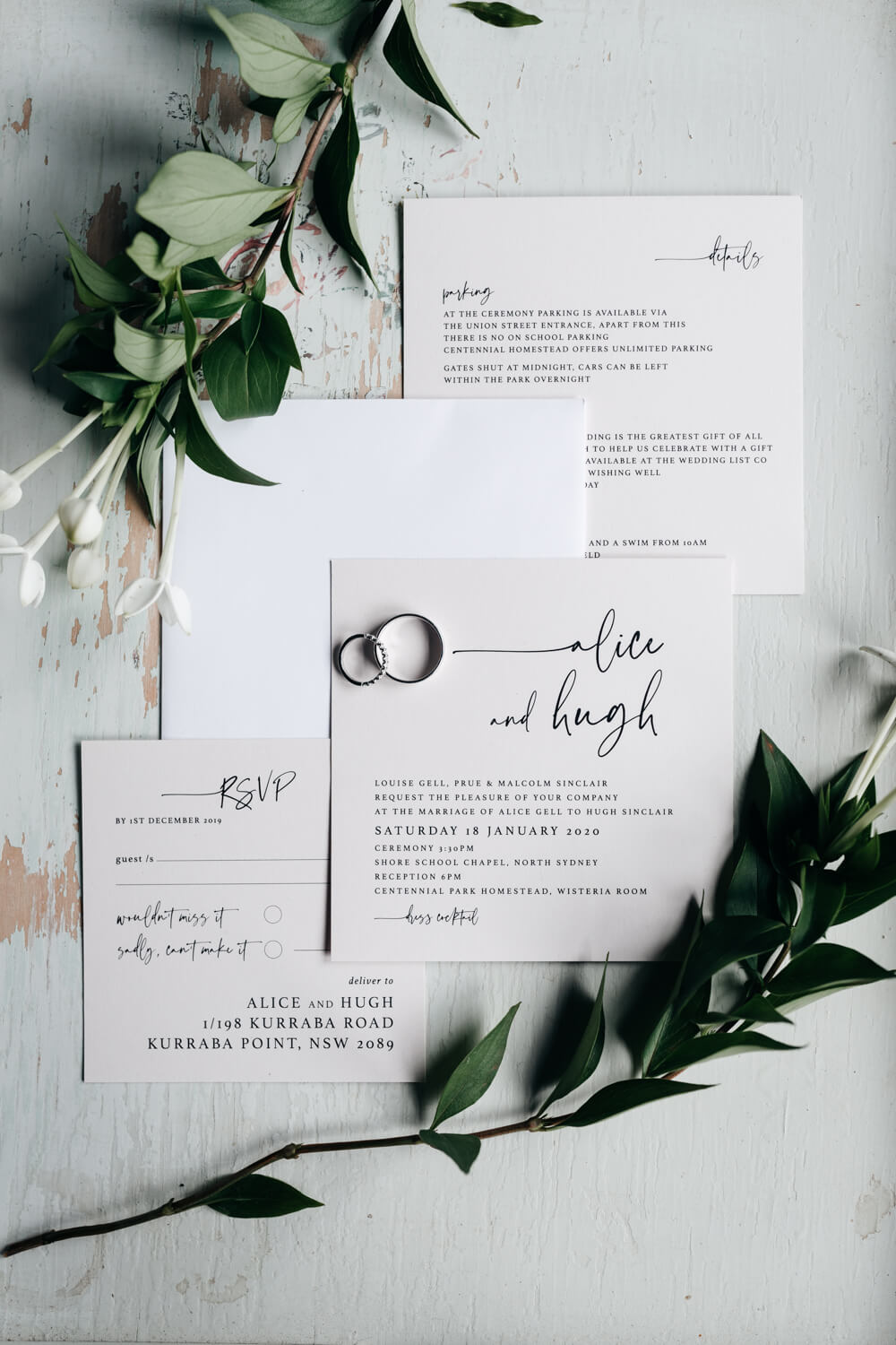 Alice explained that when it came to the proposal, Hugh popped the question on the rooftop of their old apartment in Neutral Bay. This was the perfect spot according to Alice as the rooftop not only has some amazing views of the harbour but they used to eat dinner on the rooftop almost every night. So it was a very special place for both of them. I’m told this all went down at 8am on a Sunday morning with handmade signs and champagne! It also happened to be Christmas time and the couple had already organised drinks for both families at their place that afternoon – the perfect time to break the news! Usually, in the months following an engagement most couples will begin searching for a venue. But not in this case. According to Alice this was a no brainer as she had always admired the venue at Centennial Park and toyed with the idea of getting married there. All it took was one tour and they got an overwhelming feeling that a Centennial Park Homestead wedding would be perfect for them!