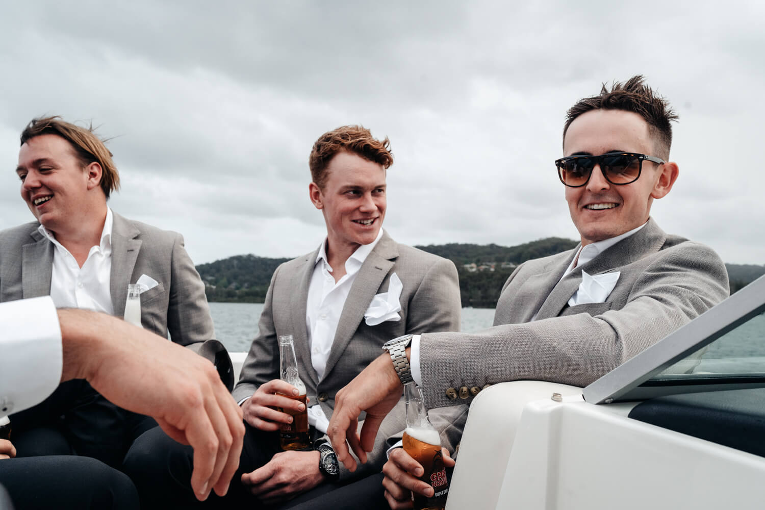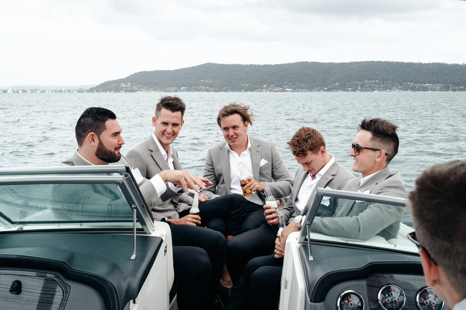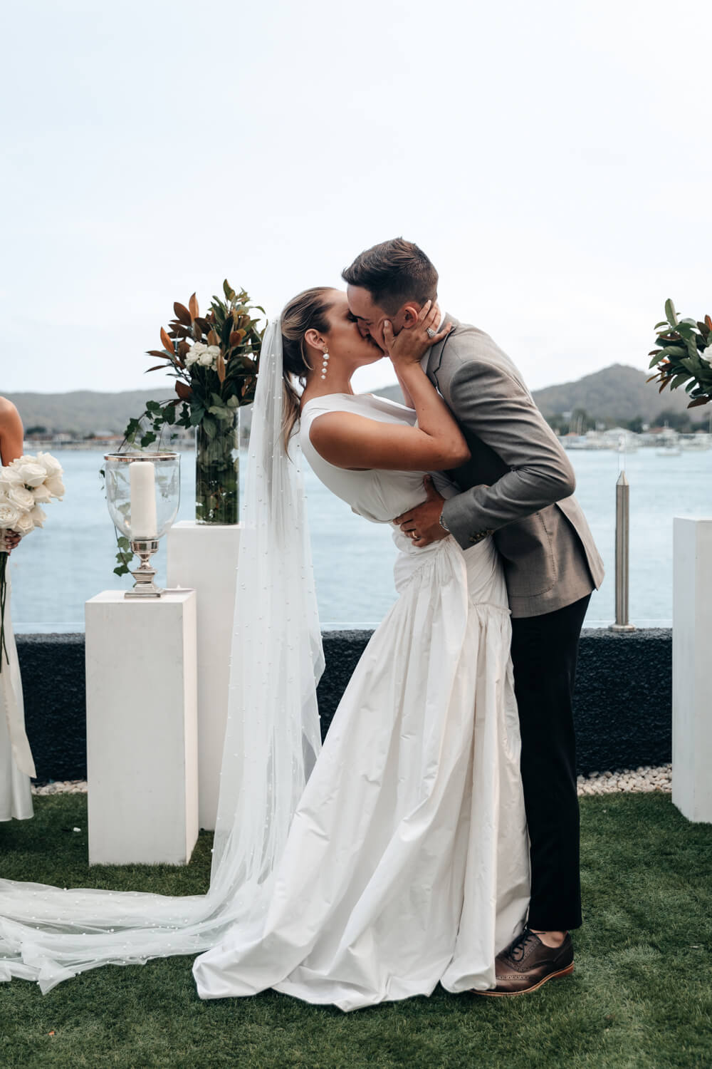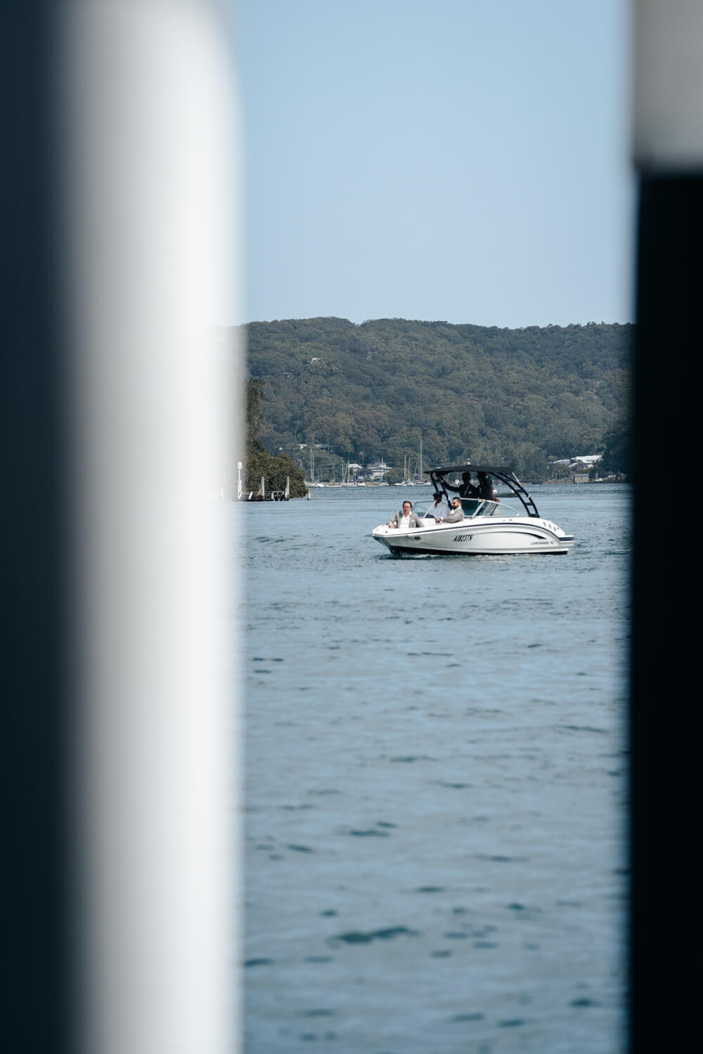 Celebrant: Maureen-Catherine Crawley | MC & DJ: Nick Read Entertainment | Caterer: H & H Catering | Rentals: Bentwood Events | Dress & Hair Piece: Koukla | Shoes: Tony Bianco | Suit: Peter Jackson | Rings: Christofer & Co | Boat Hire: Central Coast Ferries