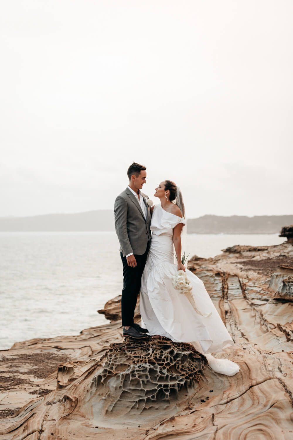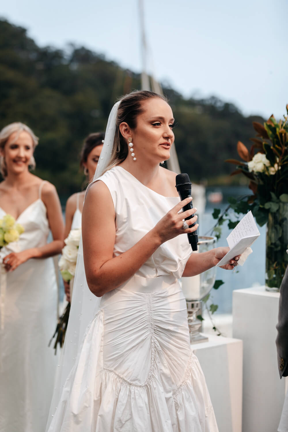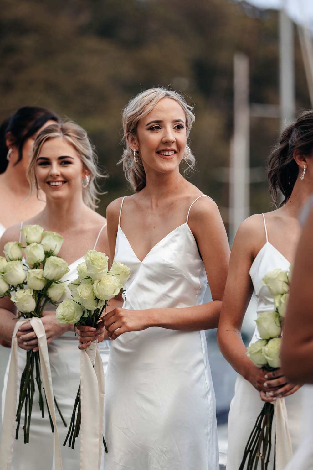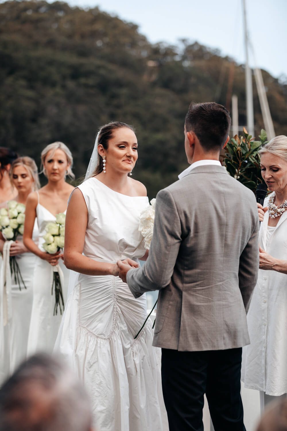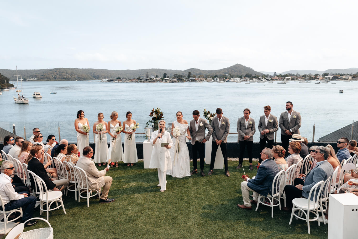 Celebrant: Maureen-Catherine Crawley | MC & DJ: Nick Read Entertainment | Caterer: H & H Catering | Rentals: Bentwood Events | Dress & Hair Piece: Koukla | Shoes: Tony Bianco | Suit: Peter Jackson | Rings: Christofer & Co | Boat Hire: Central Coast Ferries