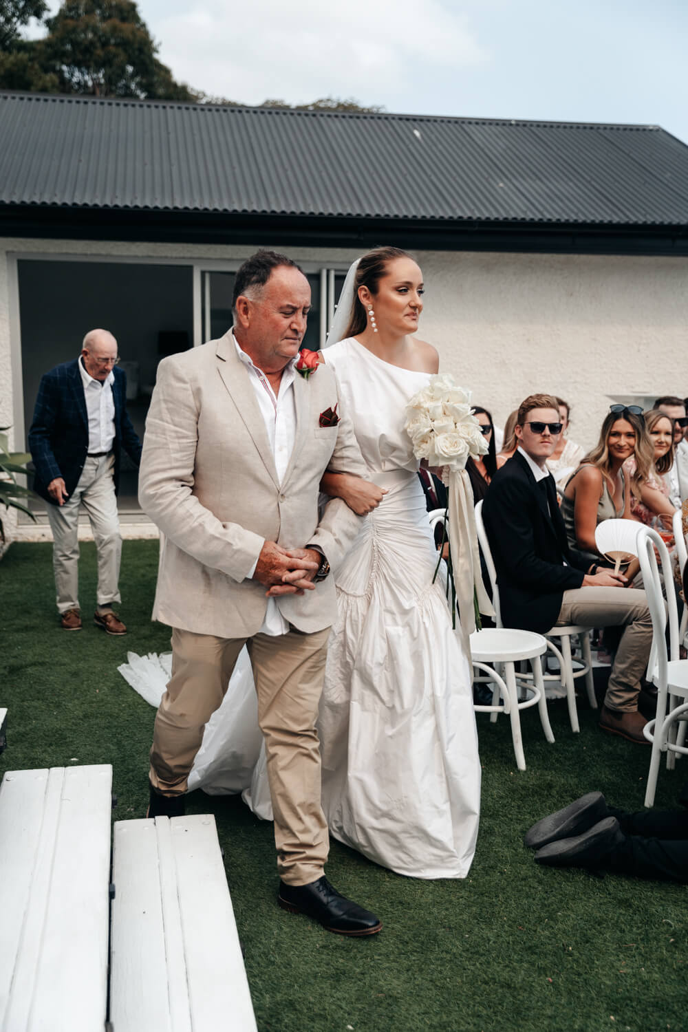 Savannah & Thomas are both fortunate to live in a boatshed on Brisbane water at the bottom of their family block. Despite what you may be thinking, this wasn’t just any old boatshed. It had recently been renovated for the occasion and had enough space to host both an outdoor ceremony and the reception. It was quite a unique backyard wedding and that’s what made this one of the best Central Coast weddings.