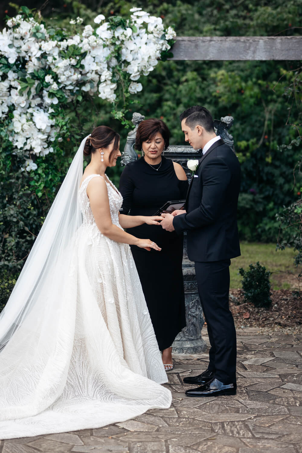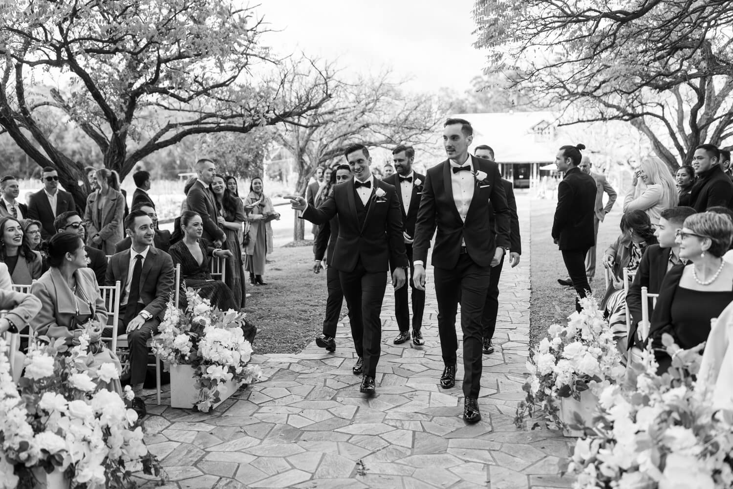 Venue, planner & caterer: Circa 1876 and The Convent | Celebrant: Lillian Lyon | Make-up artist: Tracey Truong | Floral designer: Anna Wang | Cake designer: Project Cake | Live Music & DJ: Kylie Jane Music | Bride’s dress: Couture by Francesca | Bride’s shoes: Jimmy Choo | Hair piece: Ronza George | Ring designer: Diamond Emporium | Bridesmaid dresses: Rodeo Drive Boutique | Groom & groomsmen suit & accessories: Ferrari Formal Wear | Invitation designer: Anna Wang