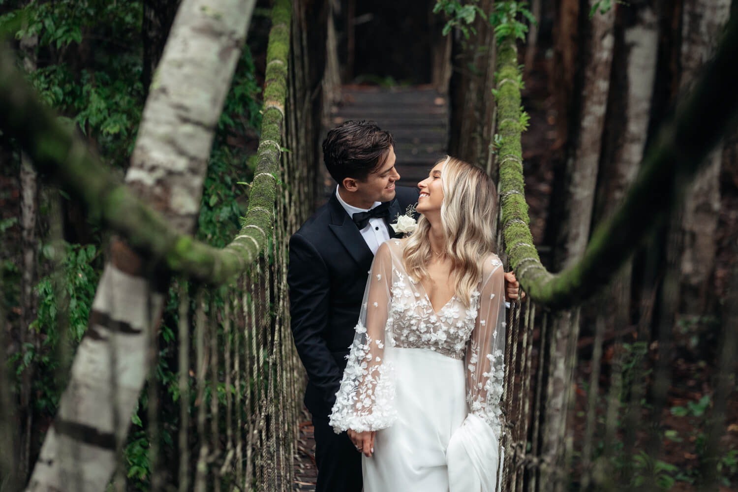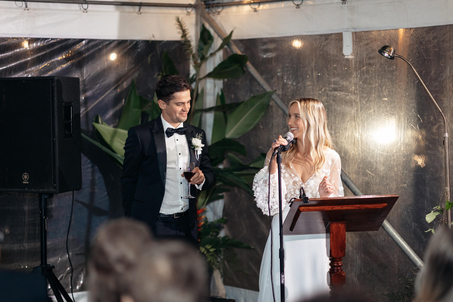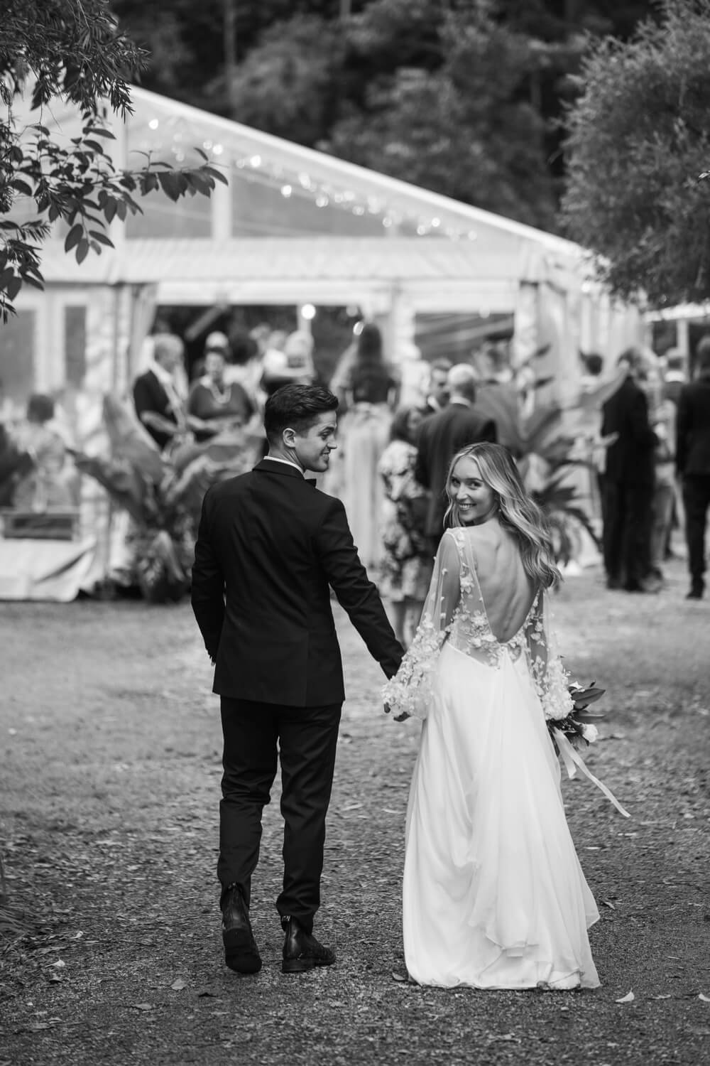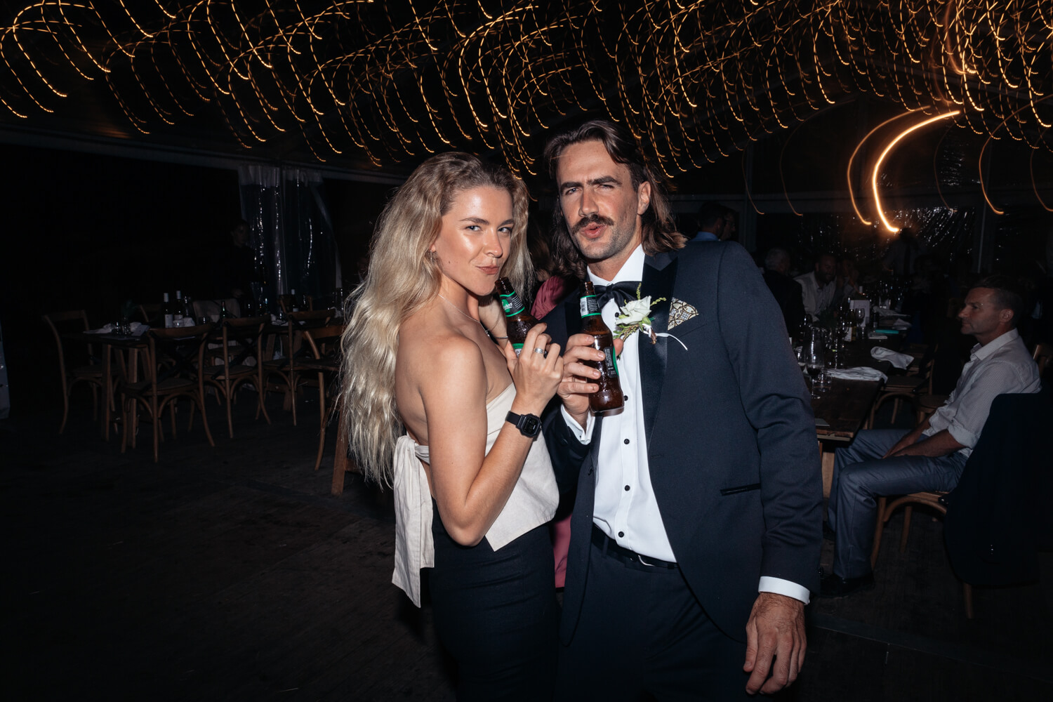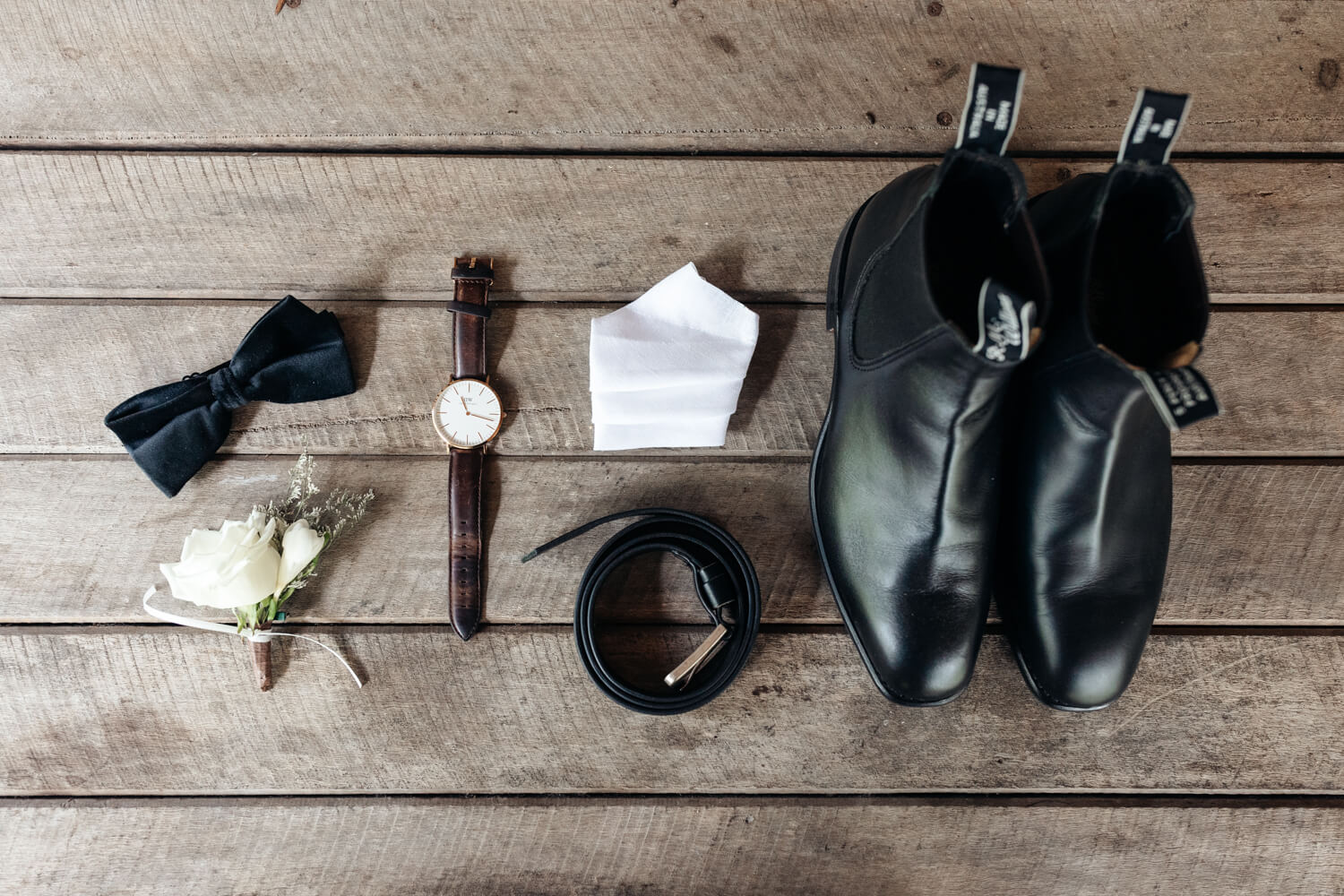 Make-up artist: Make Up By Stevi | Hair stylist: By Jess Monck | Floral designer: The Flower Shop Dungeon | Videographer: Morelife Films | DJ: Rave Tapes | Live music: Tatts And Tea Music | Bride’s dress: Rimearodaky | Bride’s shoes: Nine West | Brides ring designer: James Allen Rings & Matthews Jewellers | Groom’s suit: Uberstone | Groom’s accessories: RM Williams | Caterer: Feast Catering
