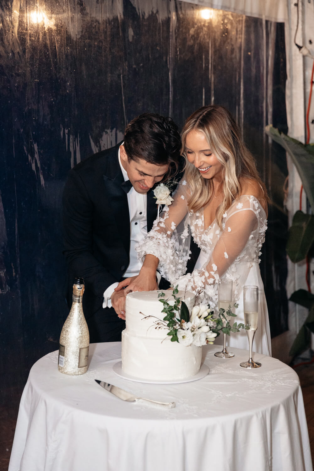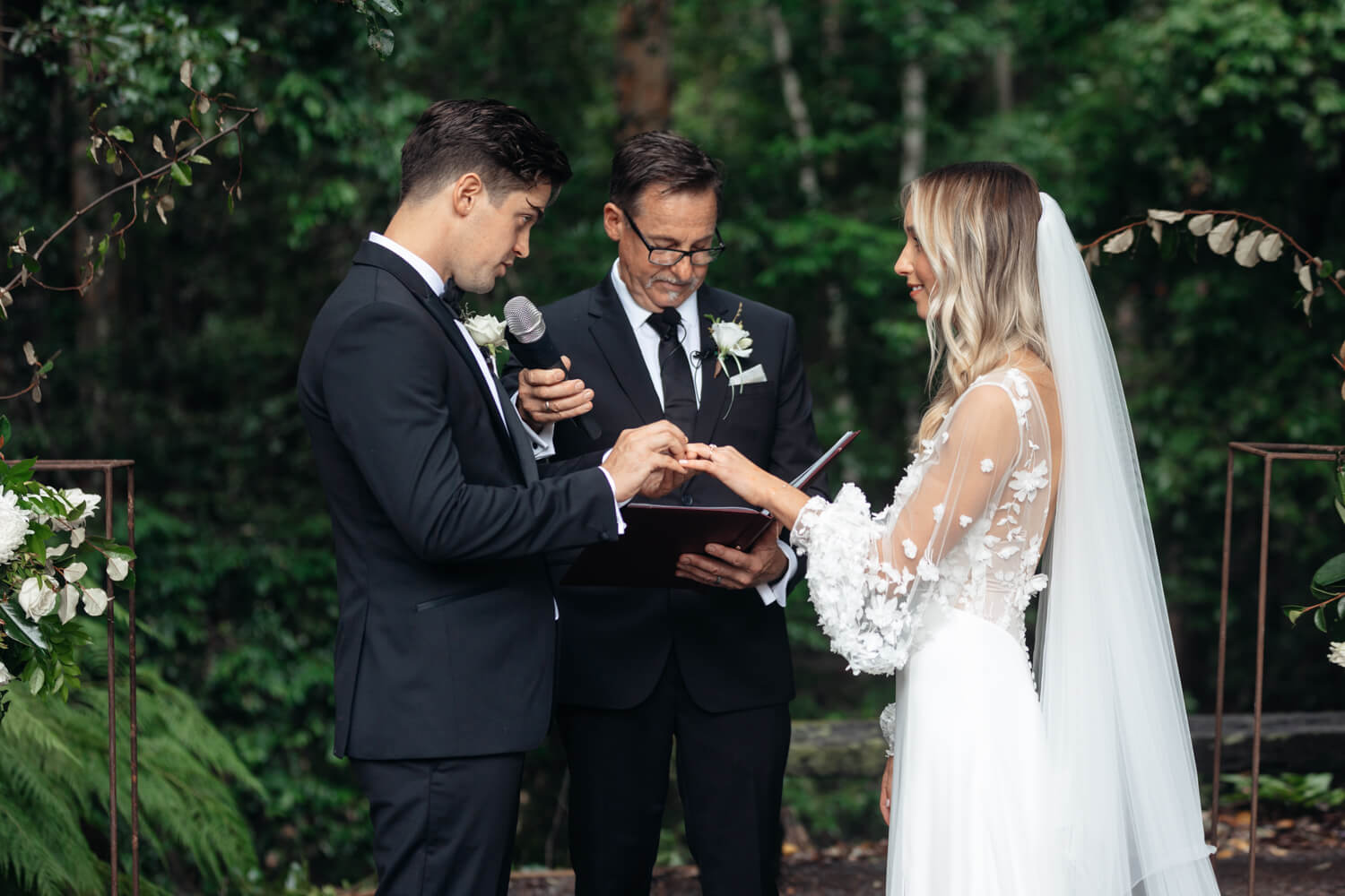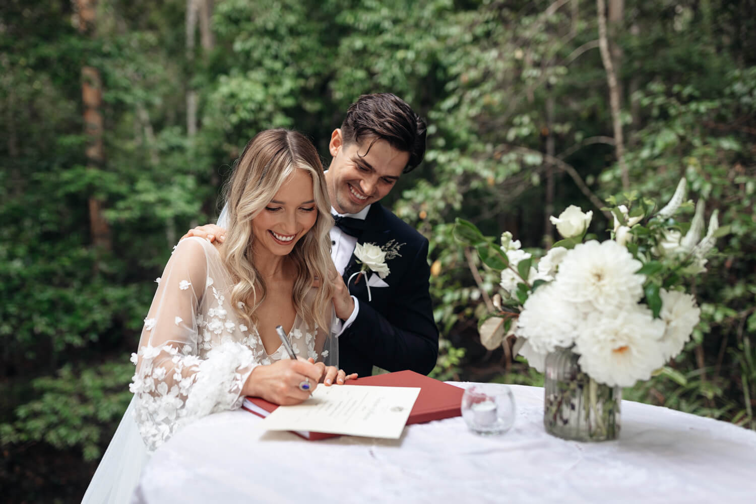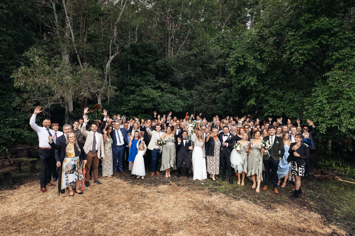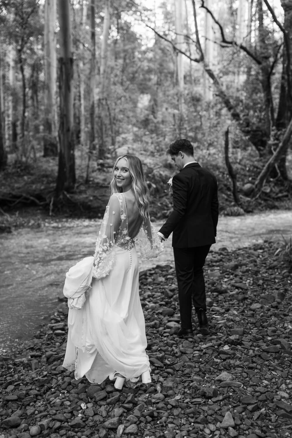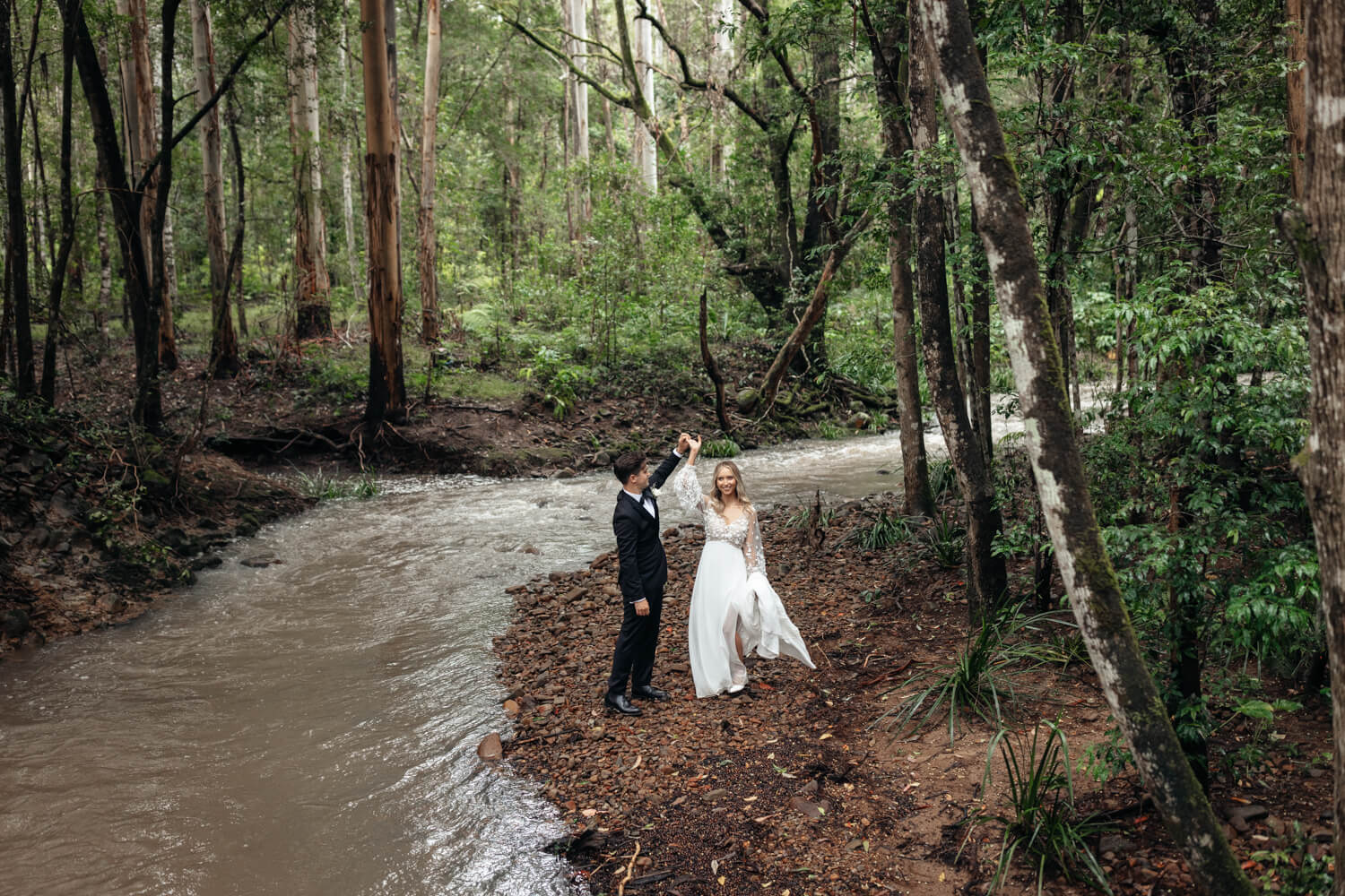 Make-up artist: Make Up By Stevi | Hair stylist: By Jess Monck | Floral designer: The Flower Shop Dungeon | Videographer: Morelife Films | DJ: Rave Tapes | Live music: Tatts And Tea Music | Bride’s dress: Rimearodaky | Bride’s shoes: Nine West | Brides ring designer: James Allen Rings & Matthews Jewellers | Groom’s suit: Uberstone | Groom’s accessories: RM Williams | Caterer: Feast Catering