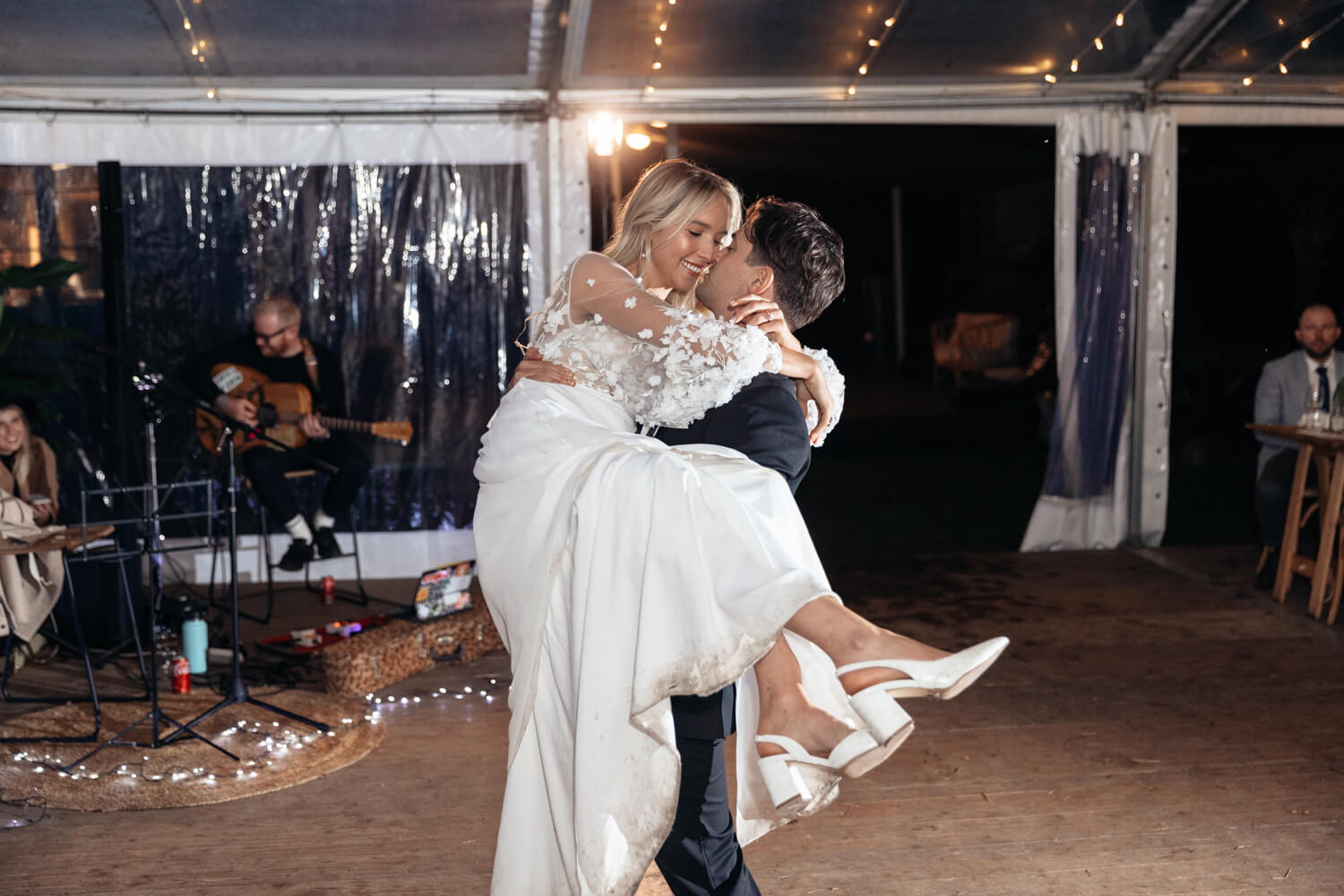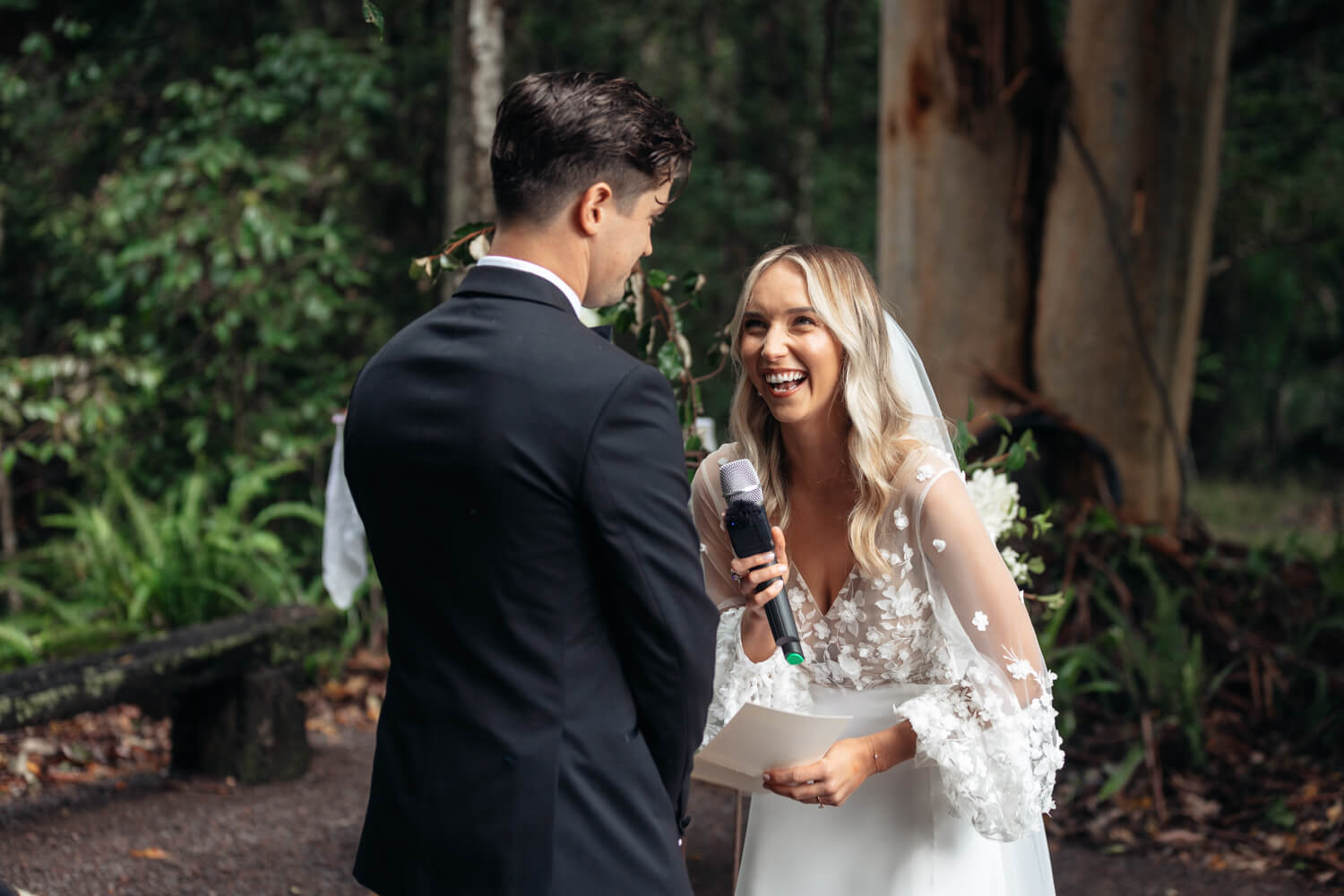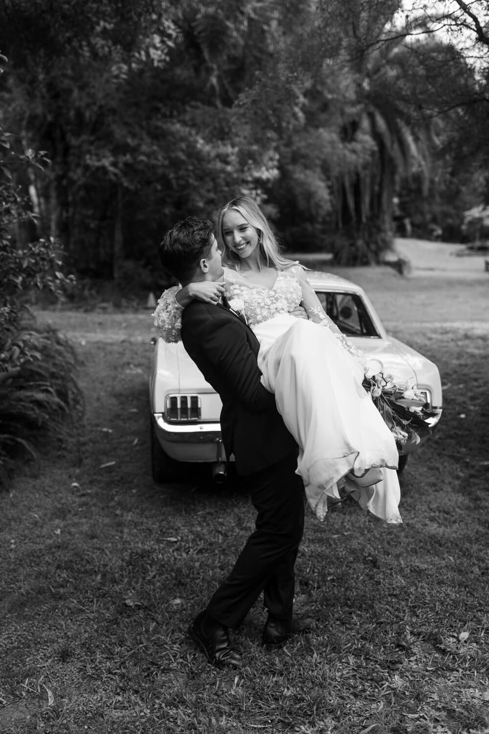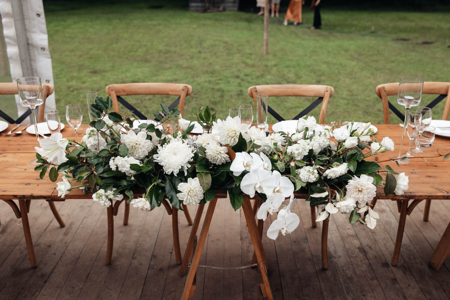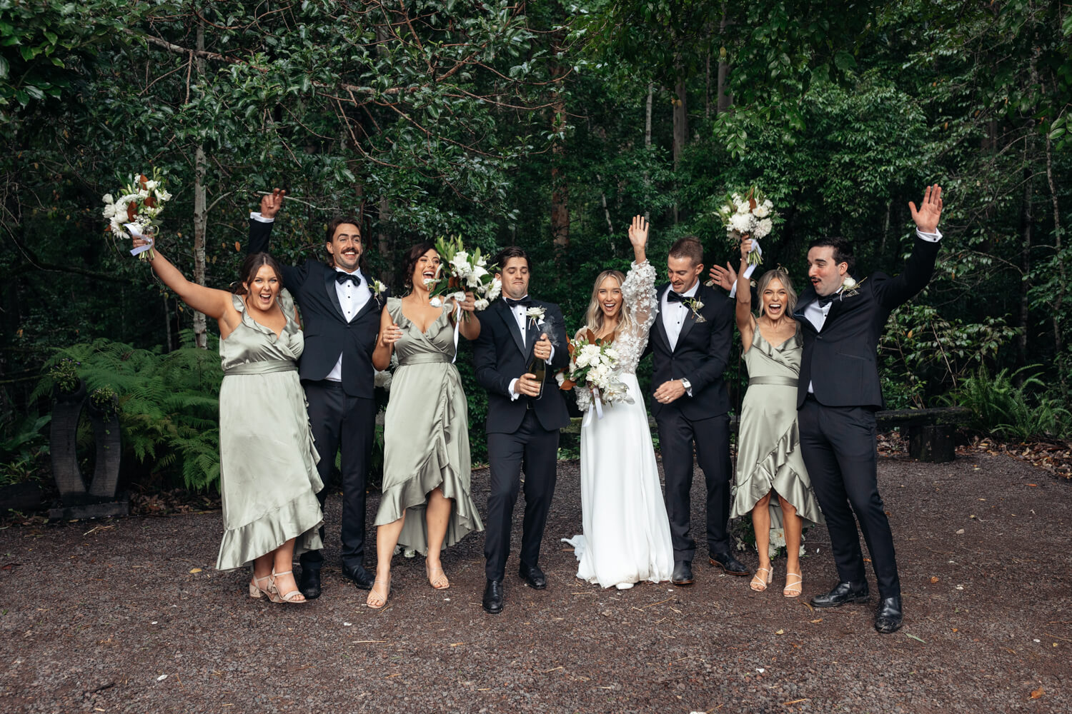 Make-up artist: Make Up By Stevi | Hair stylist: By Jess Monck | Floral designer: The Flower Shop Dungeon | Videographer: Morelife Films | DJ: Rave Tapes | Live music: Tatts And Tea Music | Bride’s dress: Rimearodaky | Bride’s shoes: Nine West | Brides ring designer: James Allen Rings & Matthews Jewellers | Groom’s suit: Uberstone | Groom’s accessories: RM Williams | Caterer: Feast Catering
