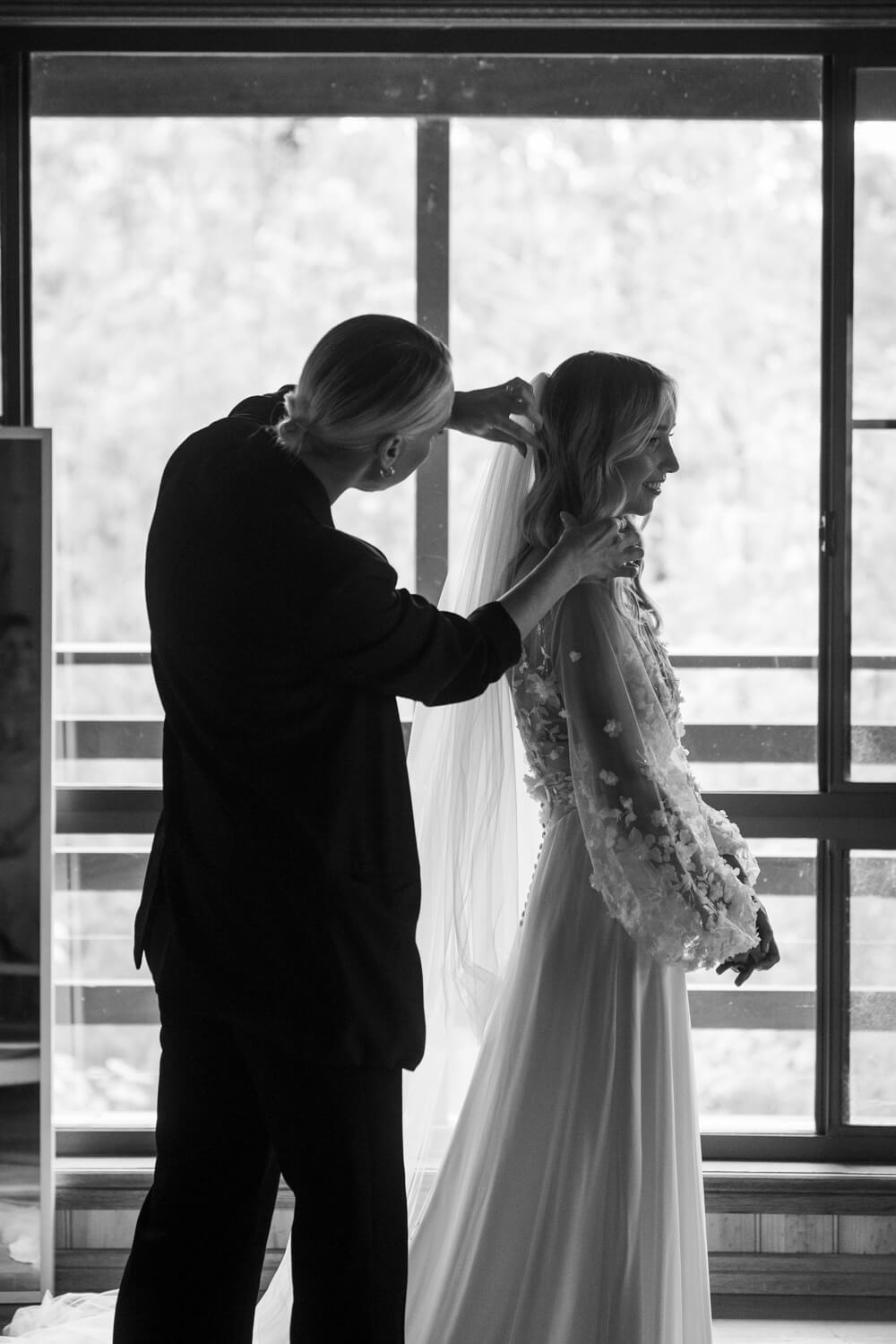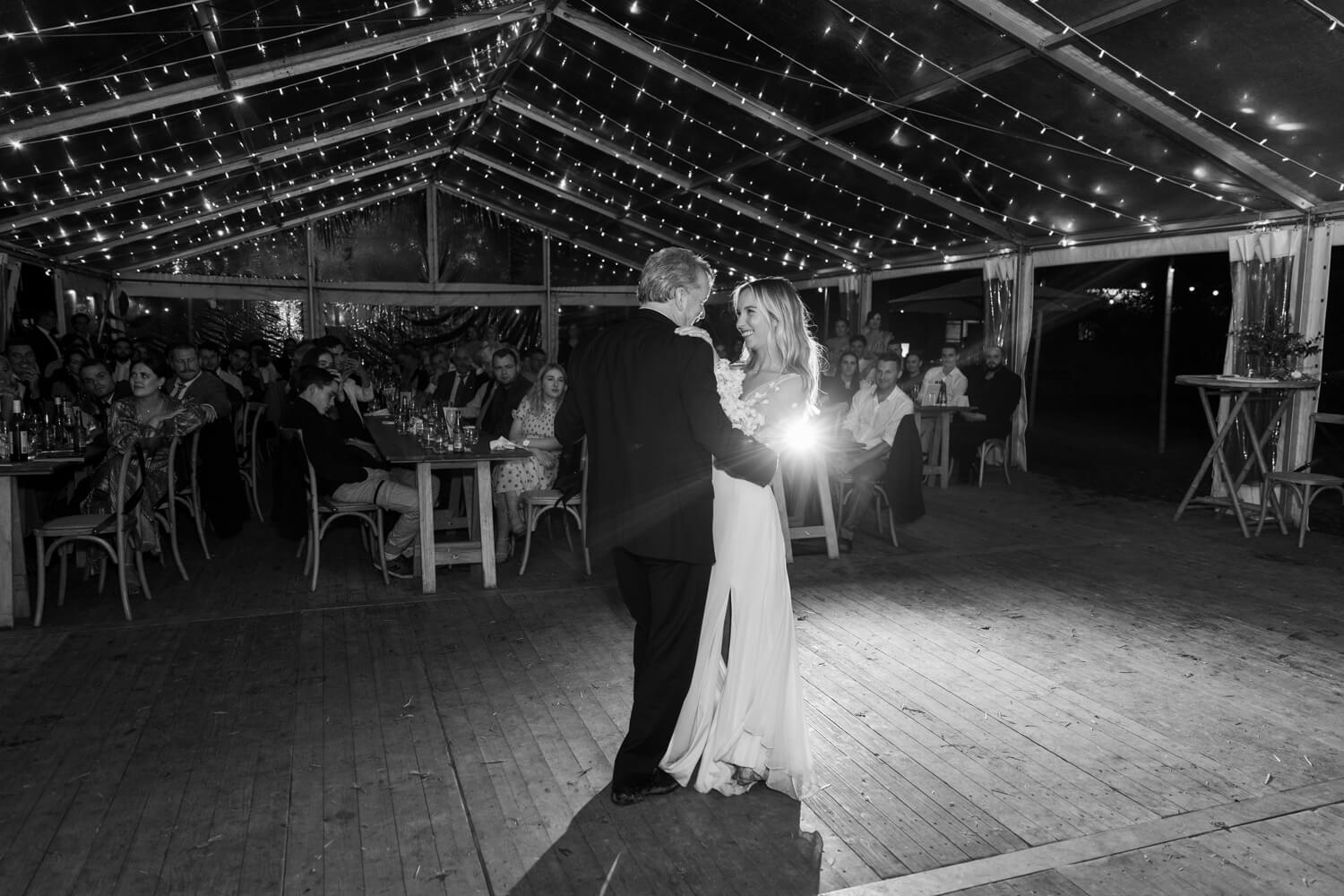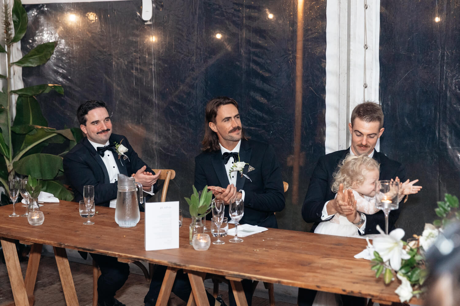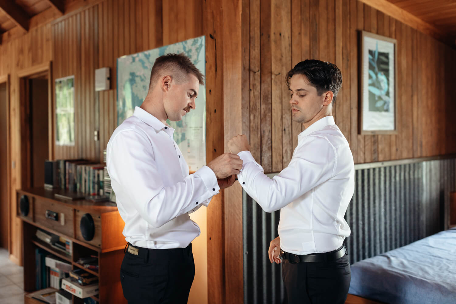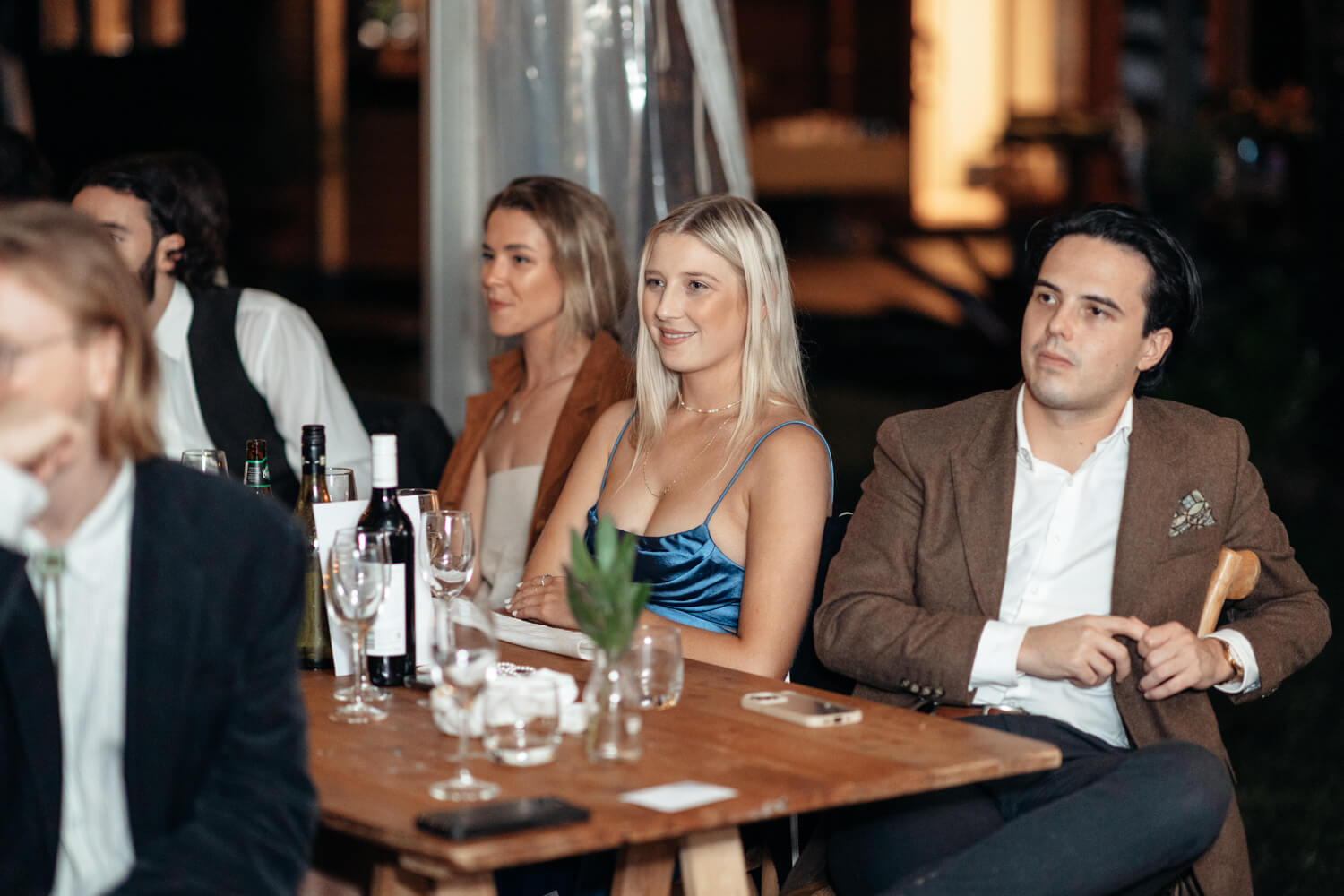 Make-up artist: Make Up By Stevi | Hair stylist: By Jess Monck | Floral designer: The Flower Shop Dungeon | Videographer: Morelife Films | DJ: Rave Tapes | Live music: Tatts And Tea Music | Bride’s dress: Rimearodaky | Bride’s shoes: Nine West | Brides ring designer: James Allen Rings & Matthews Jewellers | Groom’s suit: Uberstone | Groom’s accessories: RM Williams | Caterer: Feast Catering