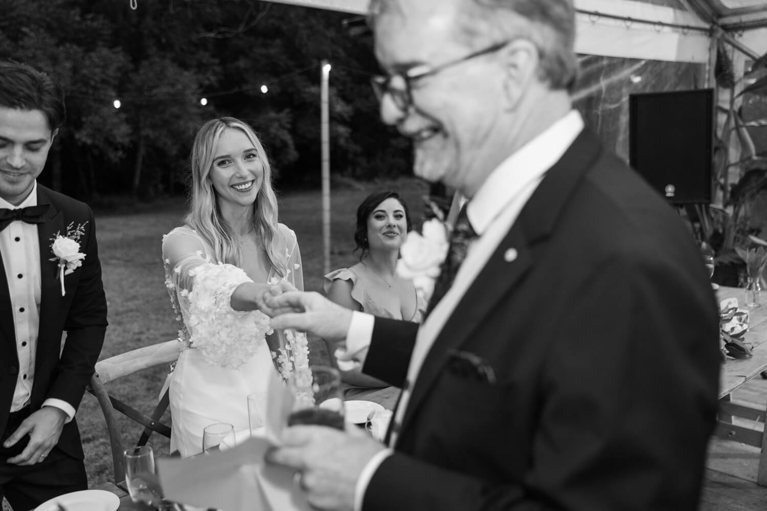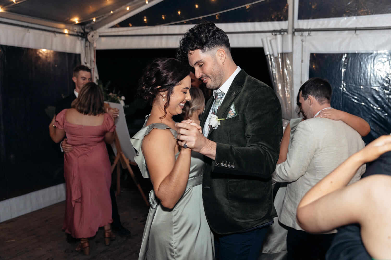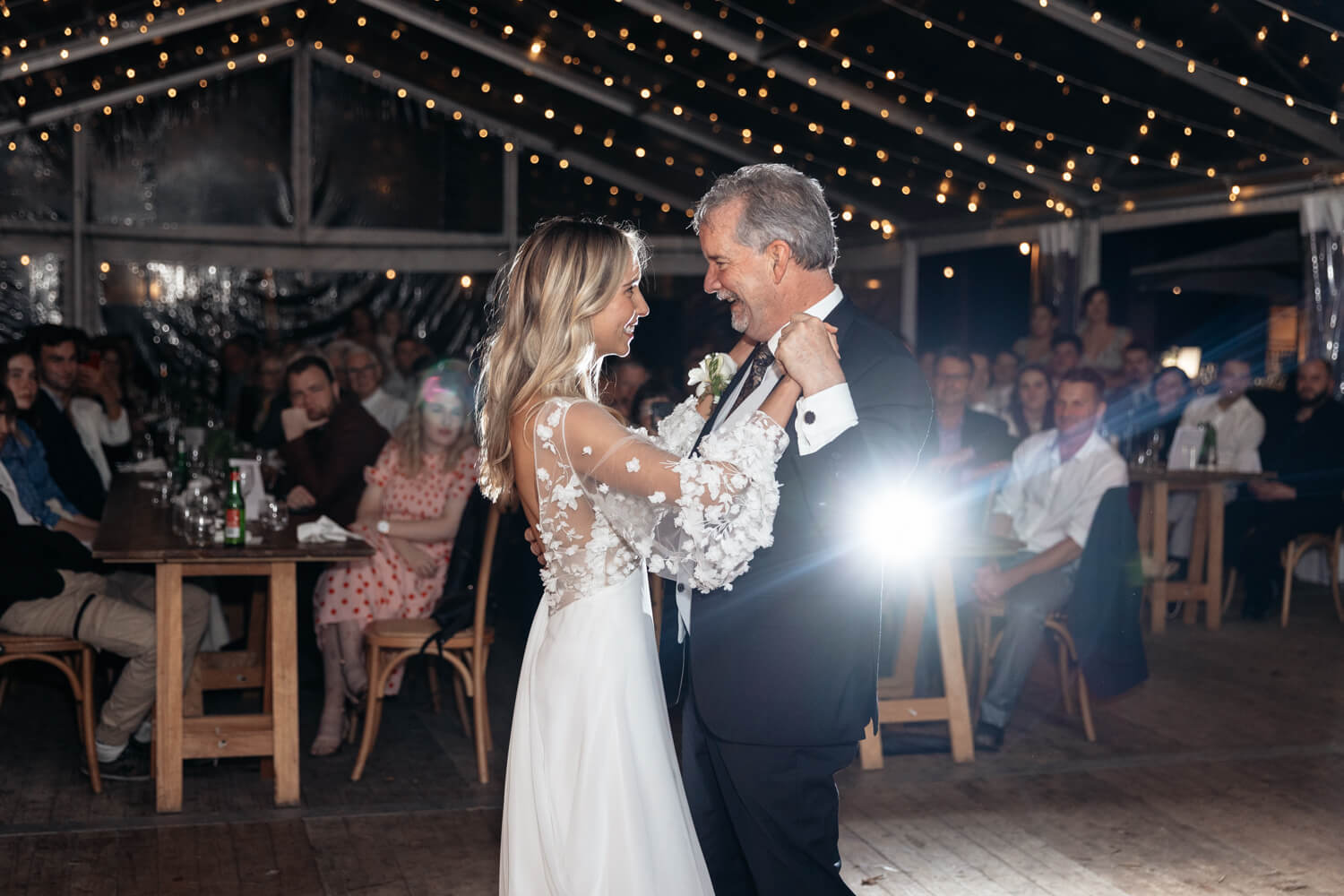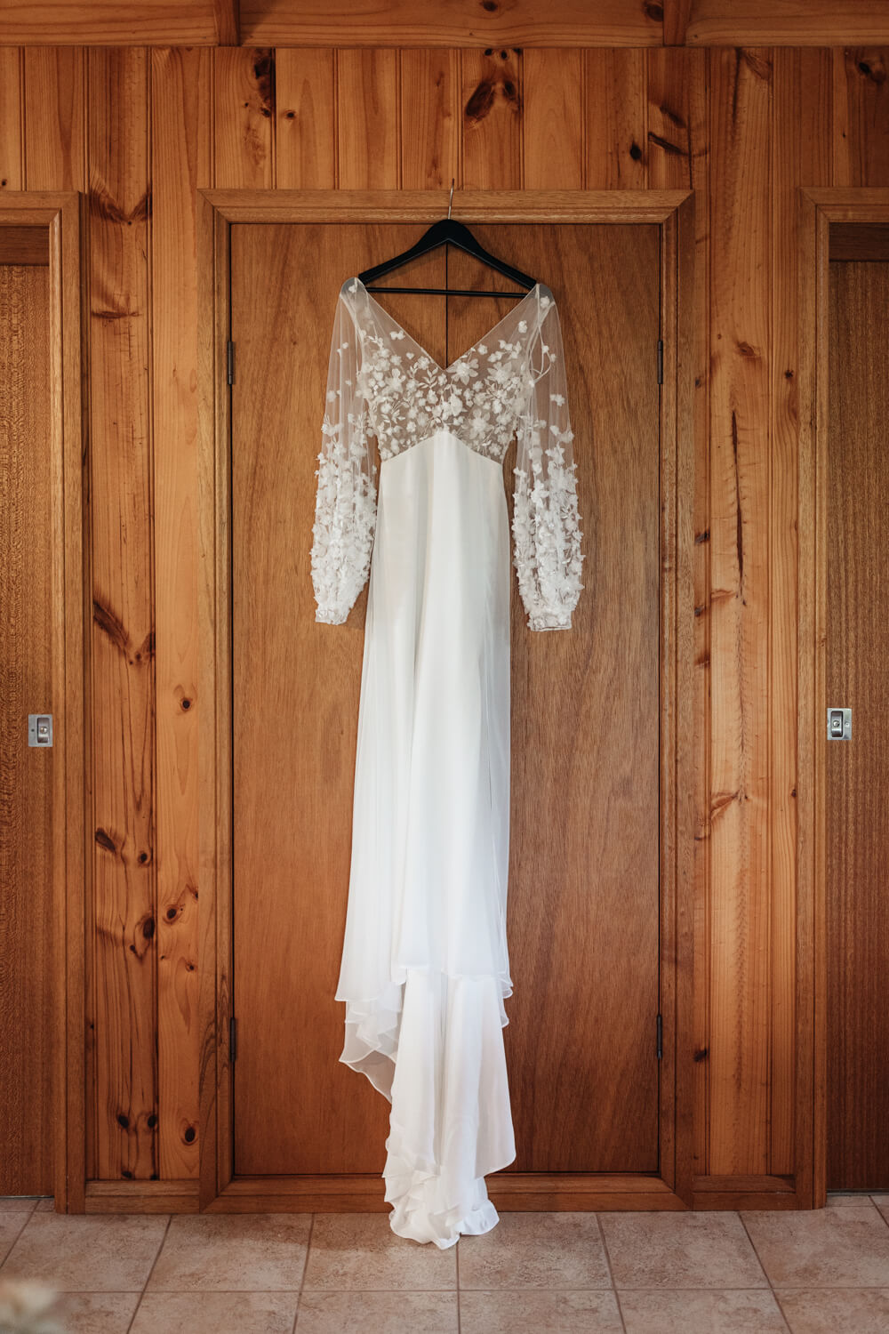 How did the proposal take place that lead to your country wedding in Dungog?: Ryley proposed in 2019 at our home in Sydney. I came home one night after work to find our favourite song playing on the record player (Beyond, Leon Bridges), photographs of us during our favourite moments hanging from the ceiling with beautiful words written on them, and a trail of candles & rose petals leading to Ryley. Ryley had organised for our Family in Newcastle to be together & we FaceTimed them all shortly after. Ryley then took us to a beautiful dinner on the Harbour & I was just elated. It was the most perfect proposal for us – the best night of my life for sure.
