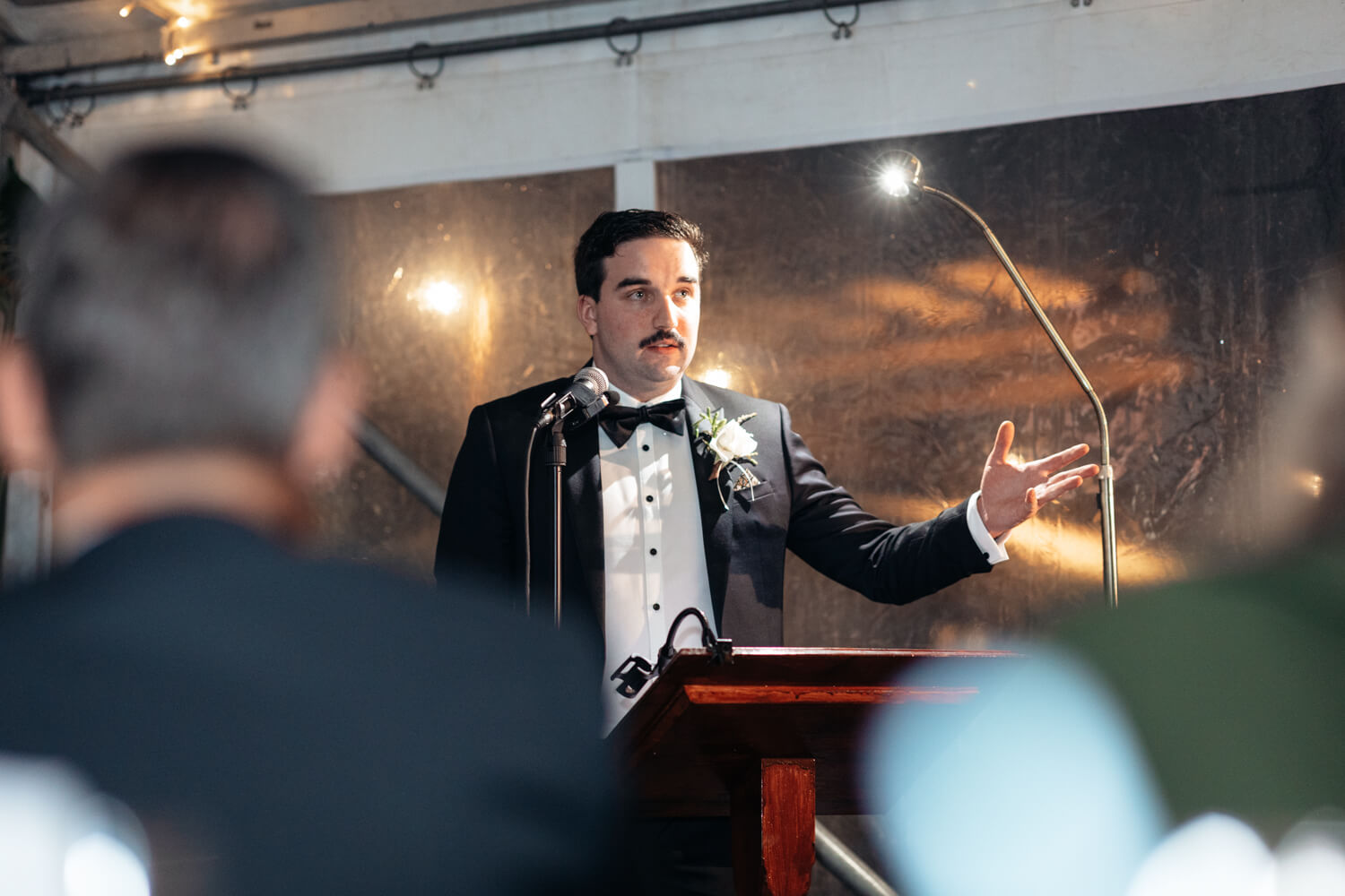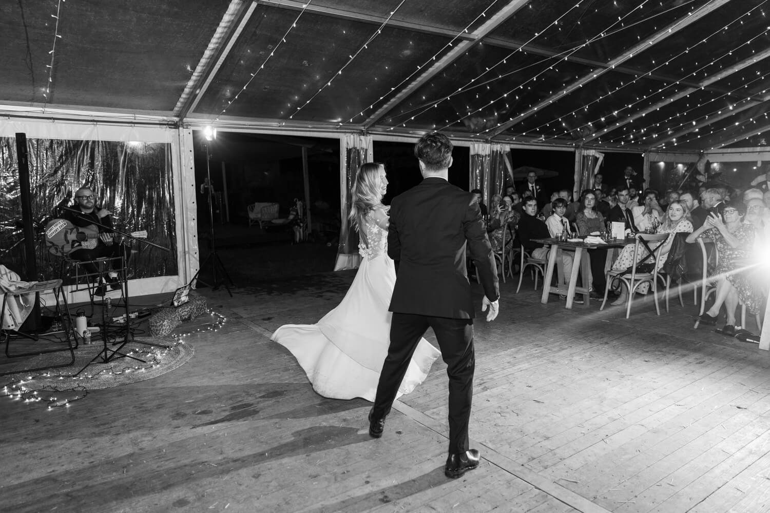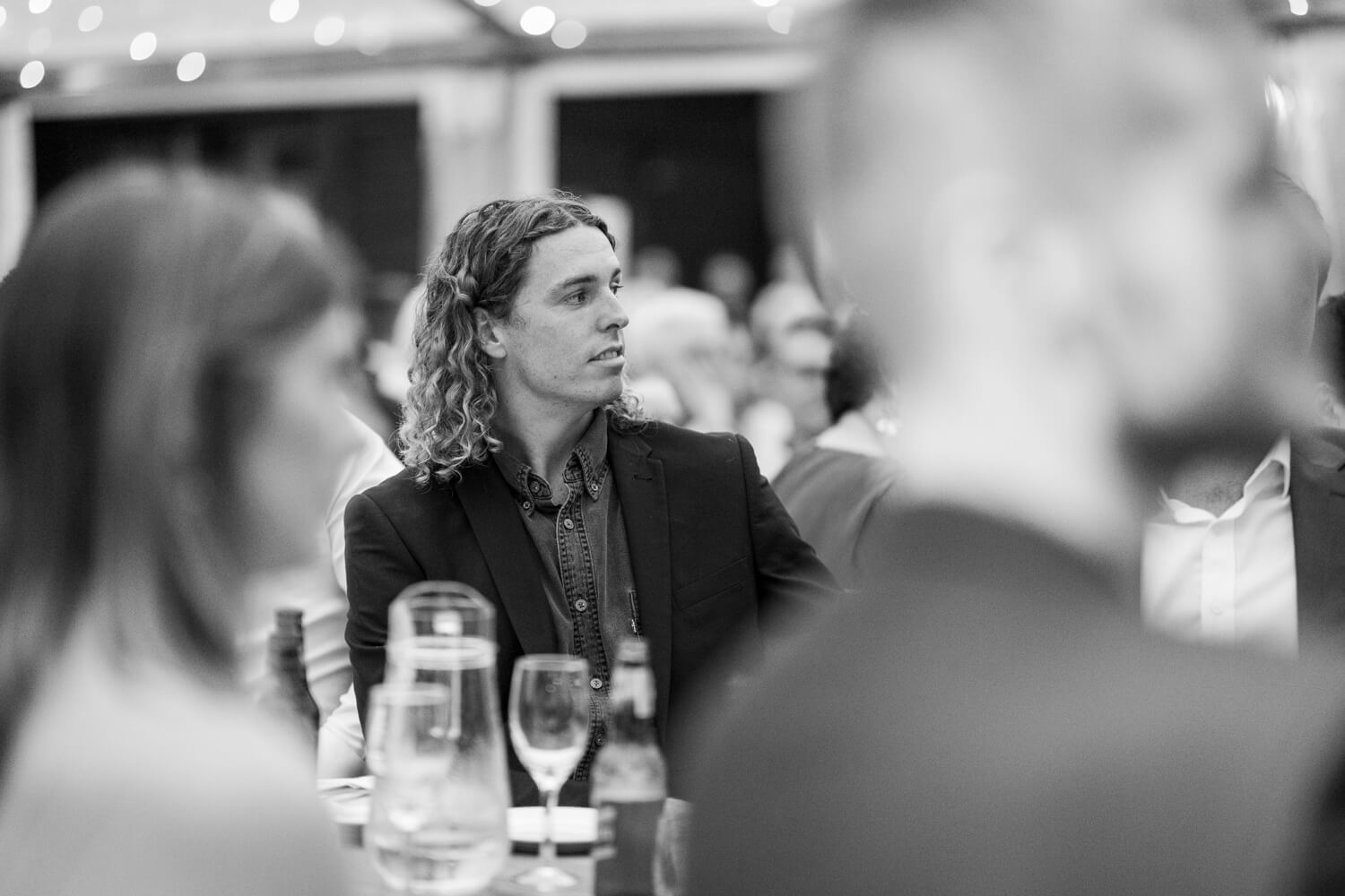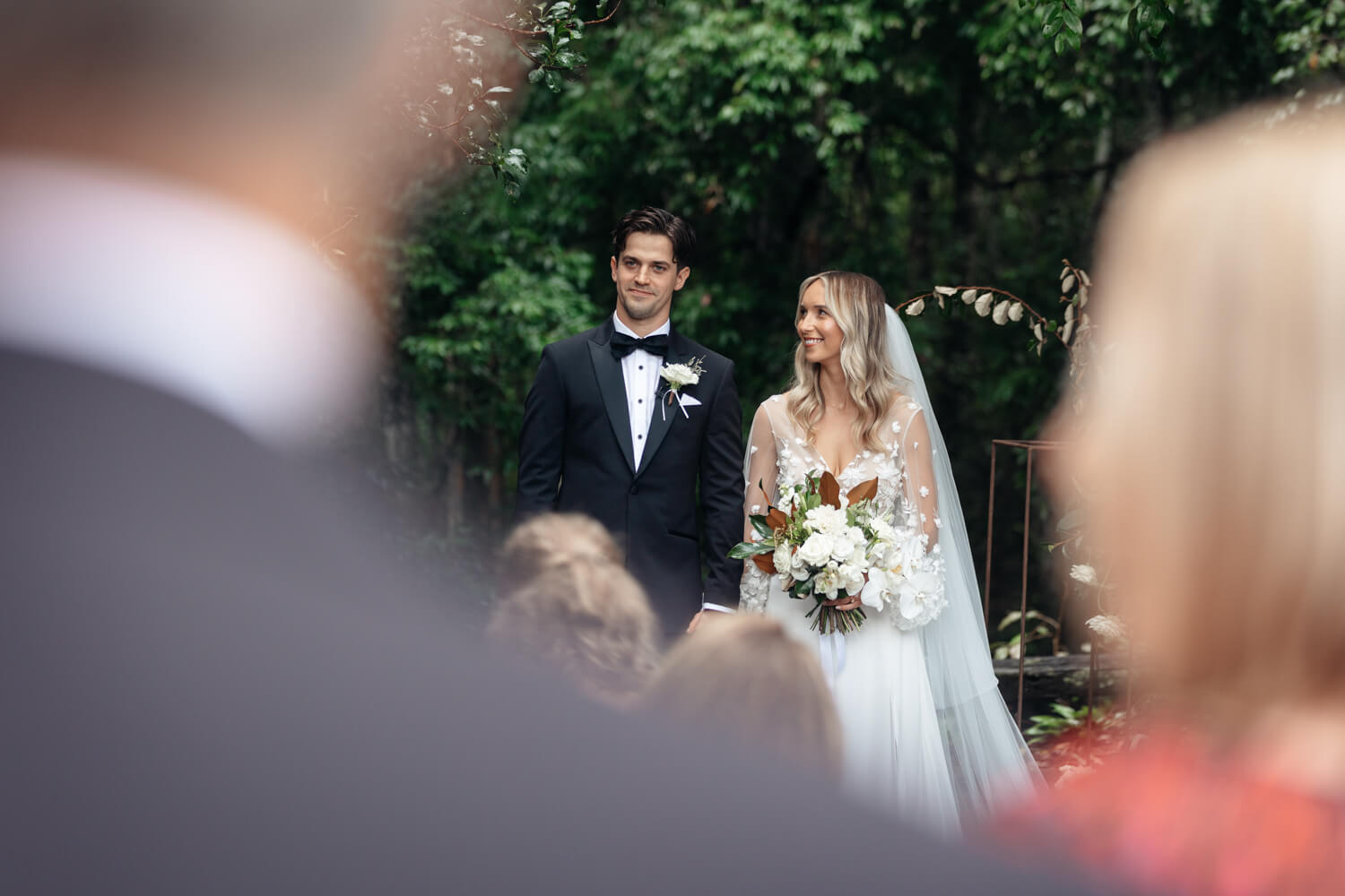 How did the proposal take place that lead to your country wedding in Dungog?: Ryley proposed in 2019 at our home in Sydney. I came home one night after work to find our favourite song playing on the record player (Beyond, Leon Bridges), photographs of us during our favourite moments hanging from the ceiling with beautiful words written on them, and a trail of candles & rose petals leading to Ryley. Ryley had organised for our Family in Newcastle to be together & we FaceTimed them all shortly after. Ryley then took us to a beautiful dinner on the Harbour & I was just elated. It was the most perfect proposal for us – the best night of my life for sure.