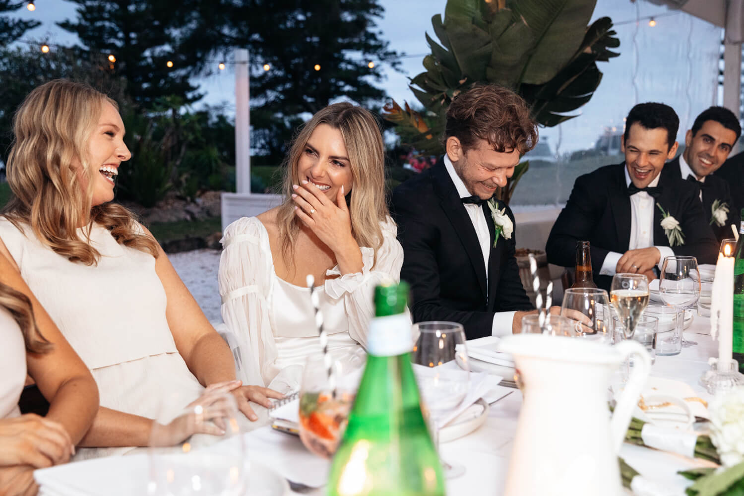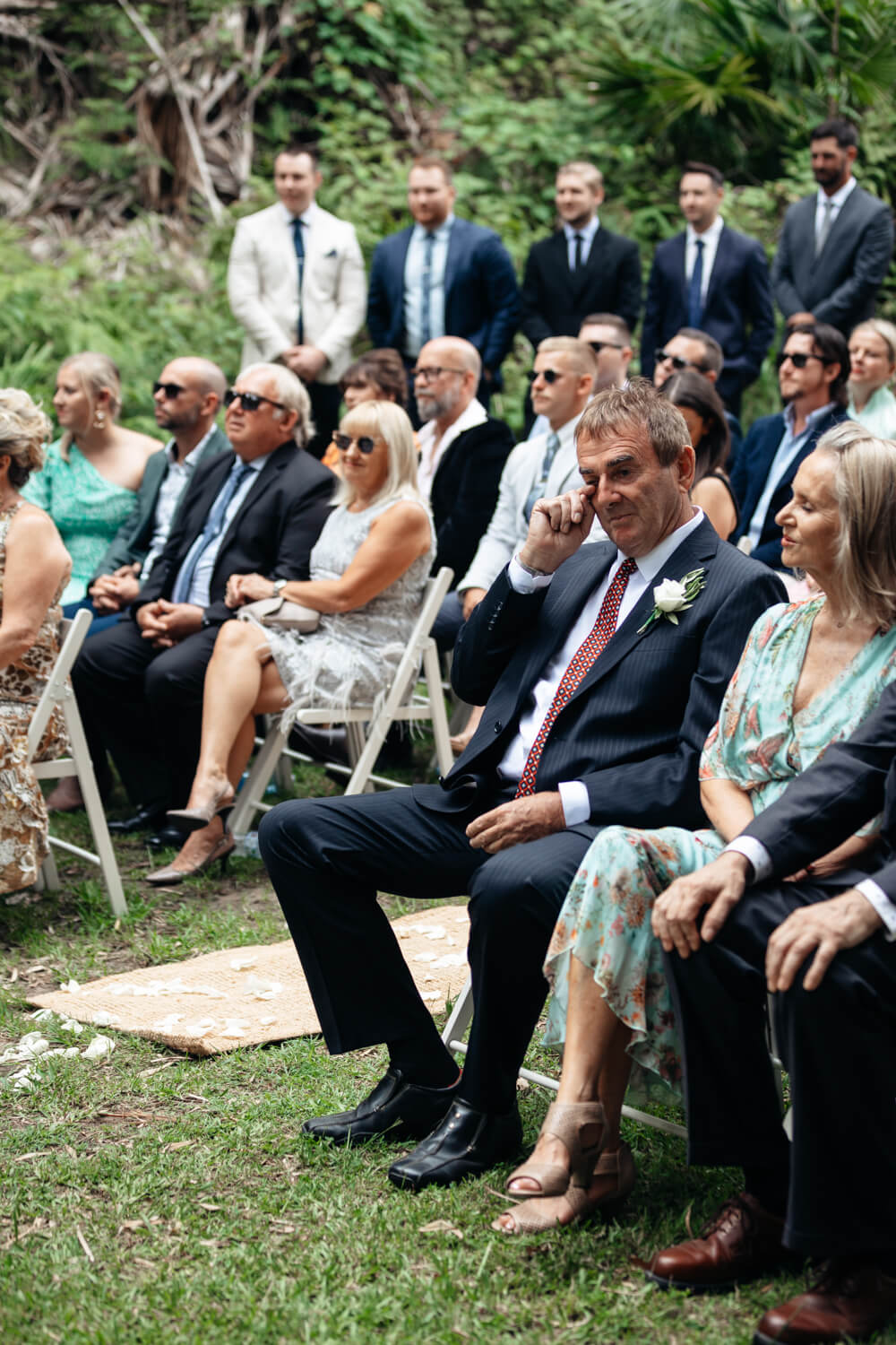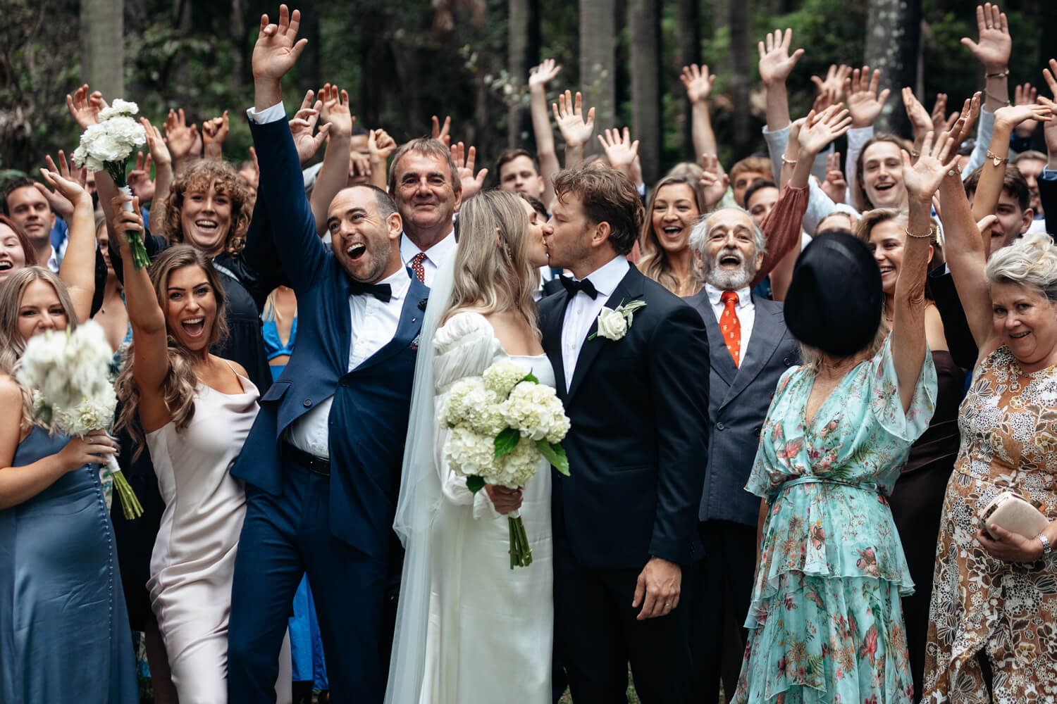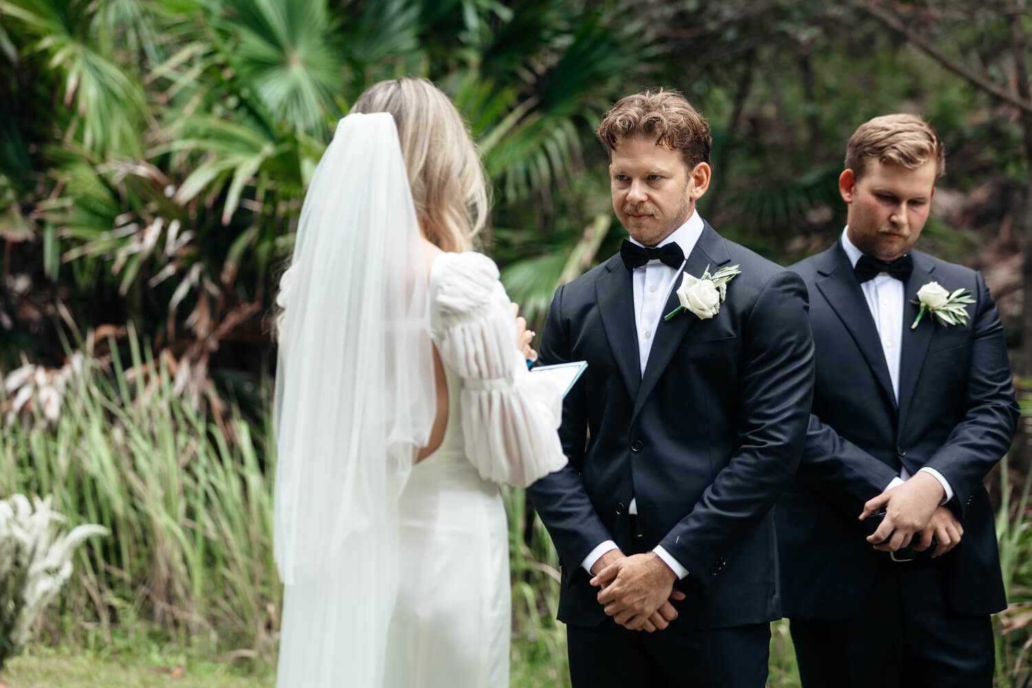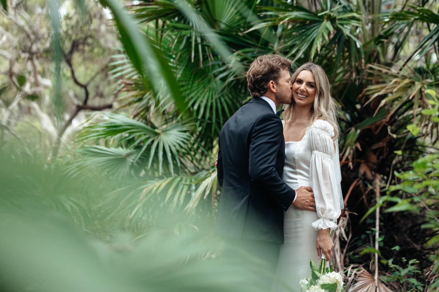 Venue: Dunes Palm Beach | Wedding planner: Girl Friday | Celebrant: Georgia Fletcher Celebrant | Make-up artist: Aleisha Johnson Makeup | Videographer: Story of Us | Cake designer: Roseberry Cake Creations | Live music: The White Tree | Bride’s dress: Helen English | Bride’s shoes: The White Collection | Hair piece: Amelie George | Ring designer: Jacque Fine Jewellery | Groom & groomsmens suit: Institchu