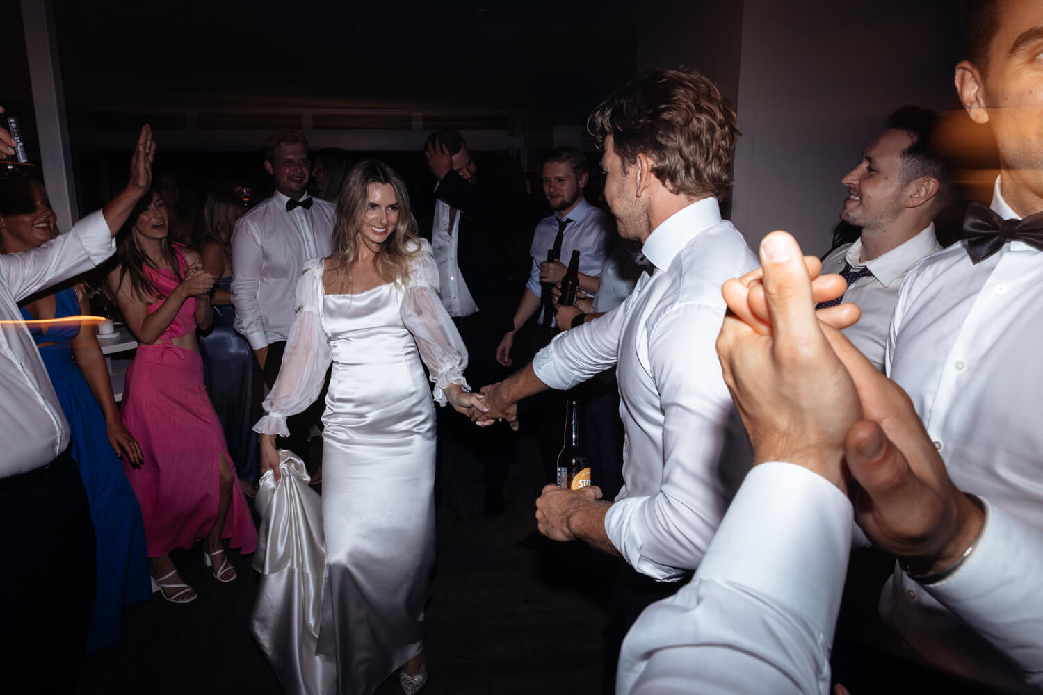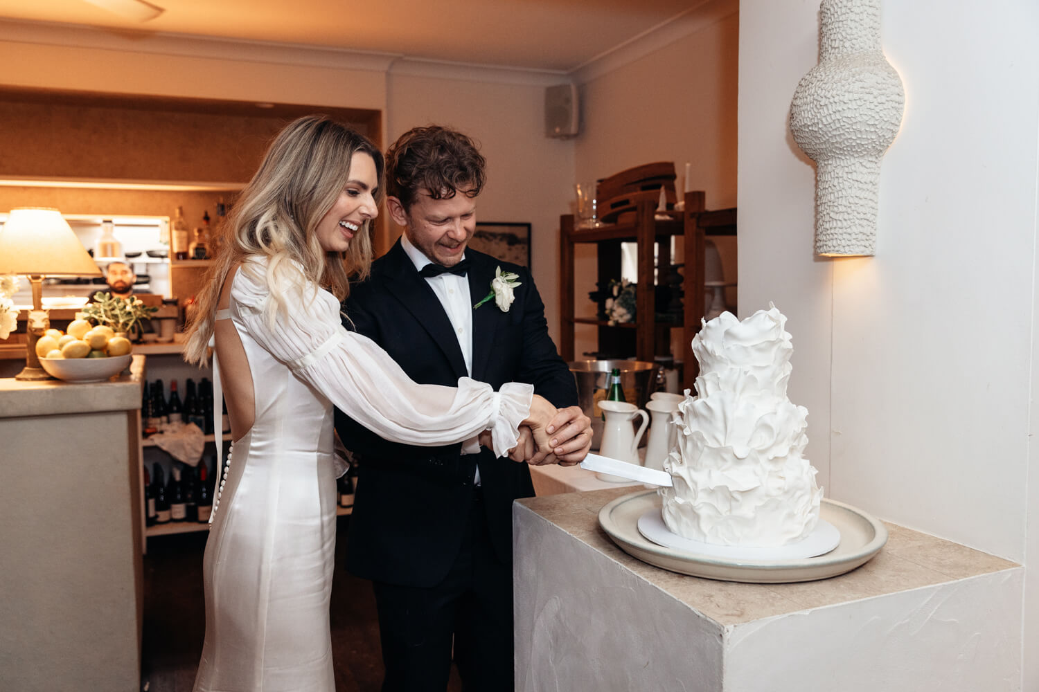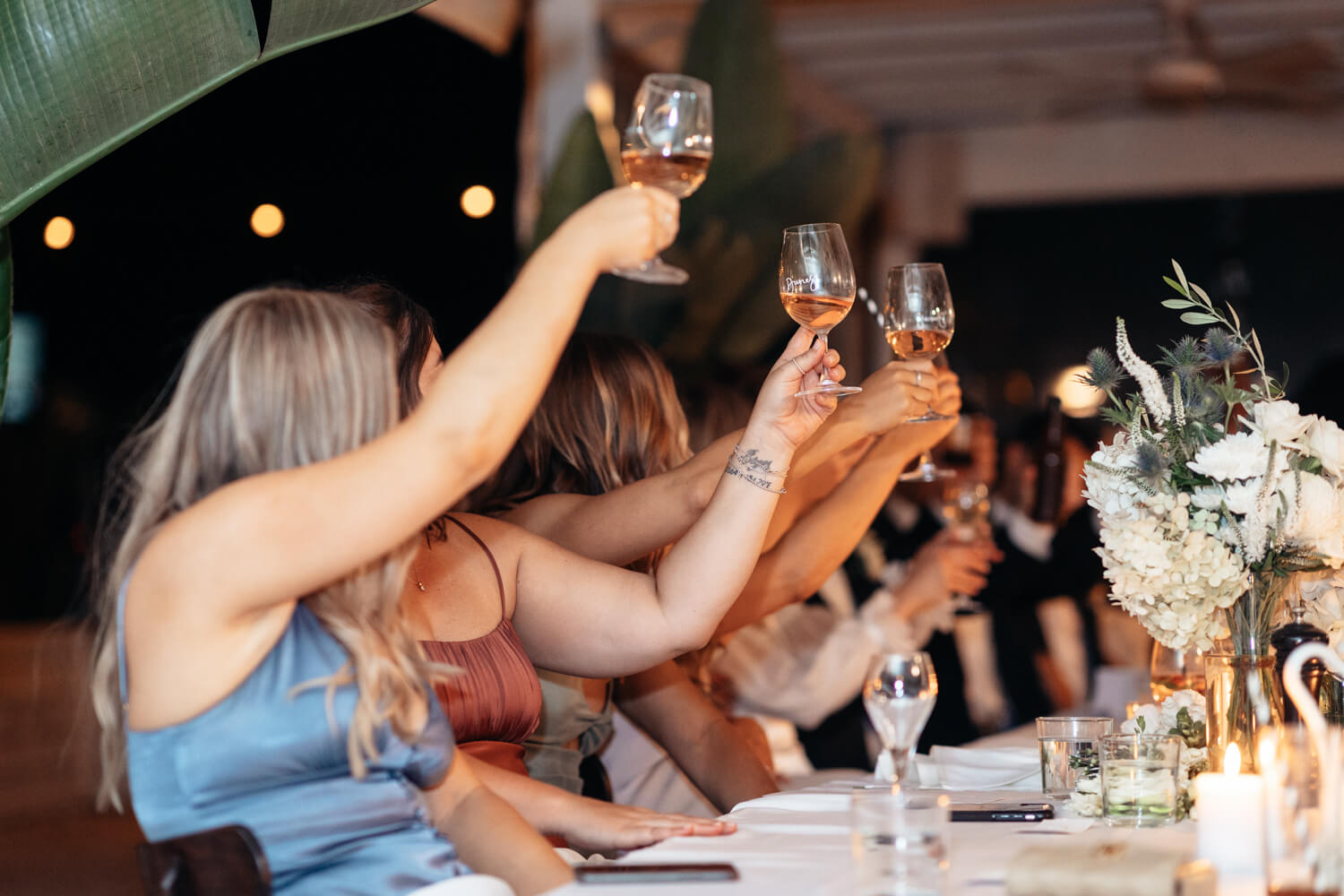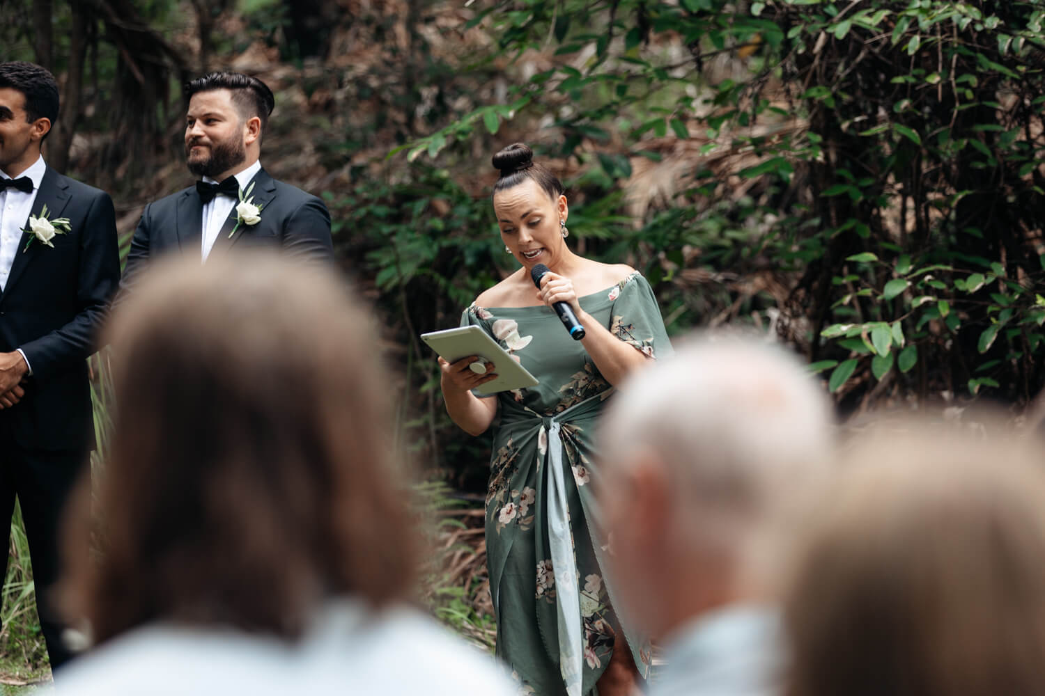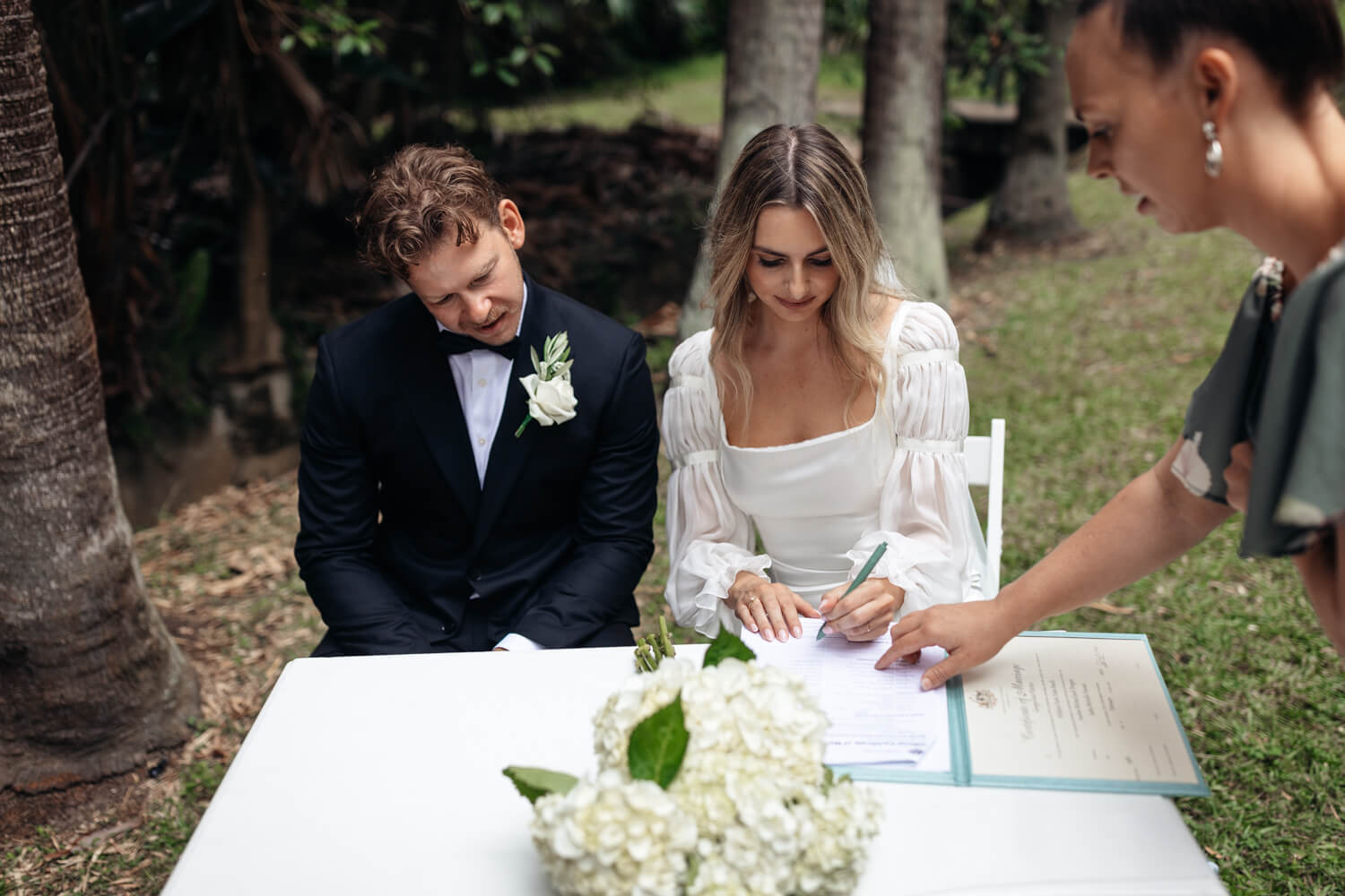 Venue: Dunes Palm Beach | Wedding planner: Girl Friday | Celebrant: Georgia Fletcher Celebrant | Make-up artist: Aleisha Johnson Makeup | Videographer: Story of Us | Cake designer: Roseberry Cake Creations | Live music: The White Tree | Bride’s dress: Helen English | Bride’s shoes: The White Collection | Hair piece: Amelie George | Ring designer: Jacque Fine Jewellery | Groom & groomsmens suit: Institchu