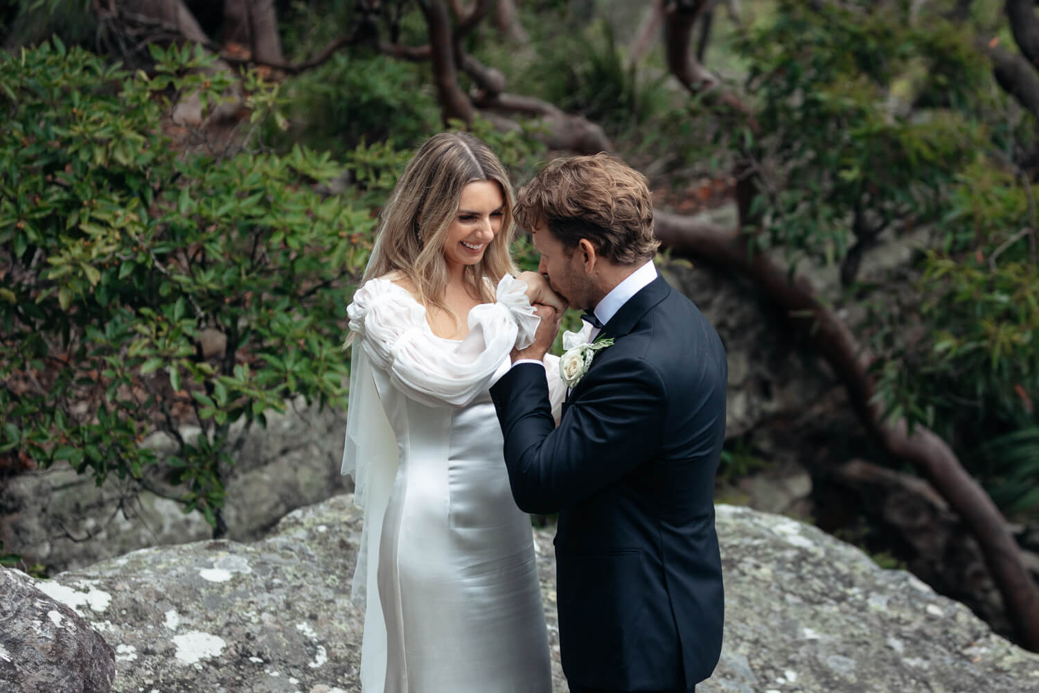 How did the proposal take place that lead to your Dunes Palm Beach Wedding?: Andrew proposed at Balmoral Beach headlands. On a very hot and sticky morning, after smuggling the ring in its box in his underpants, we finally reached the summit. Here, after waiting some time for privacy, Andrew finally popped the question. He was relieved to finally be able to relax and we were both over the moon!