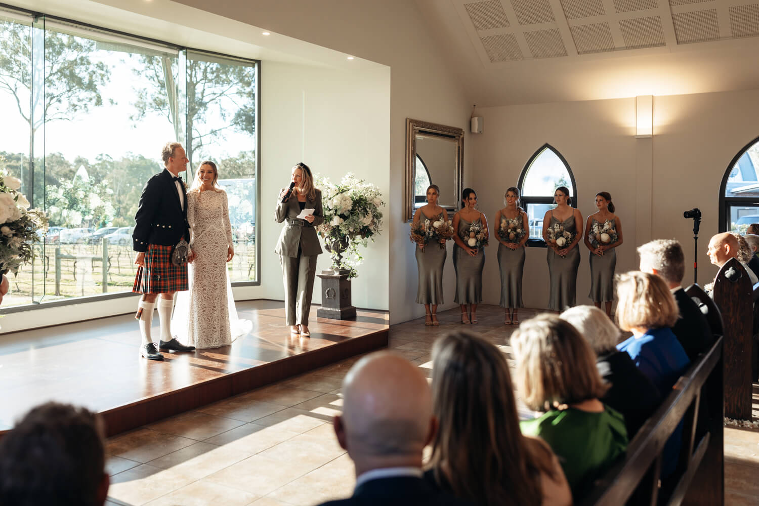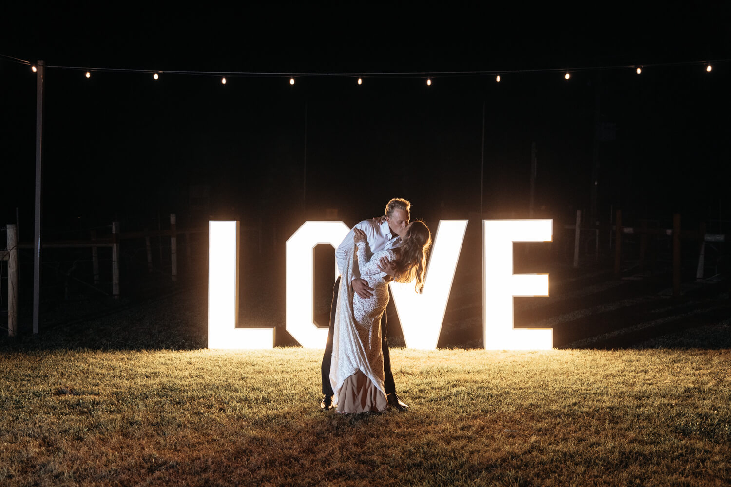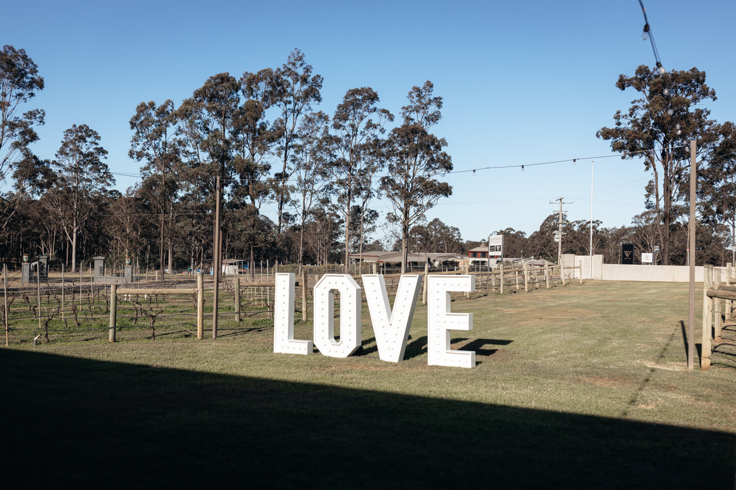 Wedding venue: Enzo, Ironbark Hill | Celebrant: Marney McQueen | Make-up artist: Joanne Bentley | Hair stylist: Monique Kazokas | Floral designer: Little Wren Florals | Videographer: Hunter Valley Video | Cake designer: Michelle the Cake Chef | DJ: Advantage DJs | Bride’s dress & hair piece: Grace Loves Lace | Bride’s shoes: Loeffler Randall | Ring designer: Australian Wedding Rings | Bridesmaid dresses: Shona Joy | Groom’s suit: Scottish Accessories Shoppe | Groomsmen’s suit details: Peppers Formal Wear | Caterer: Enzo Weddings | Rentals: LOVE Lights Sign – Love Glows