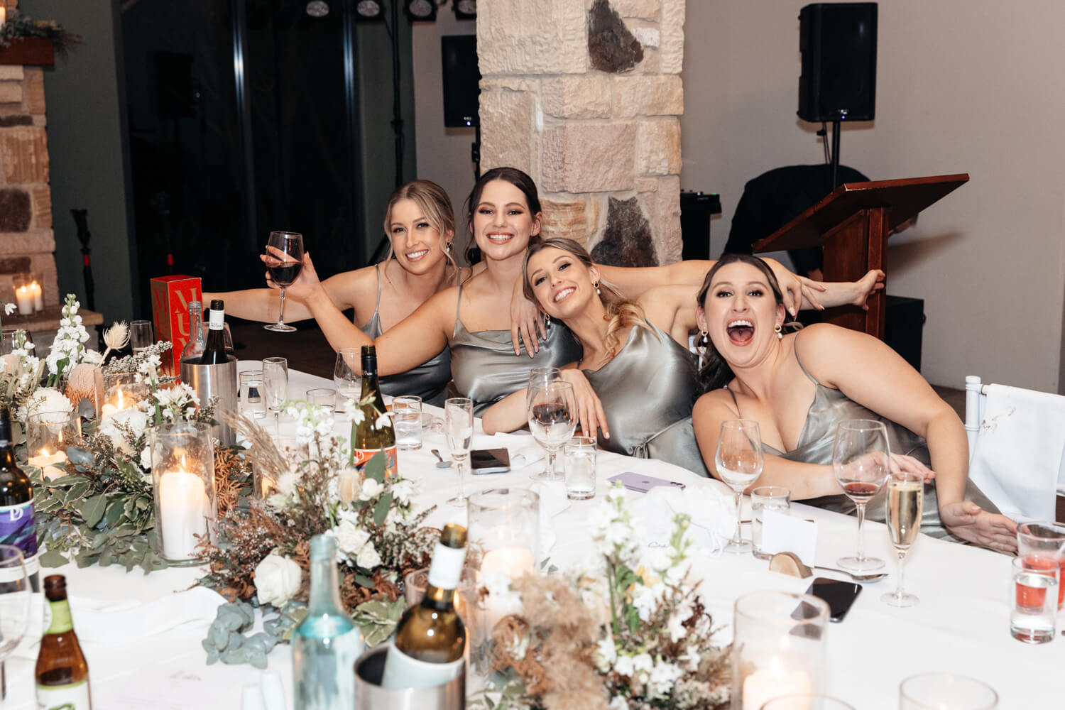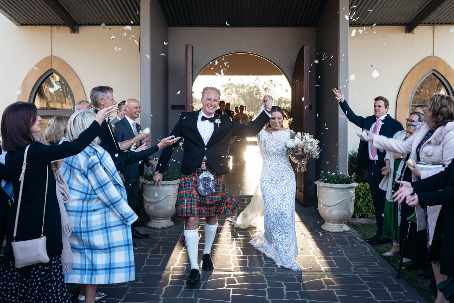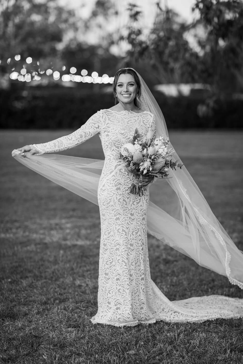 Wedding venue: Enzo, Ironbark Hill | Celebrant: Marney McQueen | Make-up artist: Joanne Bentley | Hair stylist: Monique Kazokas | Floral designer: Little Wren Florals | Videographer: Hunter Valley Video | Cake designer: Michelle the Cake Chef | DJ: Advantage DJs | Bride’s dress & hair piece: Grace Loves Lace | Bride’s shoes: Loeffler Randall | Ring designer: Australian Wedding Rings | Bridesmaid dresses: Shona Joy | Groom’s suit: Scottish Accessories Shoppe | Groomsmen’s suit details: Peppers Formal Wear | Caterer: Enzo Weddings | Rentals: LOVE Lights Sign – Love Glows