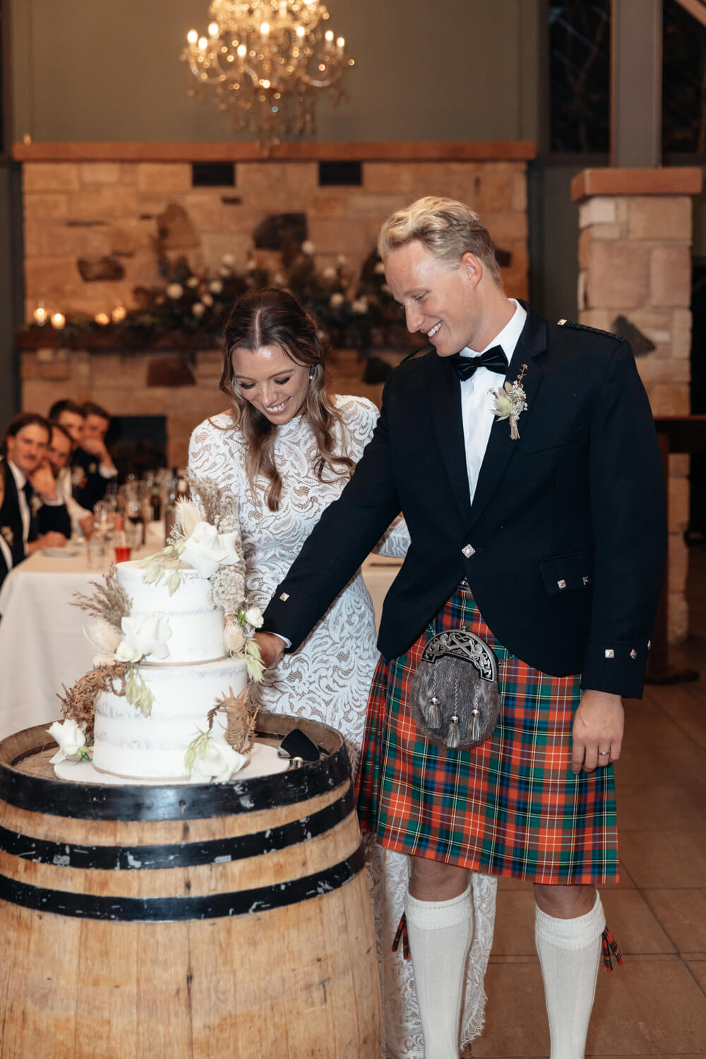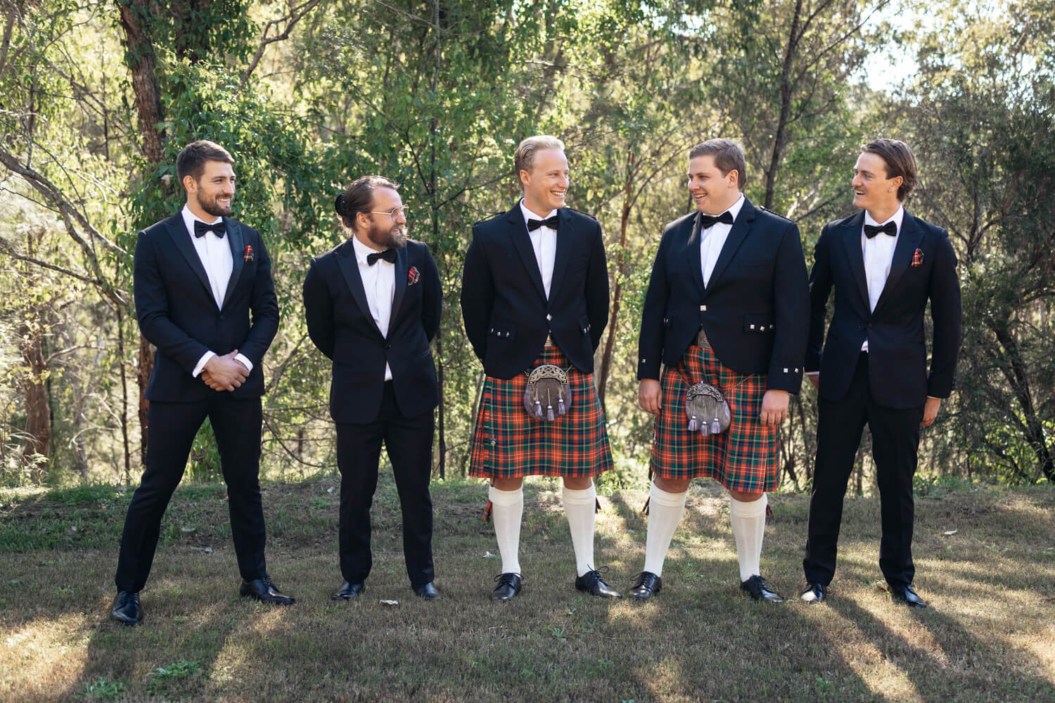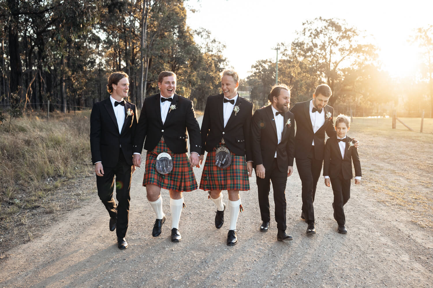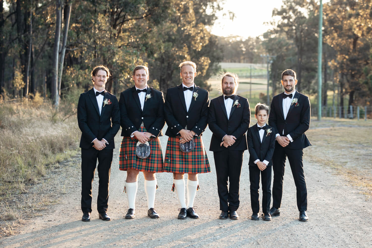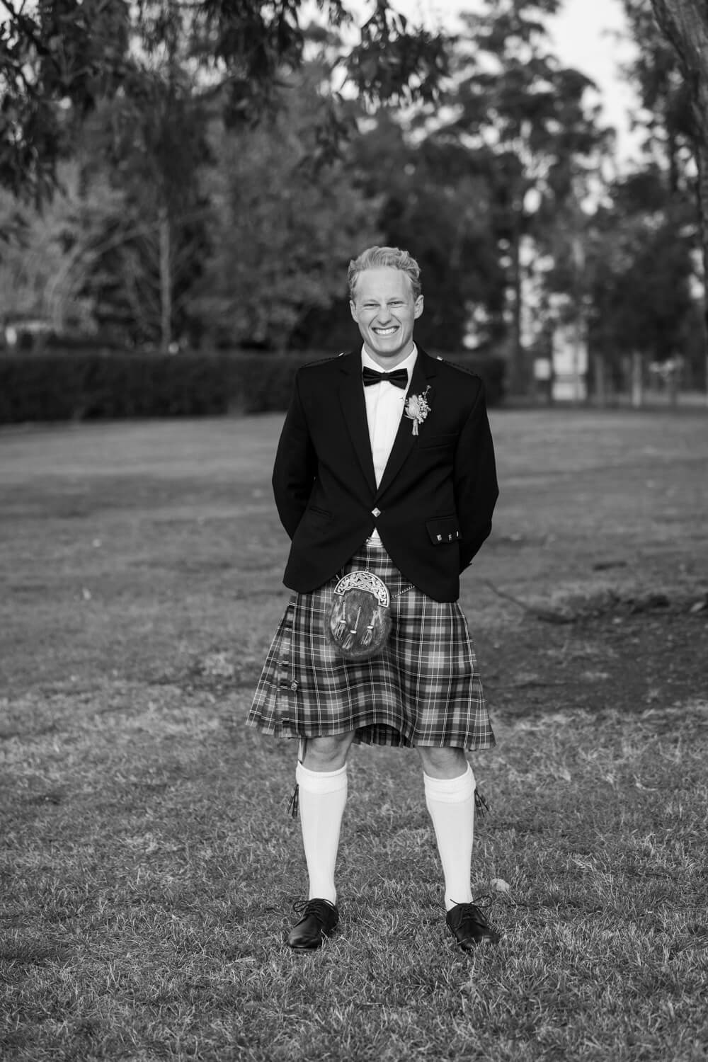 Hamish will also be adding a bit of his Dad’s Scottish heritage! Hamish, his Dad and his brother (who is also his best man) will all be wearing kilts in their family tartan. The other groomsmen will be wearing black suits with pocket squares in the Christie family tartan.