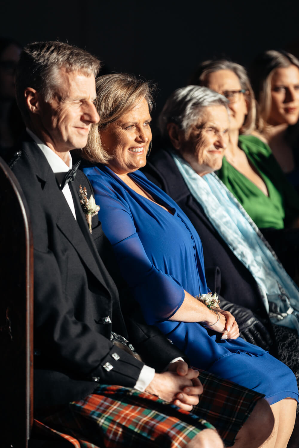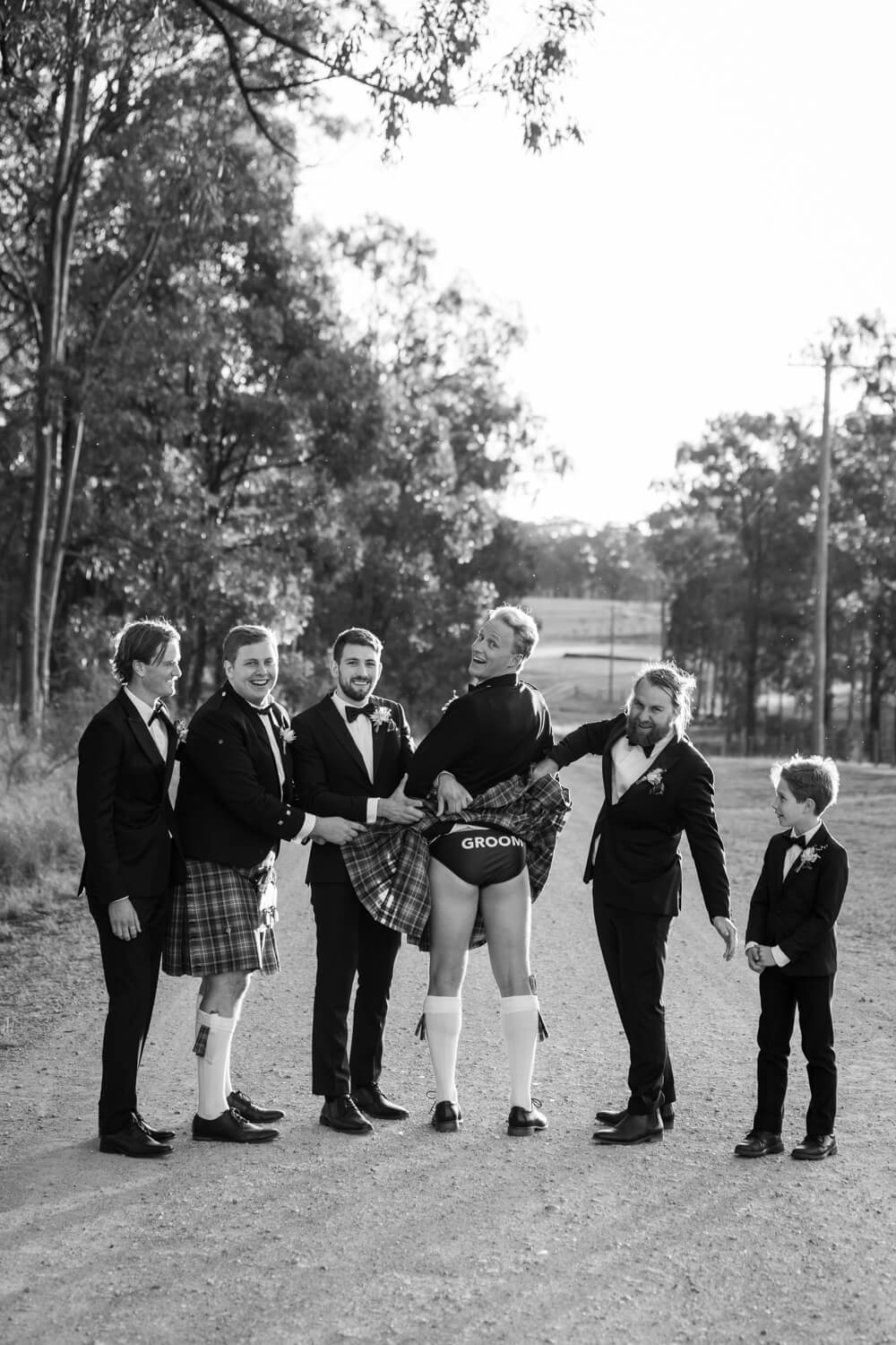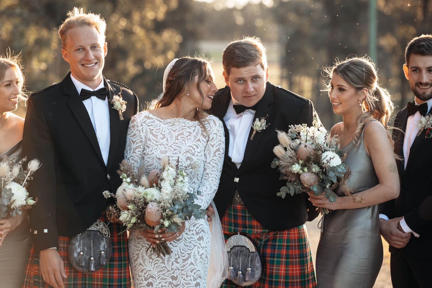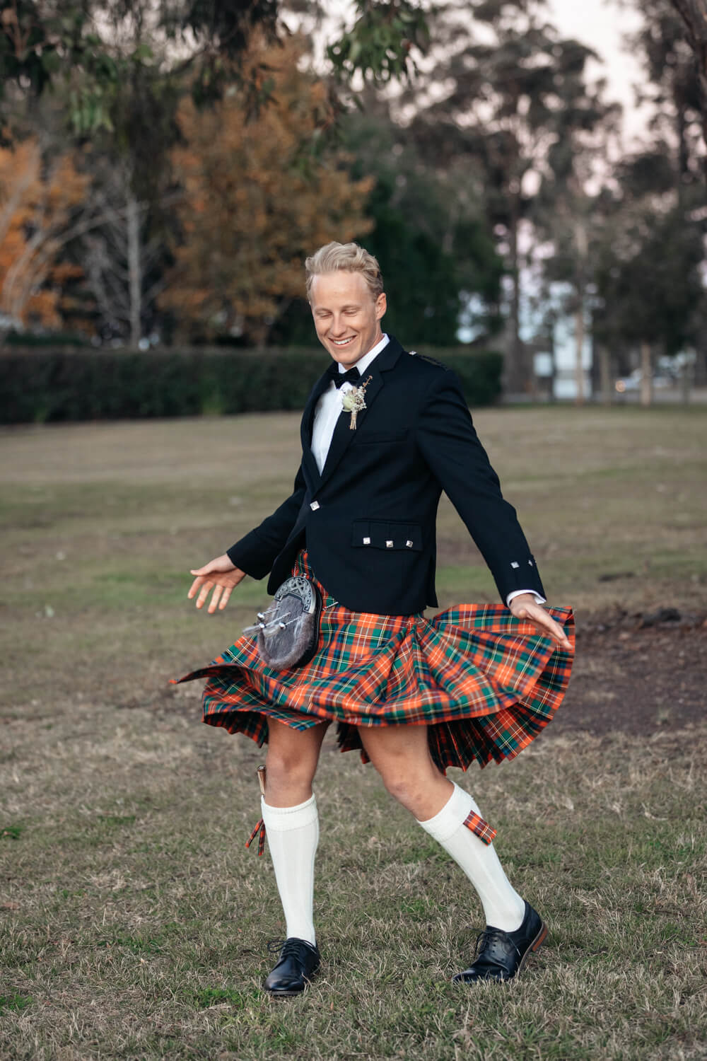 Hamish will also be adding a bit of his Dad’s Scottish heritage! Hamish, his Dad and his brother (who is also his best man) will all be wearing kilts in their family tartan. The other groomsmen will be wearing black suits with pocket squares in the Christie family tartan.