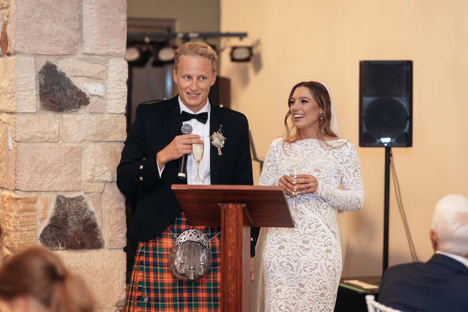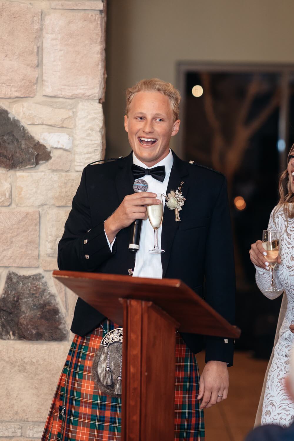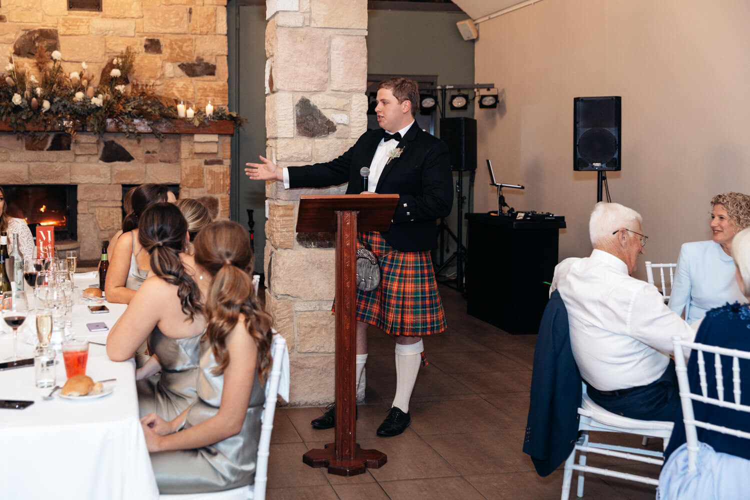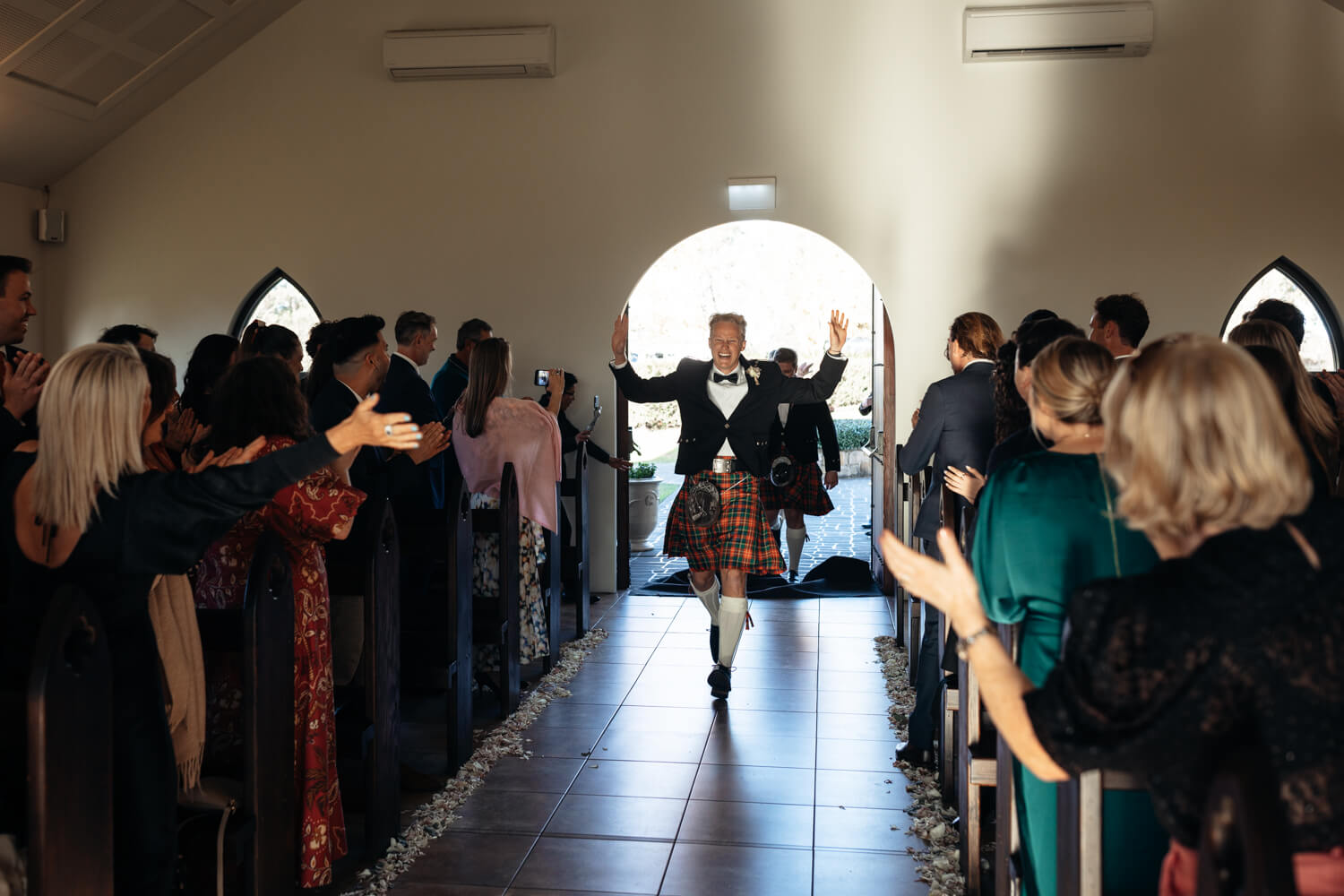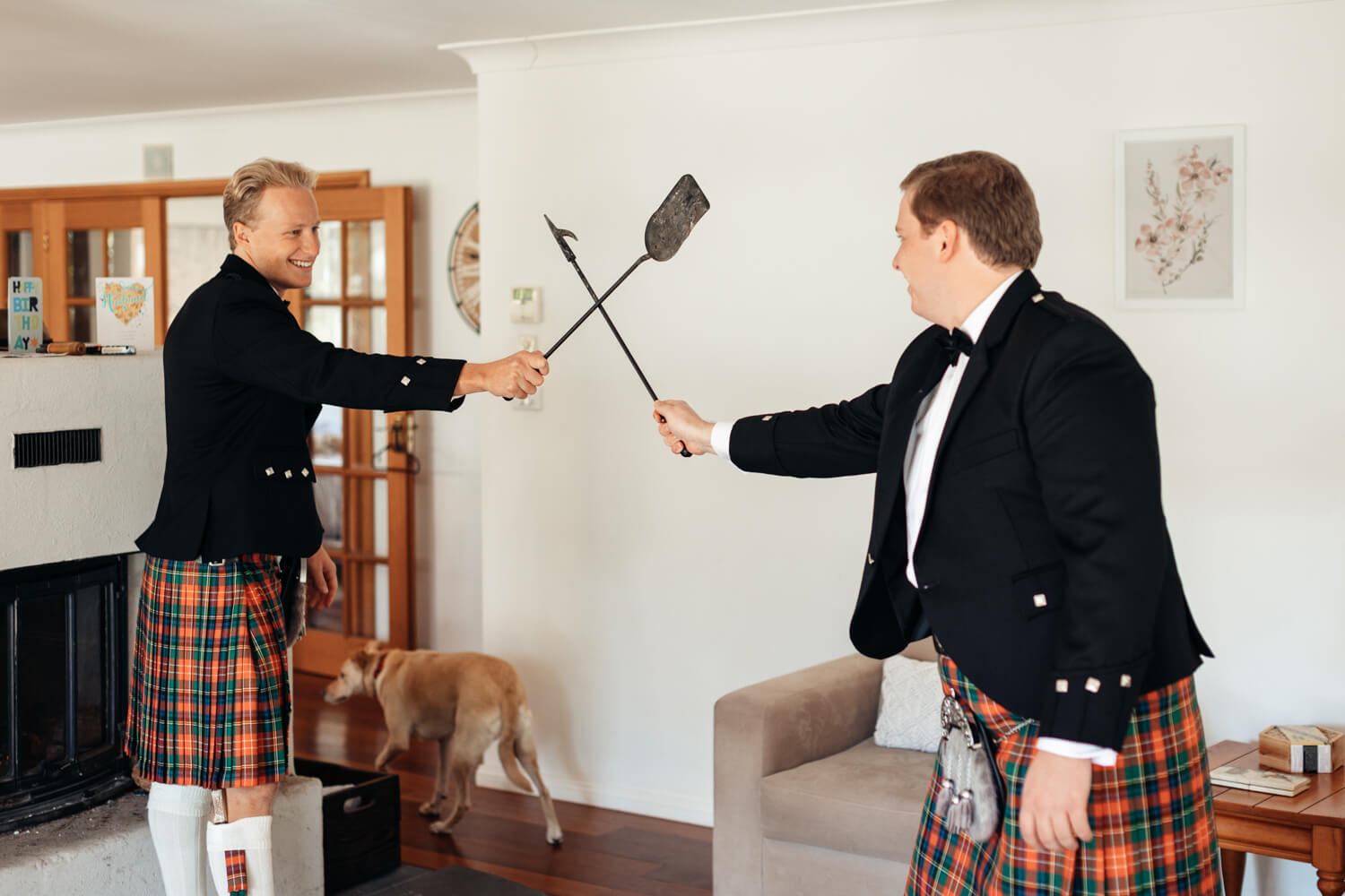 Hamish will also be adding a bit of his Dad’s Scottish heritage! Hamish, his Dad and his brother (who is also his best man) will all be wearing kilts in their family tartan. The other groomsmen will be wearing black suits with pocket squares in the Christie family tartan.