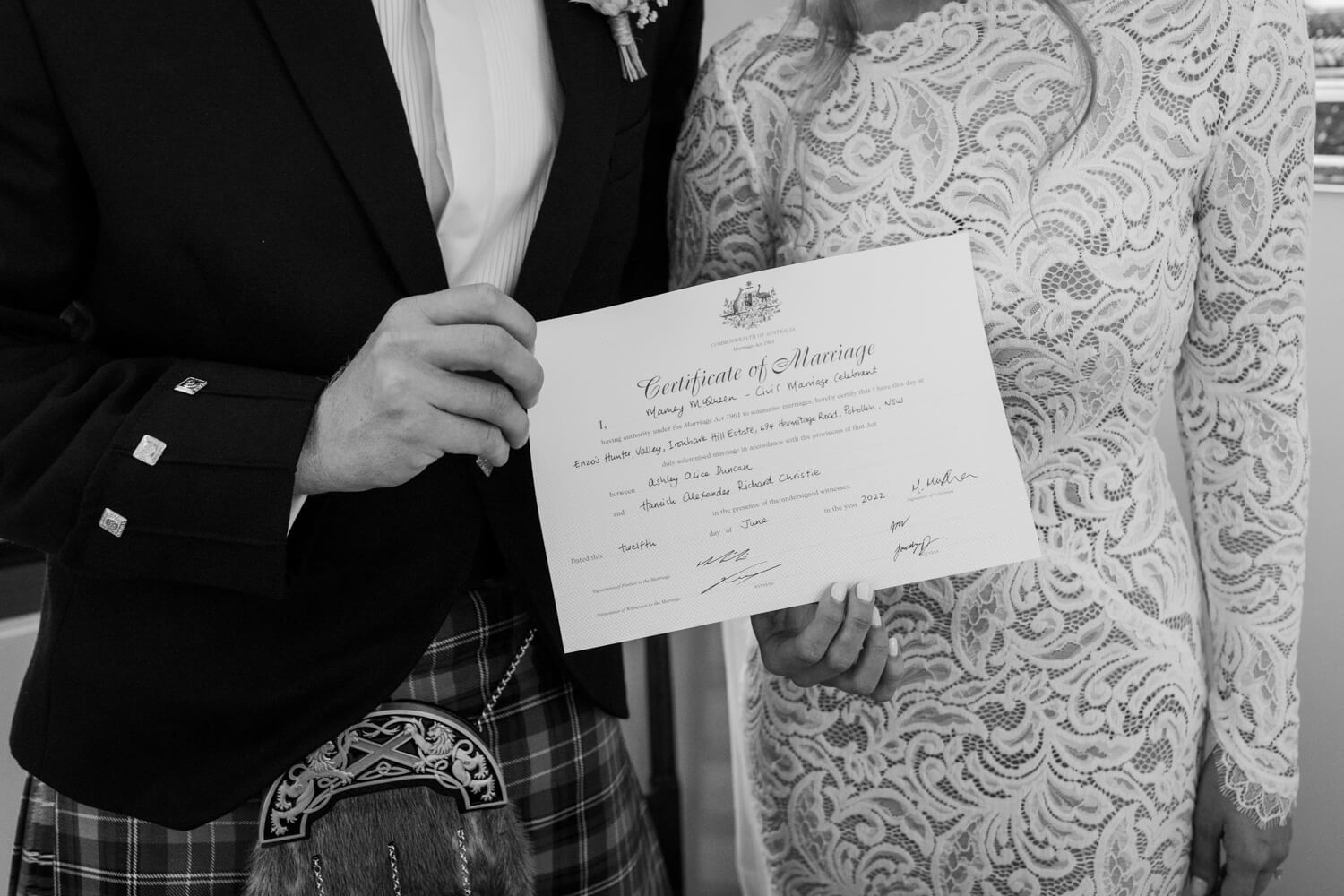 What was the reason for selecting Enzo Ironbark Hill for your wedding?: We absolutely love the Hunter Valley. Ash’s grandparents owned “CamWay Estate” which used to be called “CamWay Cottages” which is off Broke Road in Pokolbin. Growing up, Ash spent many family holidays (Christmas, Easter, birthdays…etc.) in the Hunter with her whole family and ended up inviting Hamish up whenever there was a spare chance! Hamish’s family also have a farm in Laguna that they purchased in 2019 that is not far from the Hunter Valley.