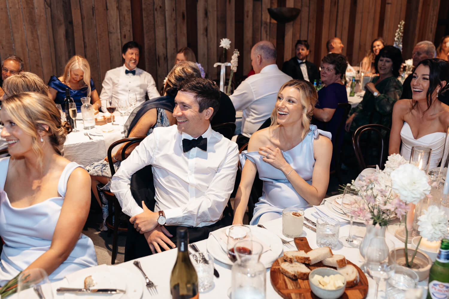 Greyleigh is more than a venue – it’s a place where couples and their closest friends and family can retreat for an entire wedding weekend. The Homestead and Guest House sleep up to 18 guests, offering luxe farmhouse interiors, a pool cabana, spa, firepits, and even an outdoor wood-fire pizza oven. Guests often describe it as a destination wedding experience without having to leave NSW. Lawn games under the fig tree, cocktails in the silos, and watching the sun set over the hills all add to the relaxed, joyful atmosphere.