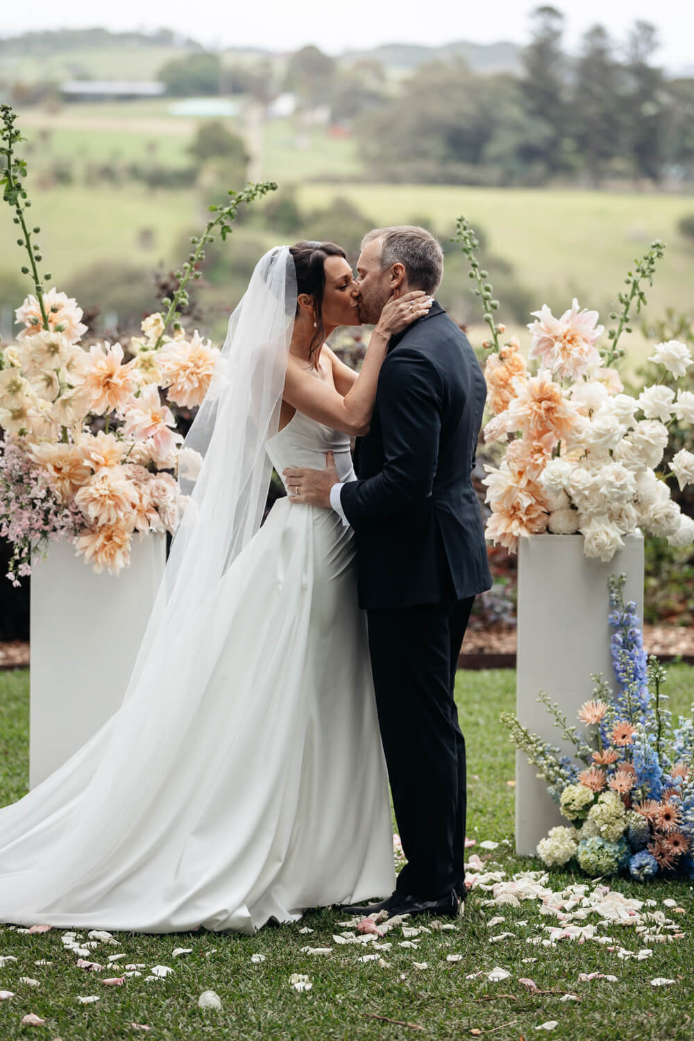 Nestled across 200 acres of rolling hills and orchards with sweeping ocean views, a Greyleigh Kiama wedding is the perfect blend of countryside tranquility and coastal elegance. Just under two hours south of Sydney, Greyleigh has become one of the most in-demand South Coast wedding venues – not only for its spectacular setting but also for the way it makes couples and guests feel at home. Greyleigh began as a working dairy farm in the late 1800s, and much of its rustic charm remains today – from century-old stone walls to towering fig trees. Yet the estate has been carefully reimagined into a sophisticated wedding venue, offering the refinement and style modern couples look for. This unique combination of heritage and luxury makes it one of the most versatile wedding venues in Kiama.