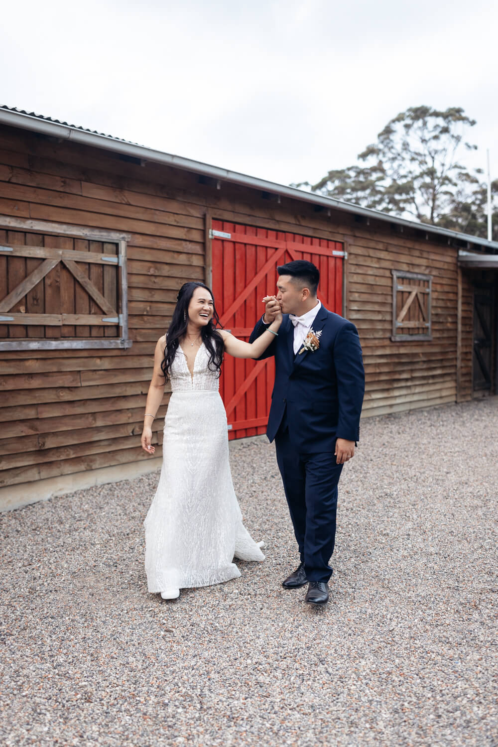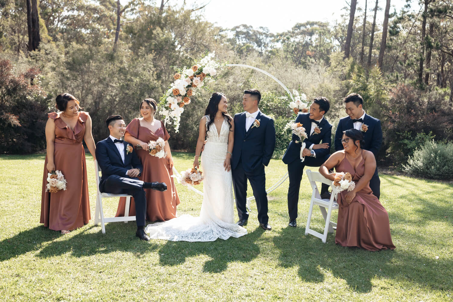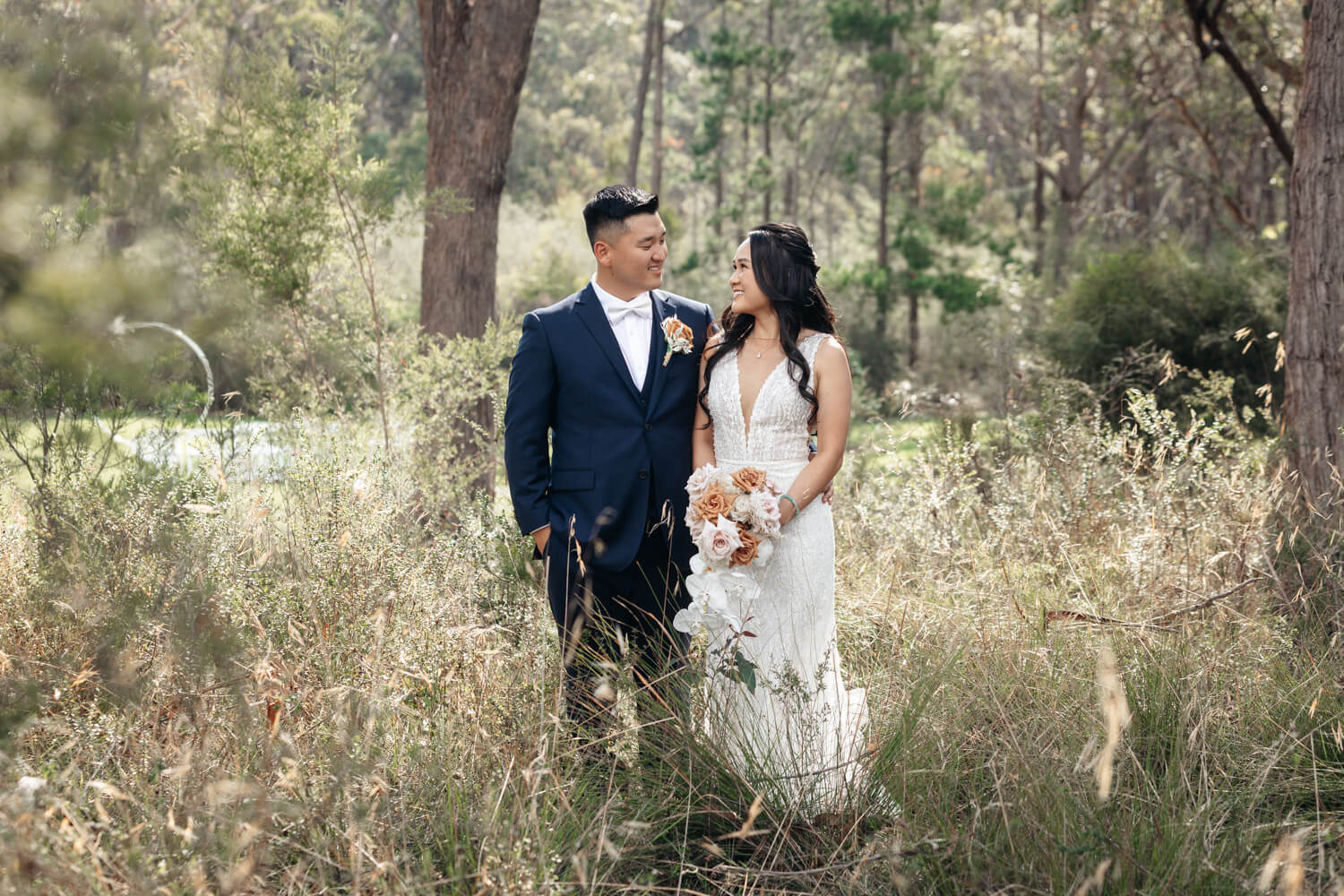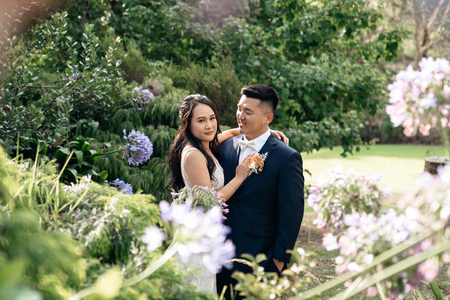 How did the proposal take place that lead to your Growwild Wildflower Farm Wedding in The Southern Highlands?: Sony planned the proposal months in advance and dreamed of the perfect proposal at his favourite lookout place – Blackheath Lookout. However, covid pushed his plans back and mother nature was not kind to him leading up to the big day. We had planned to go camping with our usual camp-crew but torrential rain meant that the team had to look for a new campsite the day before. Jenny was very upset everyone was insisting on going camping when roads and campsites were closed due to flooding. But Sony and the team had a mission and were determined for it to happen, so a very grumpy Jenny sat through the entire drive quietly seething. To top things off… it rained so hard overnight our tent leaked and pooled water all night… When the weather cleared up in the morning, Sony bailed out the pool in the tent while Jenny sat watching with a ‘I told you so’ look on her face. We headed to the Lookout in the afternoon and with the help of their sneaky friends, Sony was able to surprise Jenny with a proposal in front of the misty valley. Jenny’s first words as he reached into his pocket was ‘Are you serious?’. Sony’s mind blanked and he forgot everything he had planned to say…