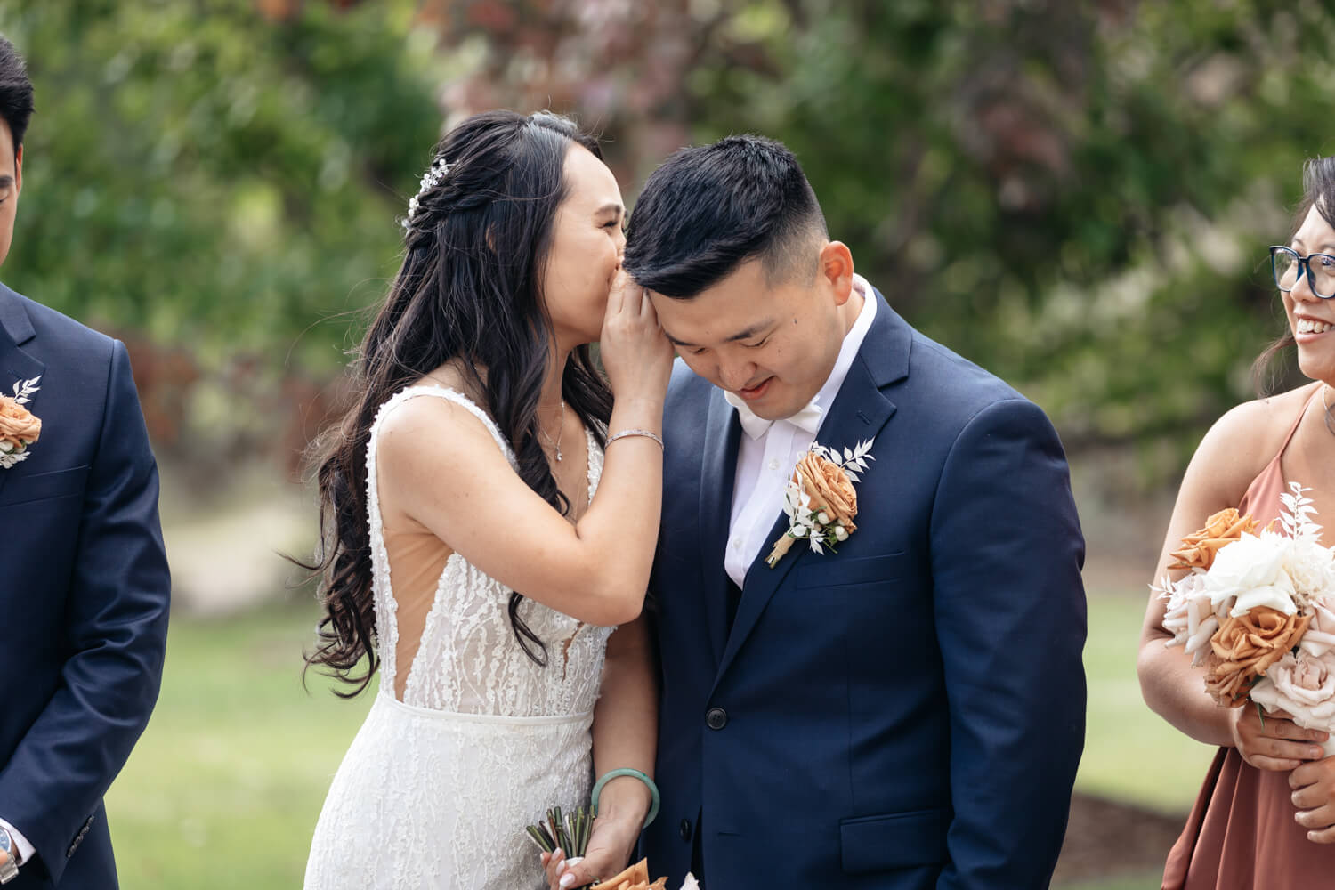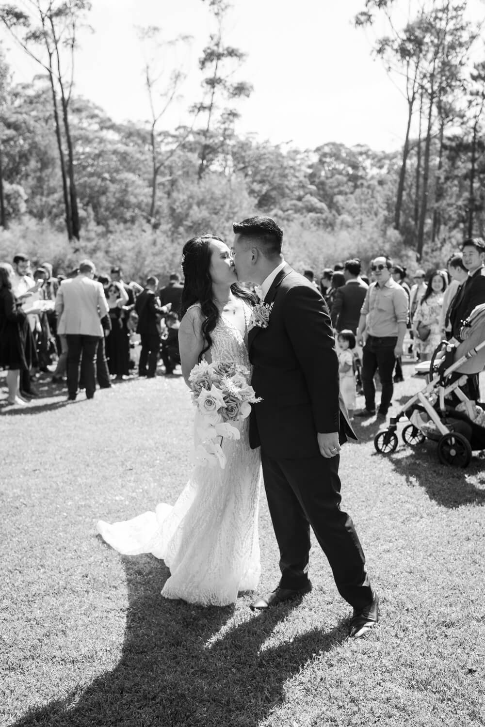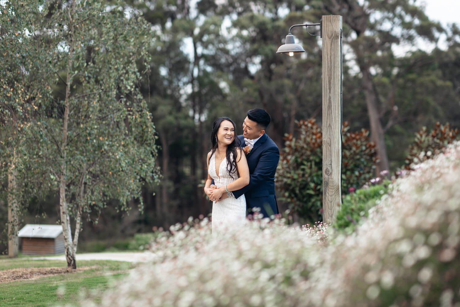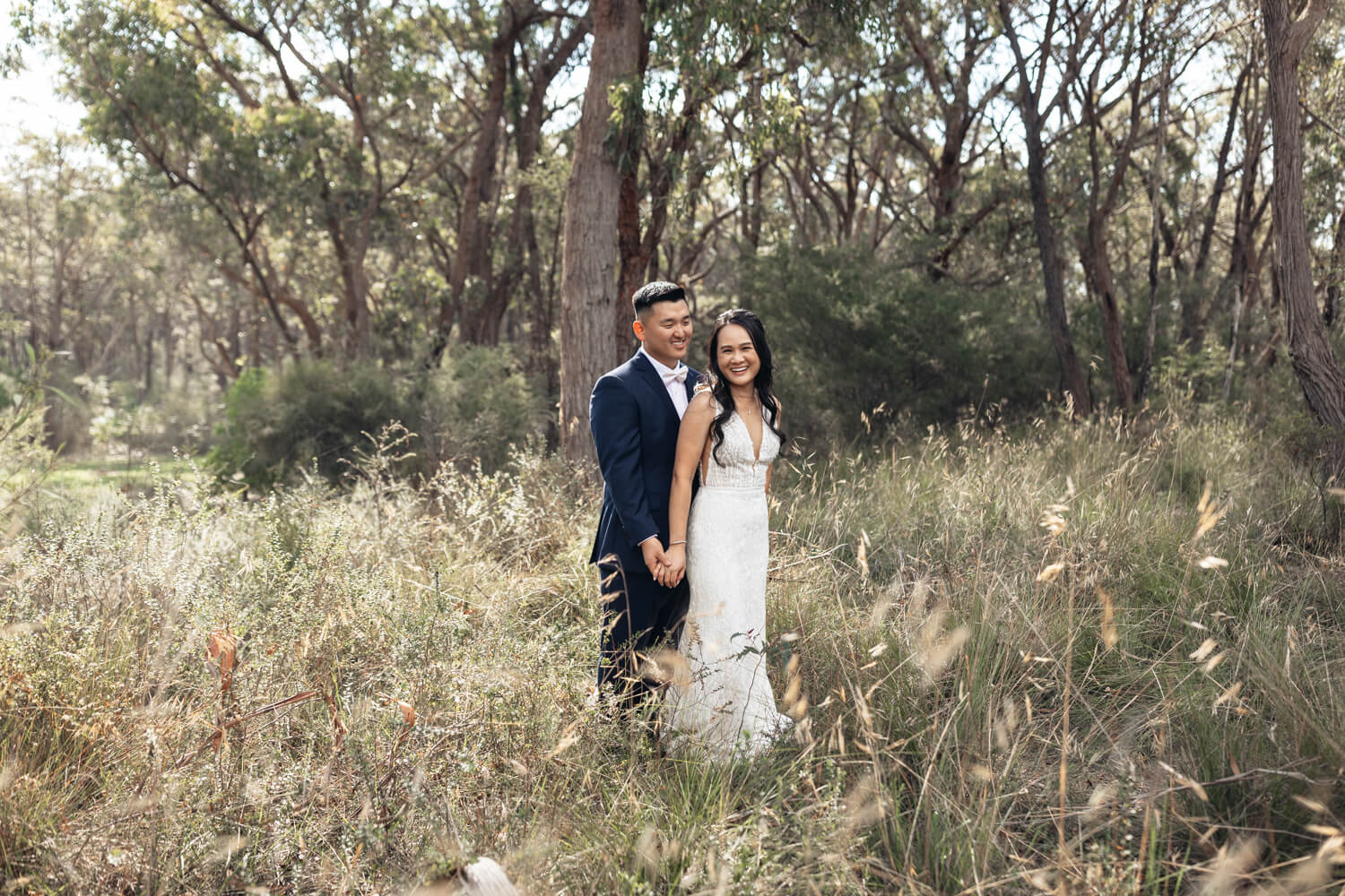 How did the proposal take place that lead to your Growwild Wildflower Farm Wedding in The Southern Highlands?: Sony planned the proposal months in advance and dreamed of the perfect proposal at his favourite lookout place – Blackheath Lookout. However, covid pushed his plans back and mother nature was not kind to him leading up to the big day. We had planned to go camping with our usual camp-crew but torrential rain meant that the team had to look for a new campsite the day before. Jenny was very upset everyone was insisting on going camping when roads and campsites were closed due to flooding. But Sony and the team had a mission and were determined for it to happen, so a very grumpy Jenny sat through the entire drive quietly seething. To top things off… it rained so hard overnight our tent leaked and pooled water all night… When the weather cleared up in the morning, Sony bailed out the pool in the tent while Jenny sat watching with a ‘I told you so’ look on her face. We headed to the Lookout in the afternoon and with the help of their sneaky friends, Sony was able to surprise Jenny with a proposal in front of the misty valley. Jenny’s first words as he reached into his pocket was ‘Are you serious?’. Sony’s mind blanked and he forgot everything he had planned to say…