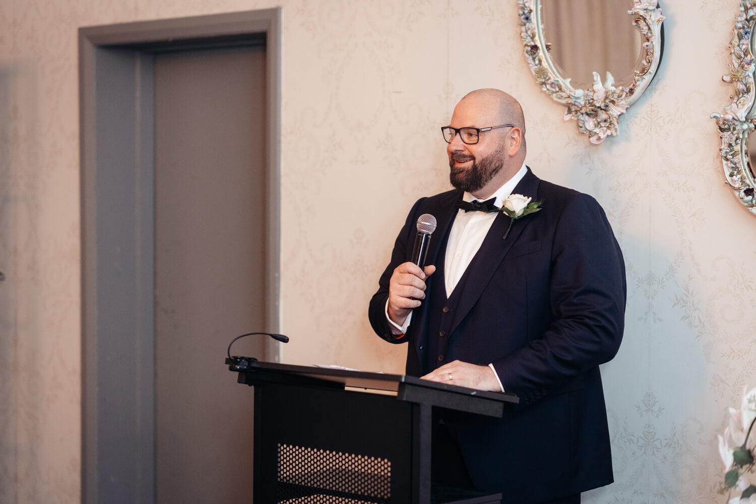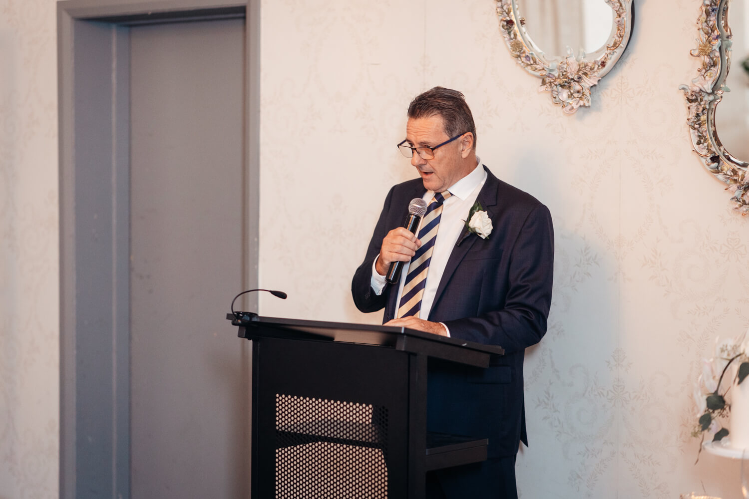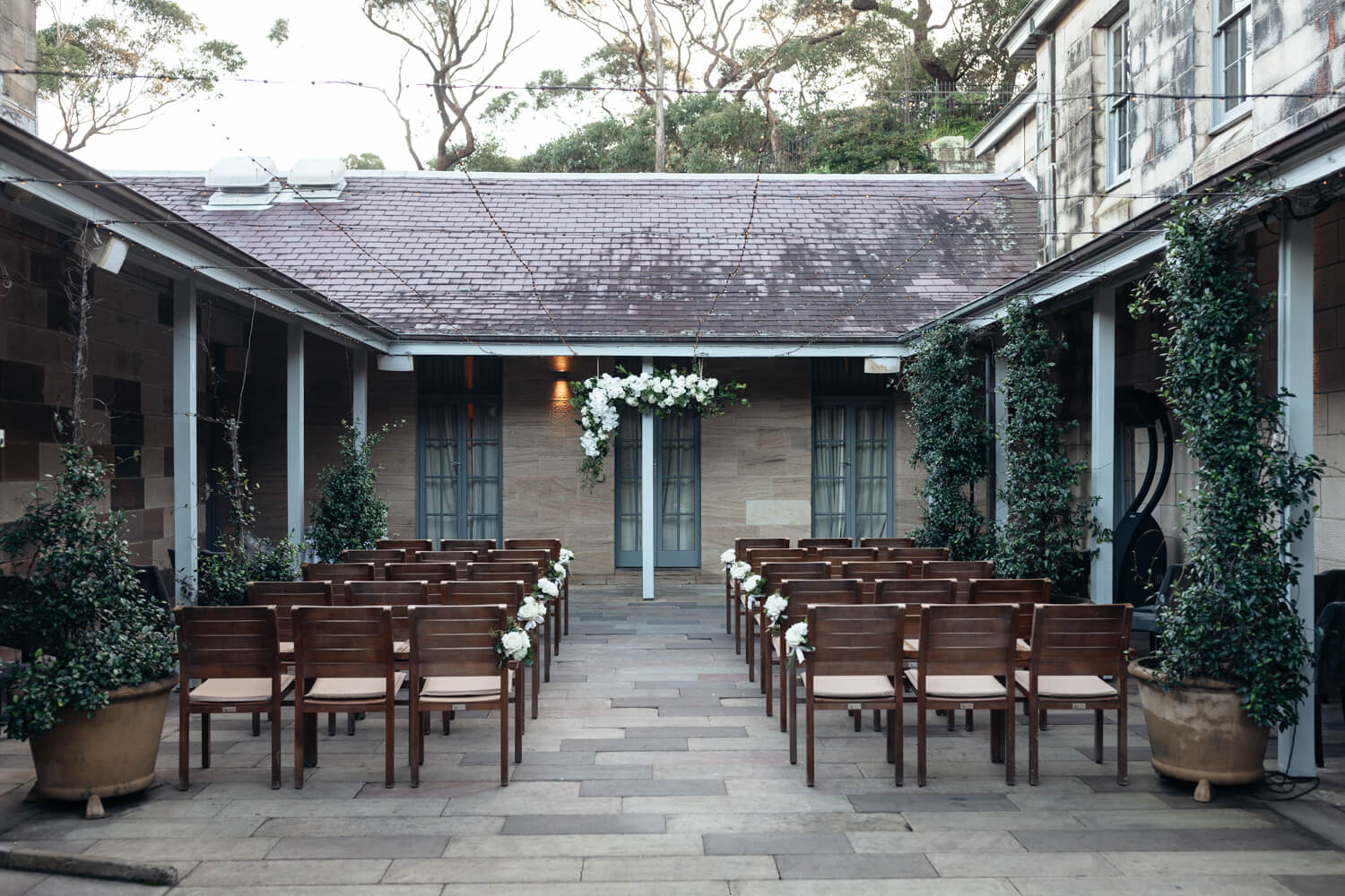 What was the reason for selecting Gunners Barracks in Mosman for your wedding venue?: Steve gave me a birthday gift years ago to go to High Tea at the Gunners’ Barracks. I fell in love with the tea room and its chandeliers, the Harbour back-drop and the ferns and greenery as you walk down to the venue. I also love the sandstone courtyard, which has a rustic feel.