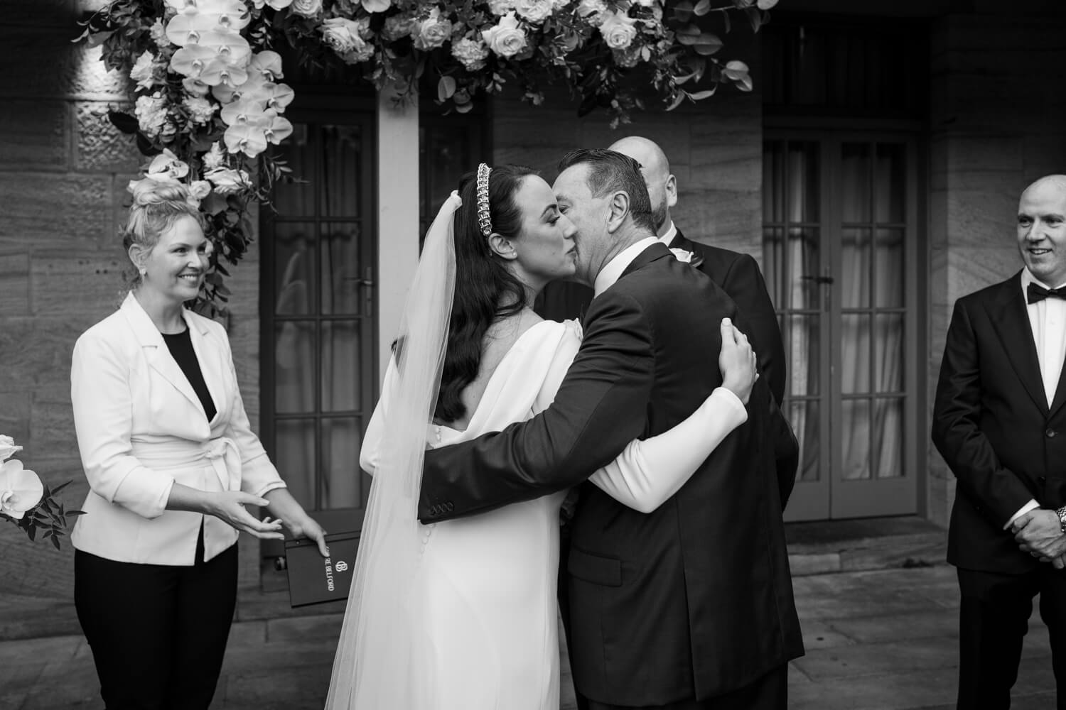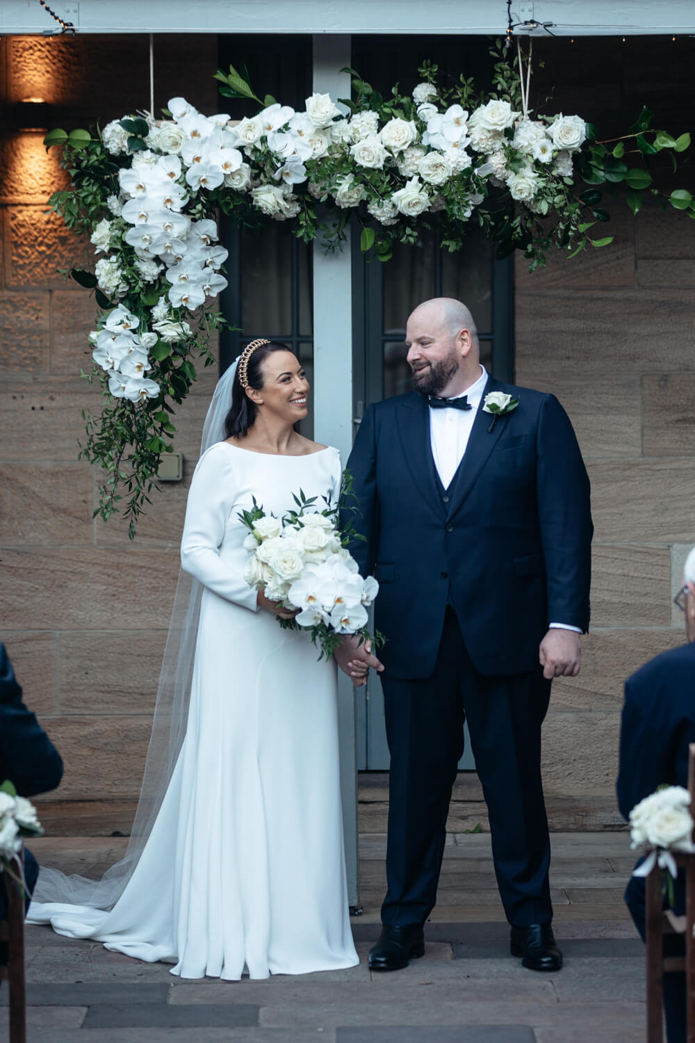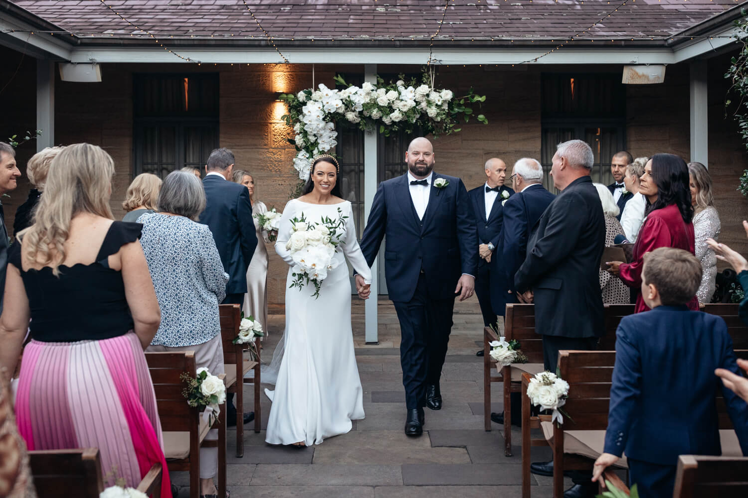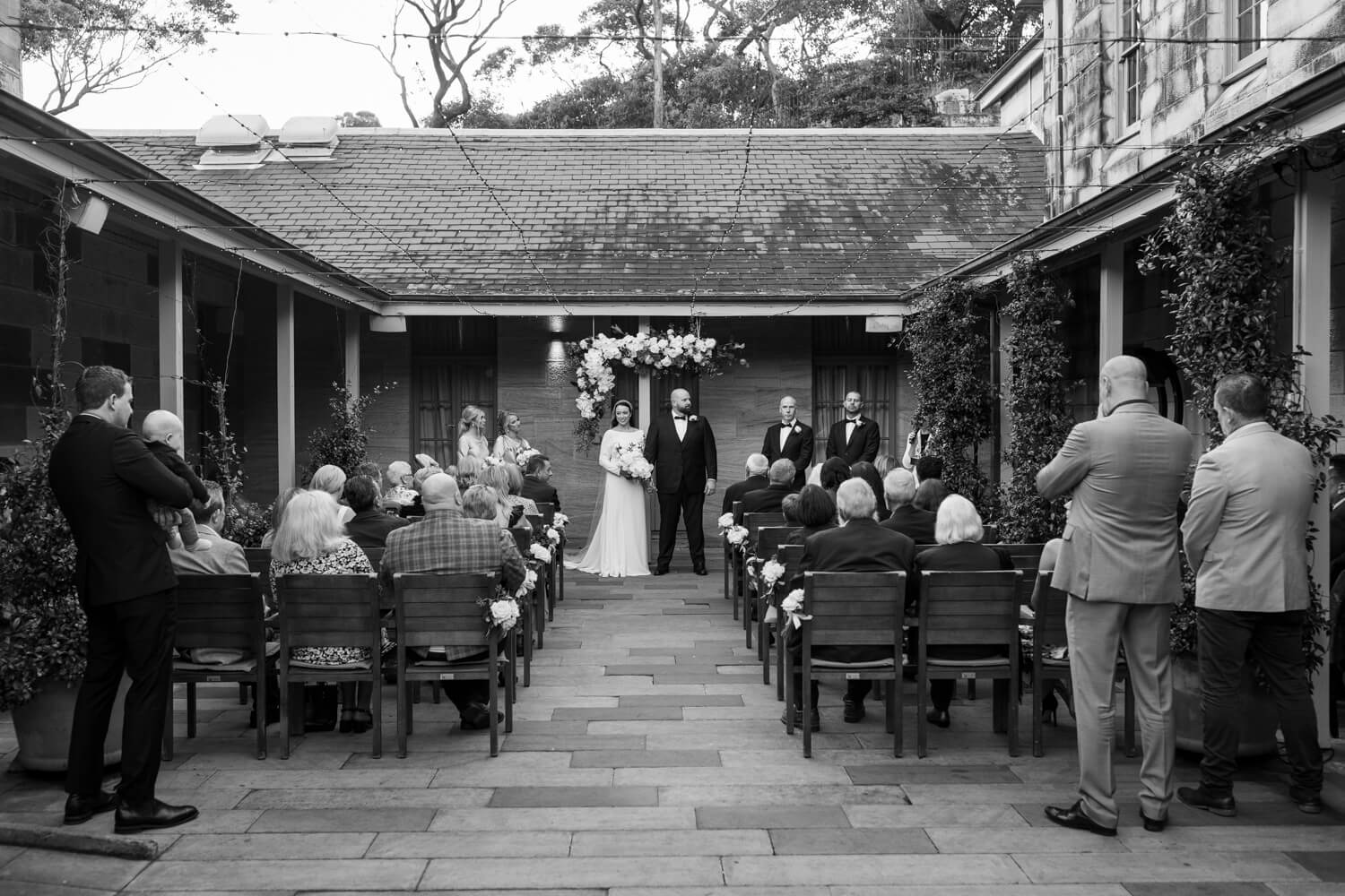 Wedding venue: Gunners Barracks, Mosman | Celebrant: Claire Belford | Hair & Make-up artist: Gemma Nichols Hair and Makeup | Floral designer: Japonica | Cake designer: ByGigi | DJ: Northern Beaches DJ’s and Events | Bride’s dress: Pronovia | Bride’s shoes: Kurt Geiger | Hair piece: Viktoria Novak | Ring designer: Nicholas Haywood Jewellery Concierge | Bridesmaid dresses: Bec + Bridge | Groom & groomsmen’s suit: Woolcott St Sydney | Car hire: Luxcar