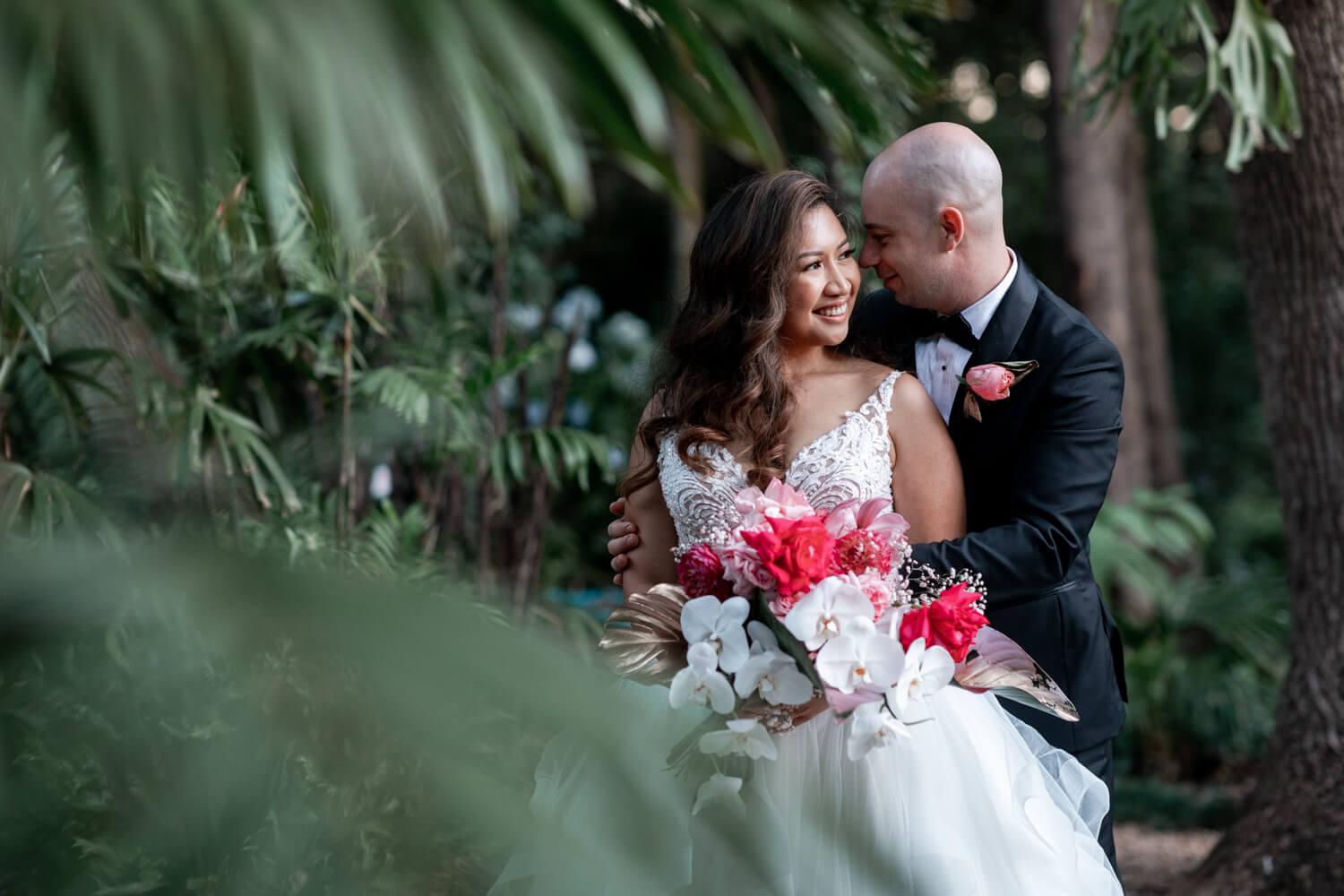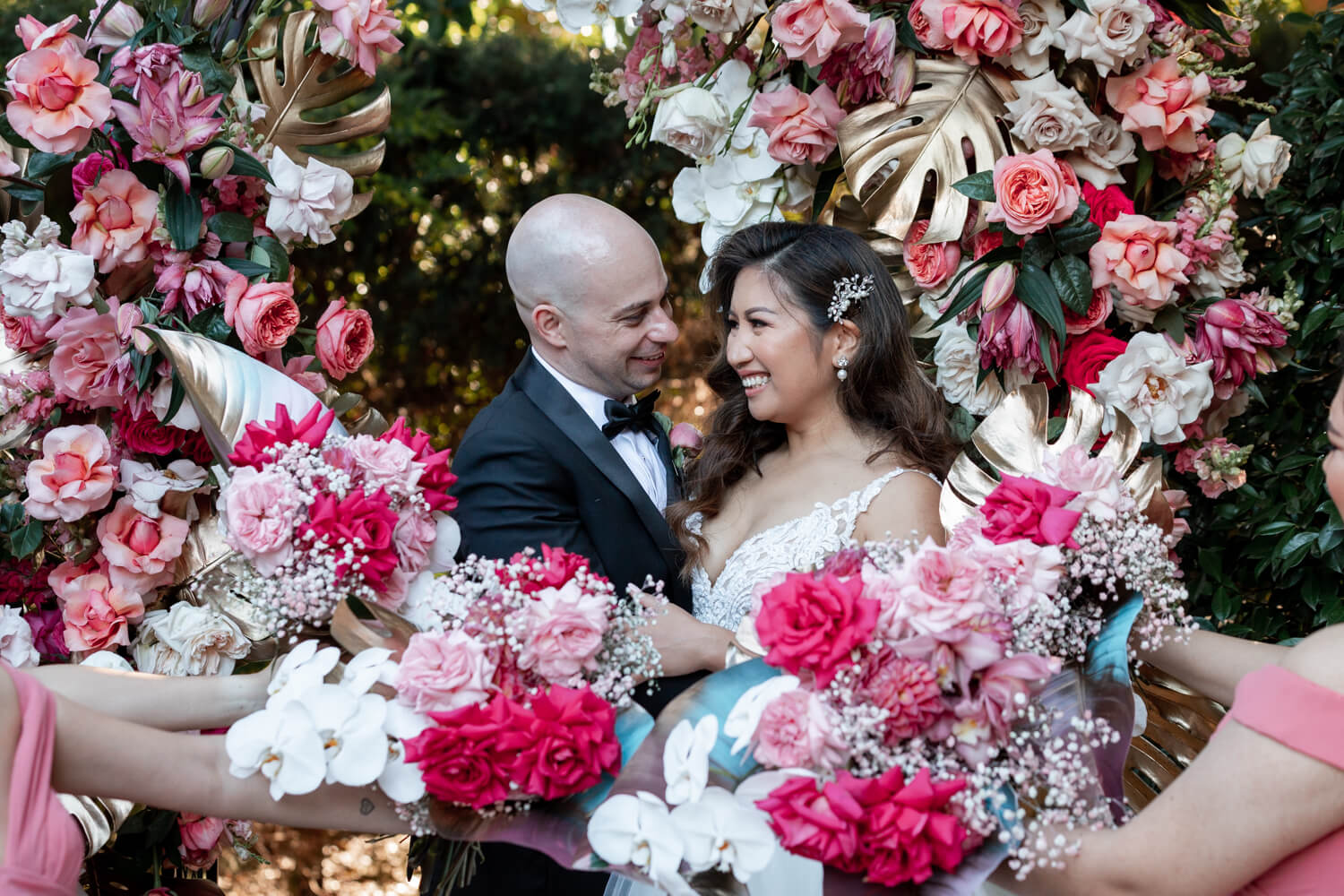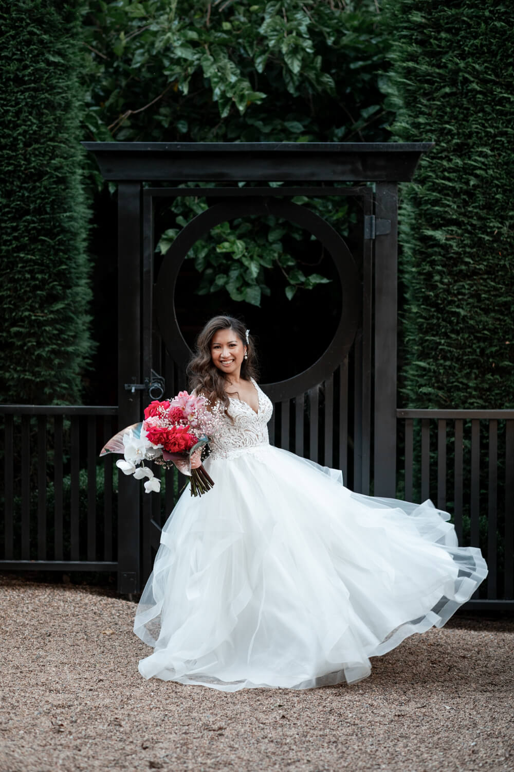 Venue Selection: Originally our wedding was planned to be in the Philippines which is where I was born. However, with covid changing our travel plans we hunted for a new venue around 6 months ago. This was challenging as many brides were doing the same and we never found a venue that gave us the same magical feeling we felt when we found our Boracay venue. We also didn’t want a beach location as we didn’t want our wedding to feel like the ‘second choice’ option. Thankfully, when we stepped into Jaspers Berry, it was love at first sight for both of us, just like how we met! We loved the European-Asian fusion architecture and style, reflecting our own heritages through the tropical Garden, grand oak tree, the fountain area, the classic orangery and the vintage furniture. We loved that the reception and ceremony could all be on one location, that our bridal party could all stay on site – so the weekend could still feel like a mini destination wedding and holiday. We loved the idea of all inclusive package for our Jaspers Berry Wedding, because we really didn’t want to add anymore planning stress given we’d already planned and postponed our Boracay wedding. We were also hoping we wouldn’t be impacted by anymore travel restrictions since it was within NSW! We locked it in as soon as we saw it and the rest is history!