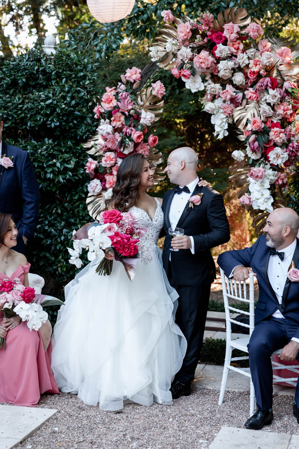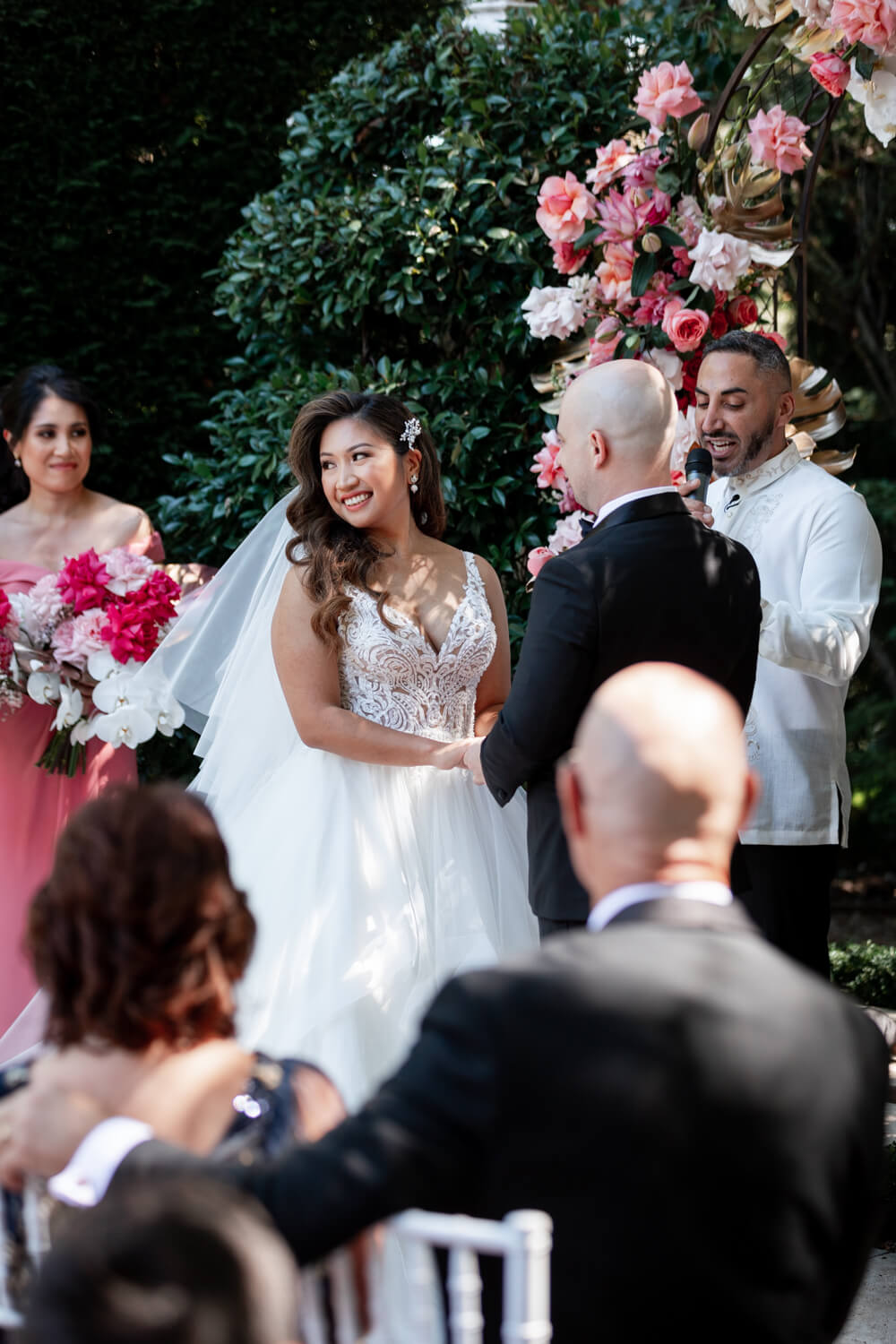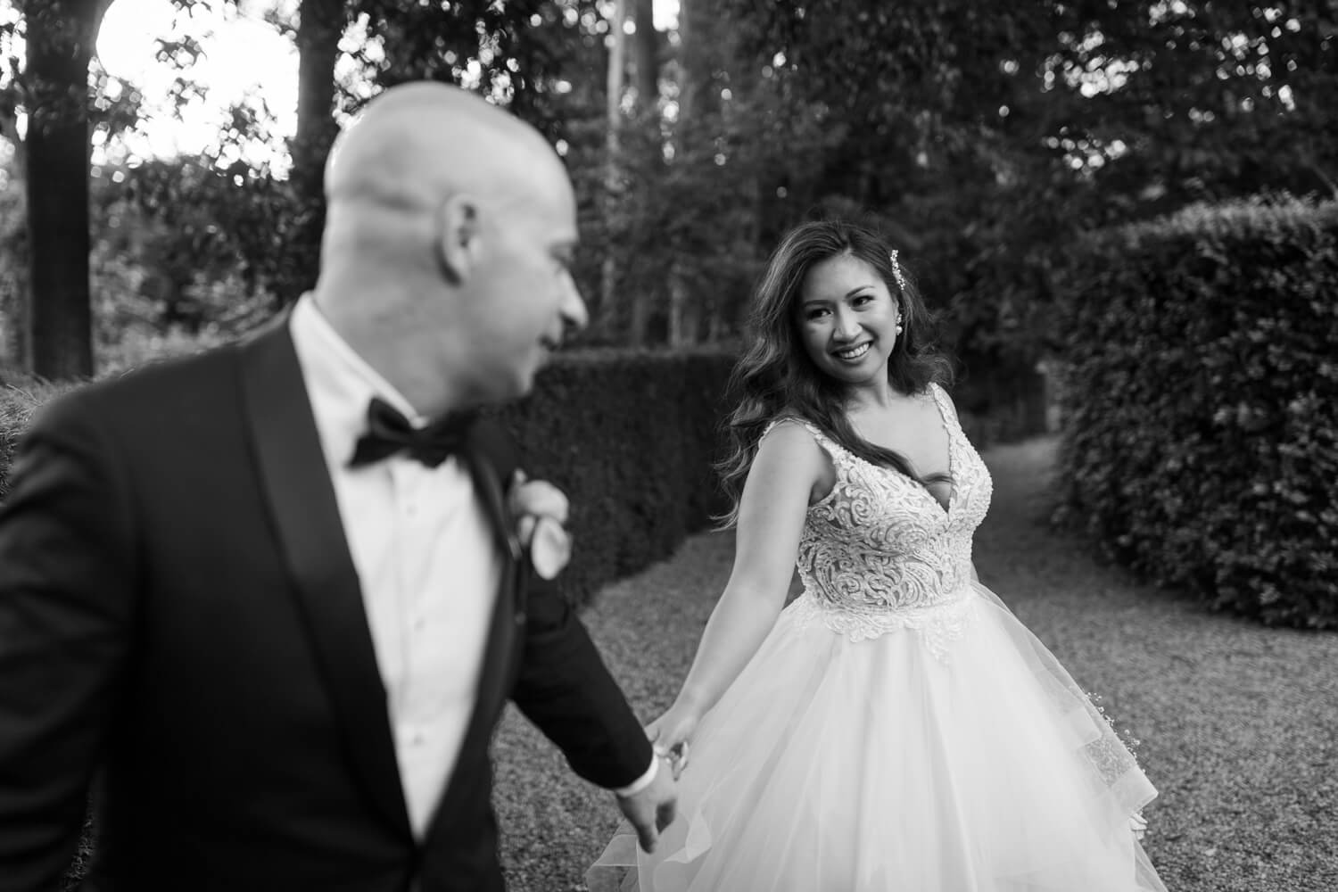 Venue Selection: Originally our wedding was planned to be in the Philippines which is where I was born. However, with covid changing our travel plans we hunted for a new venue around 6 months ago. This was challenging as many brides were doing the same and we never found a venue that gave us the same magical feeling we felt when we found our Boracay venue. We also didn’t want a beach location as we didn’t want our wedding to feel like the ‘second choice’ option. Thankfully, when we stepped into Jaspers Berry, it was love at first sight for both of us, just like how we met! We loved the European-Asian fusion architecture and style, reflecting our own heritages through the tropical Garden, grand oak tree, the fountain area, the classic orangery and the vintage furniture. We loved that the reception and ceremony could all be on one location, that our bridal party could all stay on site – so the weekend could still feel like a mini destination wedding and holiday. We loved the idea of all inclusive package for our Jaspers Berry Wedding, because we really didn’t want to add anymore planning stress given we’d already planned and postponed our Boracay wedding. We were also hoping we wouldn’t be impacted by anymore travel restrictions since it was within NSW! We locked it in as soon as we saw it and the rest is history!