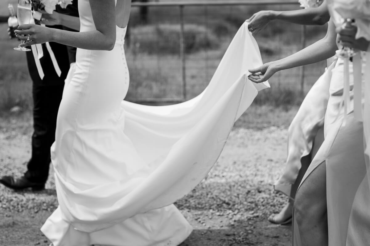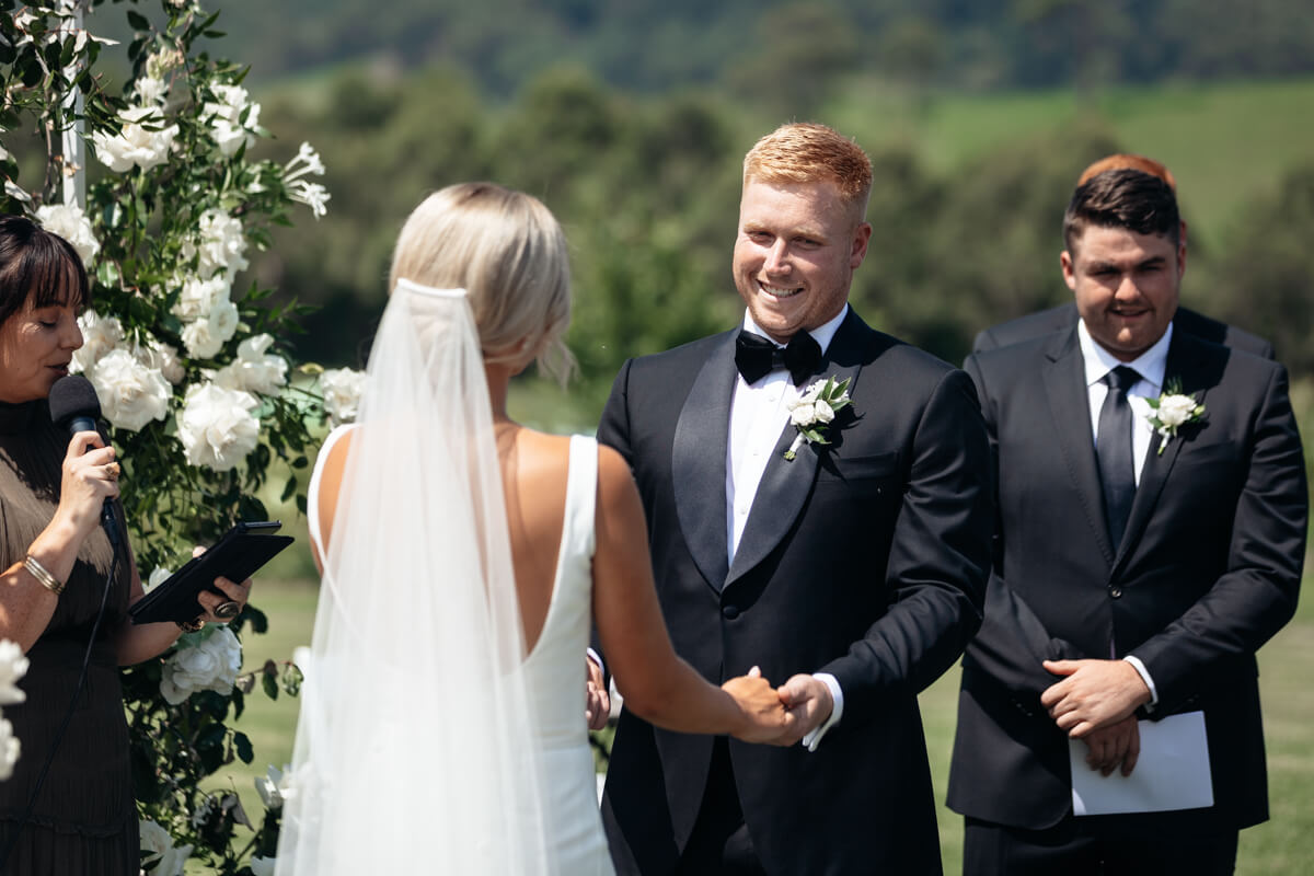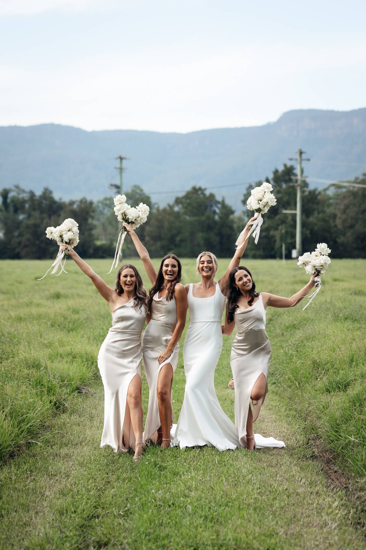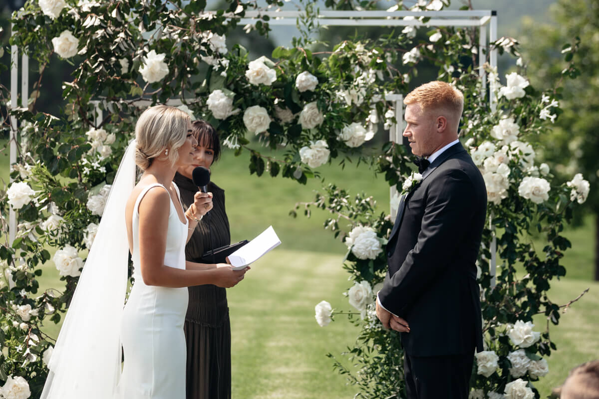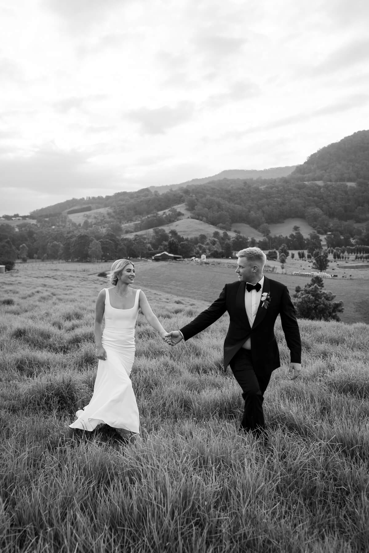One of the defining features of a Kangaroo Valley wedding is the landscape itself. At Melross Farm, ceremonies typically take place overlooking wide-open paddocks framed by dramatic mountain backdrops. There’s a stillness to the valley that’s hard to describe until you experience it. No traffic noise, no distractions, just open air, birdsong, and that soft golden light the region is known for. It creates a ceremony that feels grounded and intentional, without needing to be over-styled.