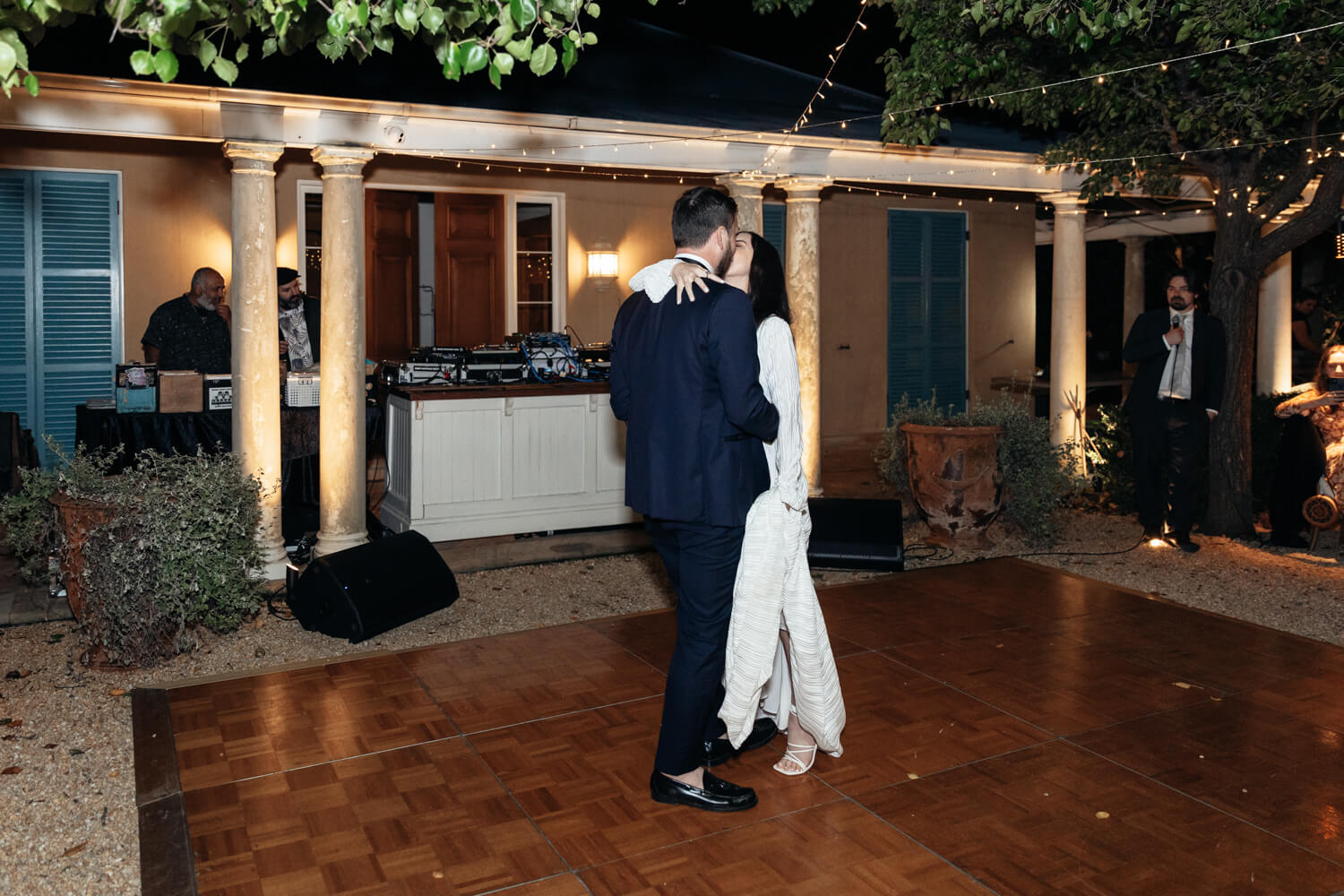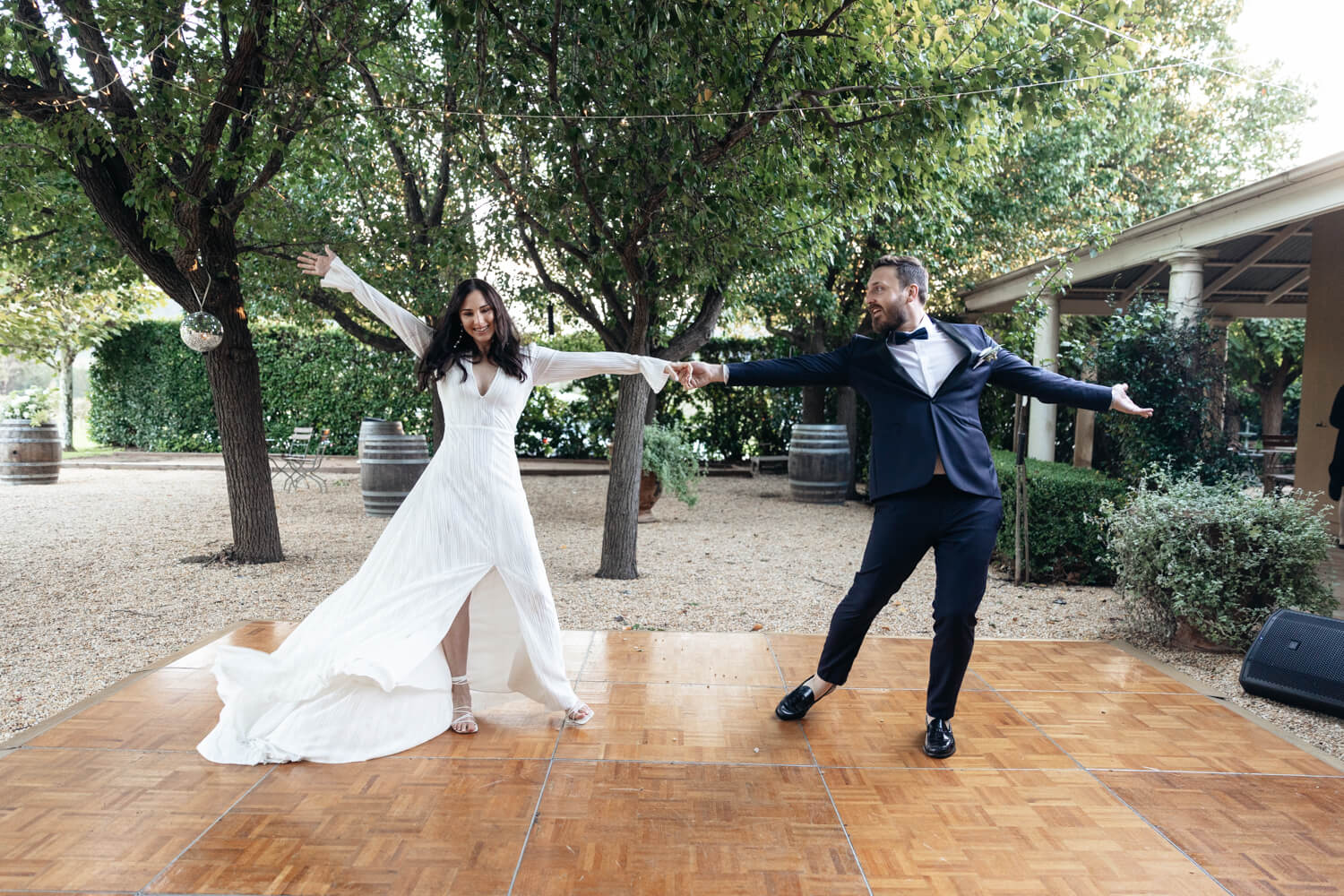 Why did you select Krinklewood Vineyard for your wedding?: We loved the pebble courtyard and the relaxed, french provincial vibe. Their wine is super delish and we were sold as soon as we saw the disco balls at the end of each vine.