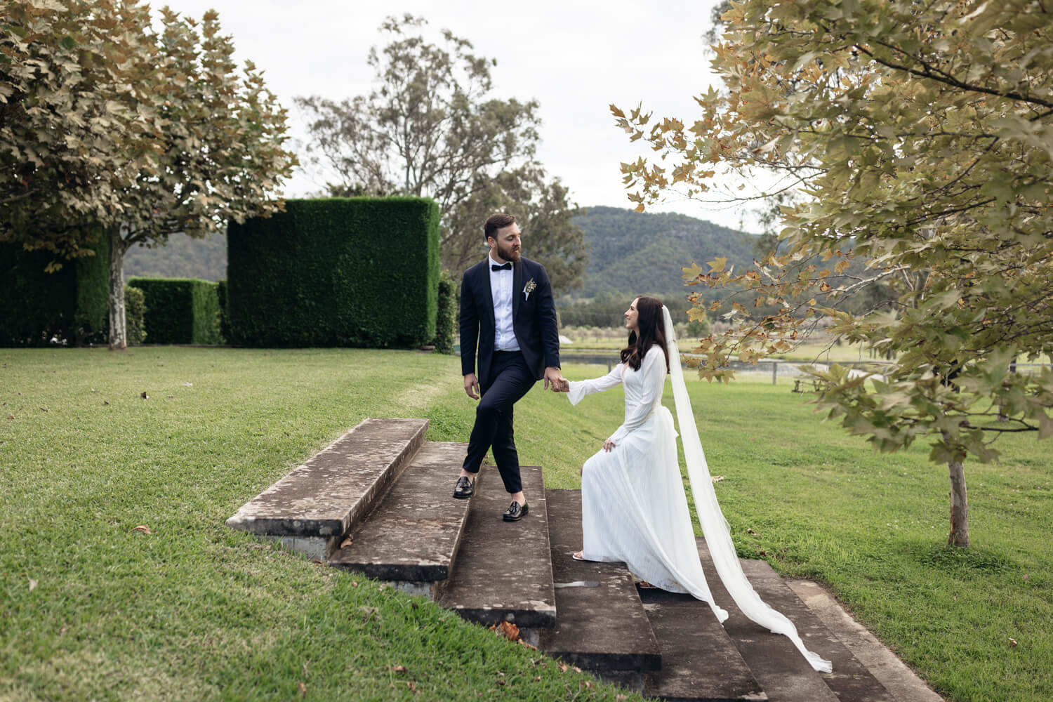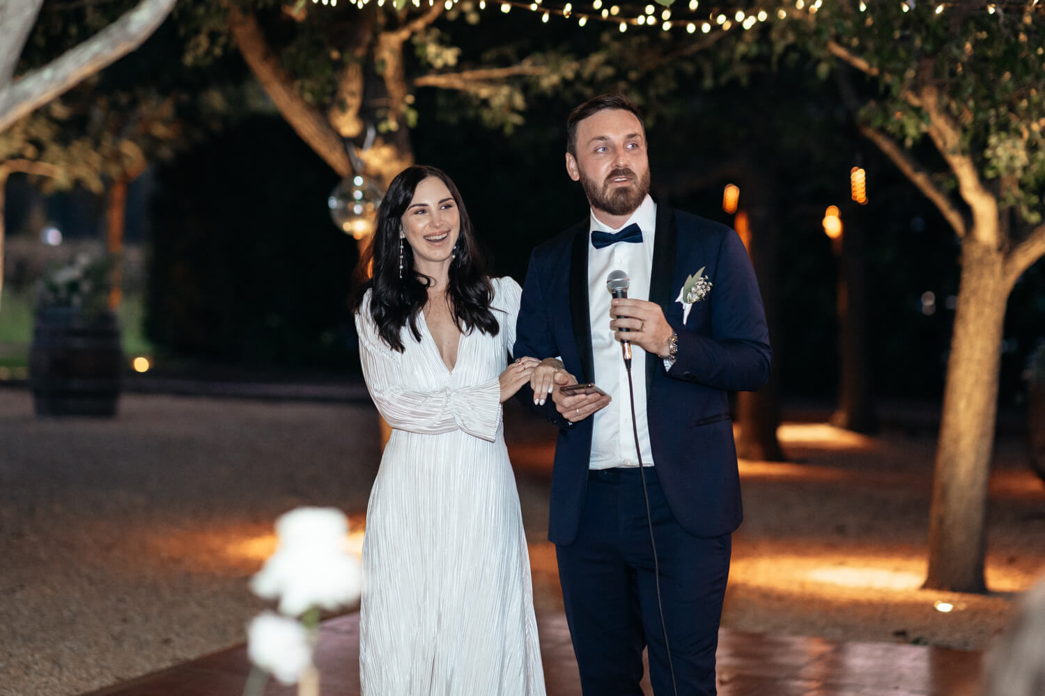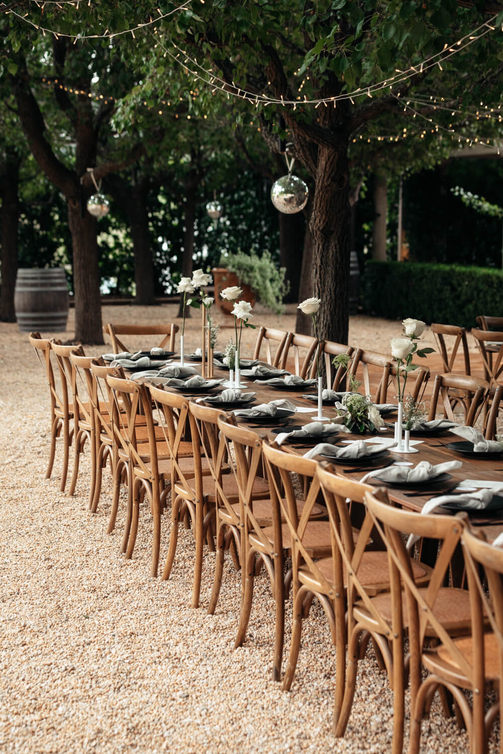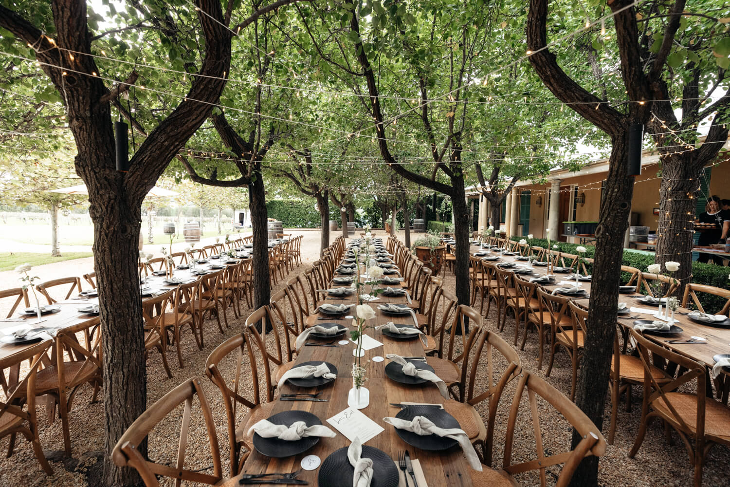Tell us a little about the vision you had for your wedding at Krinklewood Vineyard?: We were both keen to have a party with minimal formalities. Our ideal would be for the whole day to be outdoors (weather permitting) so we can dance the night away under the stars. We have kept the styling minimal, with the florals and fairy lights at Krinklewood Vineyard the main decor.