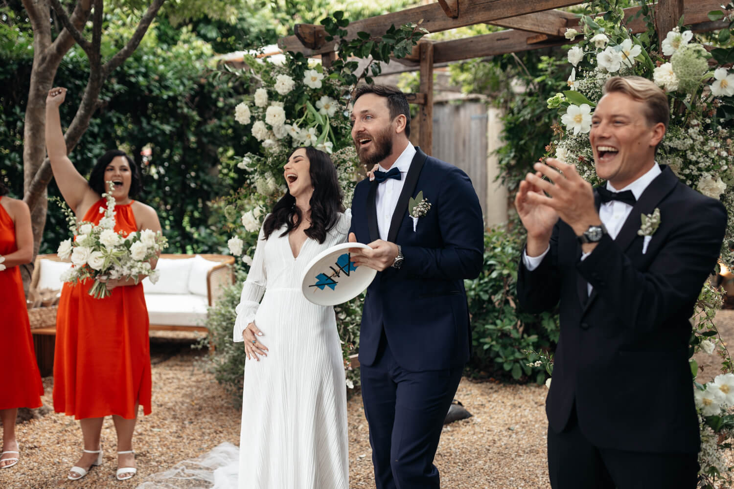 Venue: Krinklewood Vineyard | Celebrant: Amy Webster | Make-up artist: Samantha Lee | Floral designer: Steph Brell at Wild Jannali | Cake designer: Simi at Treat Me Bakery | DJ: Papa Disquo Records | Bride’s dress: Newhite | Brides ring designer: Grew & Co & Baby Anything
