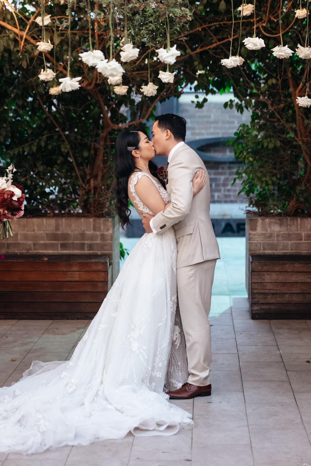 Why did you select Linseed House in The Grounds Of Alexandria for your wedding?: Linseed House appealed to us because of it’s natural, raw, rustic charm. I love the expanse of the high ceilings, the glamour of the chandaliers, the rustic exposed brick, the whimsical and magical feel of the fairy lights canopies & The Grounds itself, and the natural and overwhelming greenery, pottery and florals around the place. Their inhouse florists, chefs, and design teams are amazing so it has been incredibly stress-free working with them. It also catered to our needs with regards to capacity, menu, and financially.