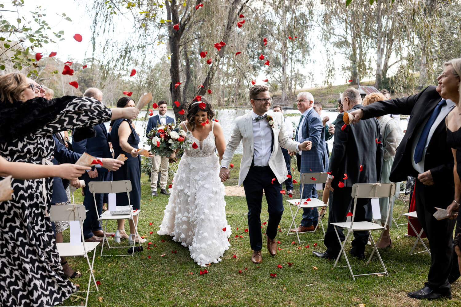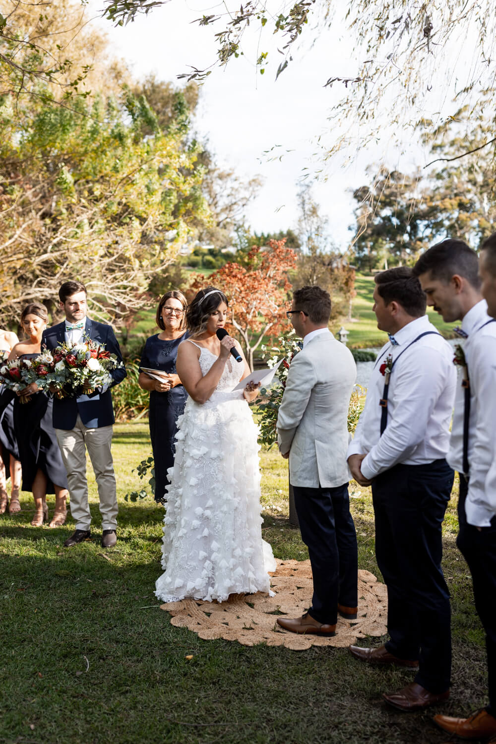 Venue: Mali Brae Farm | Celebrant: Tracey Tomkins Celebrant | Make-up artist: Monique Lawler Makeup | Hair stylist: Hair by Mikaelah | Floral designer: Blush and Blooms Floral Studio | Cake designer: Two Birds Bakery | Live music & DJ: Jack Willis Music | Bride’s dress: Brides in Love | Bride’s shoes: Sophia Webster & Loeffler Randall | Ring designer: Cerrone | Bridesmaid dresses: Esther and Co. | Groom & groomsmen suit: Country Road | Groom’s accessories: Peggy and Finn | Invitation designer: Vistaprint | Caterer: Mali Brae Farm