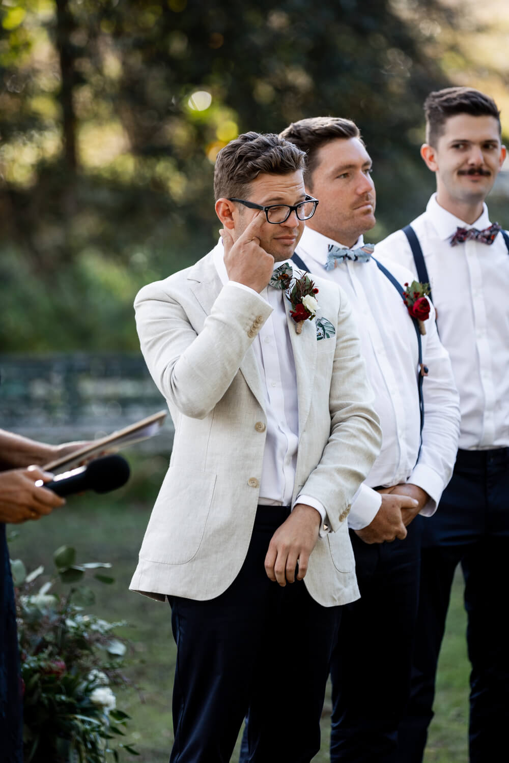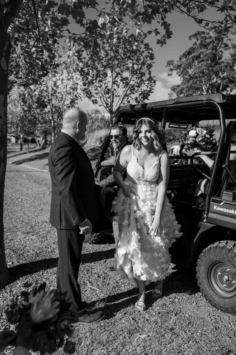 How did the proposal take place that lead to your Mali Brae farm wedding?: Dylan was being a big weirdo. We had a few days planned away down the coast and he insisted on taking his dad’s 4WD. What I didn’t know at the time was that the ring was in the car. So we ended up getting into an argument because I wouldn’t organise to swap cars with his dad because it made no logical sense. In the end Dylan swapped cars himself and we headed down. About 30 seconds after we arrived in Mollymook he dropped the knee and asked. I didn’t actually say yes, I said are you ***ing kidding me. Not my finest moment.