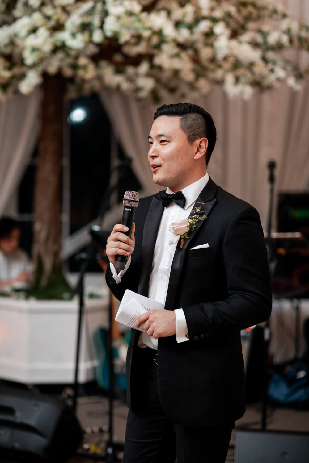 The Venue: “We wanted our wedding to be inside a marquee and at a venue that had both outdoor and indoor elements. We originally had looked at the Hunter Valley, but most venues in the Hunter were booked out. Being recommended this venue, we found that Parklands Country & Garden’s had a gorgeous marquee. We both instantly fell in love with the venue when we went for inspection and loved how it was surrounded by lush greenery. We’re both from the city so I think we felt that the venue was a perfect escape for our wedding – making it that more special.”