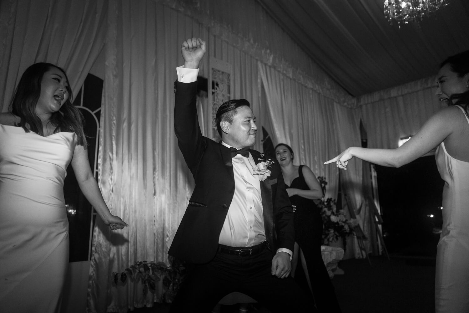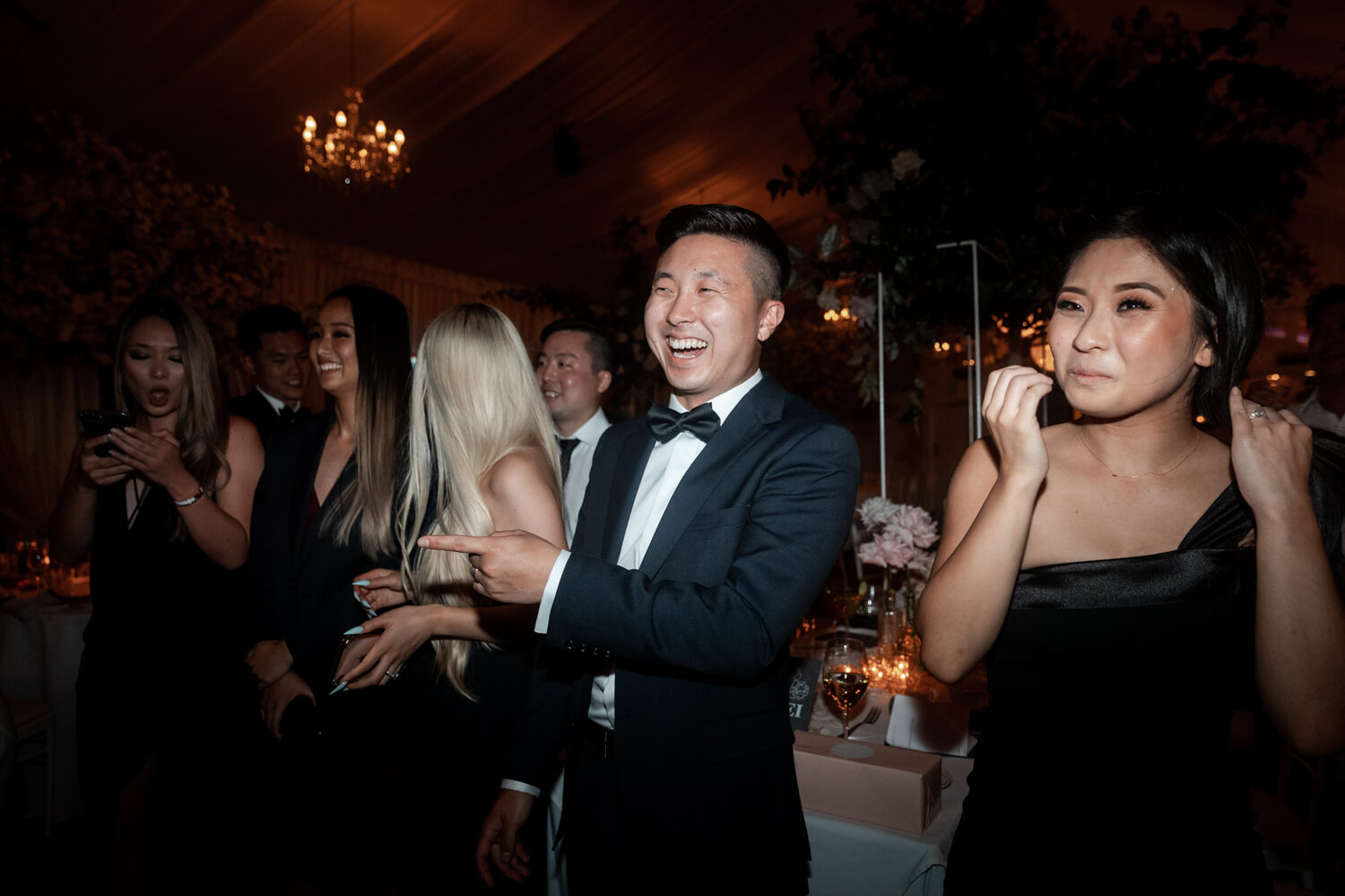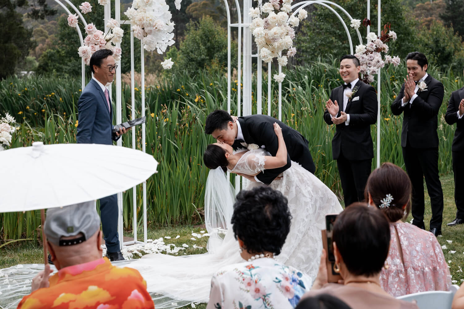 Venue: Parklands Country Garden and Lodges | Hair stylist: Carly Van Der Meer | Floral designer: SHE Designs | Videographer: CloudHerd Film Co | Cake designer: Sincerely Sam Cakes | Live Music & DJ: Baker Boys Band | Bride’s dress: Pallas Collective | Bride’s shoes: Saint Laurent | Rings: Tiffany and Co. | Bridesmaid dresses: White Runway | Groom suit: Tom Ford | Groomsmen suits: Mr. Fierze | Invitation designer: Sara Sidari | Rentals: Ashdown & Bee