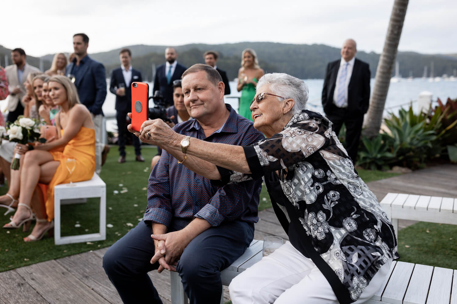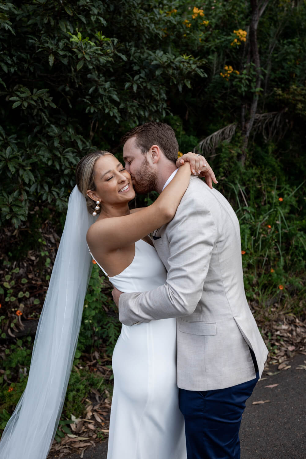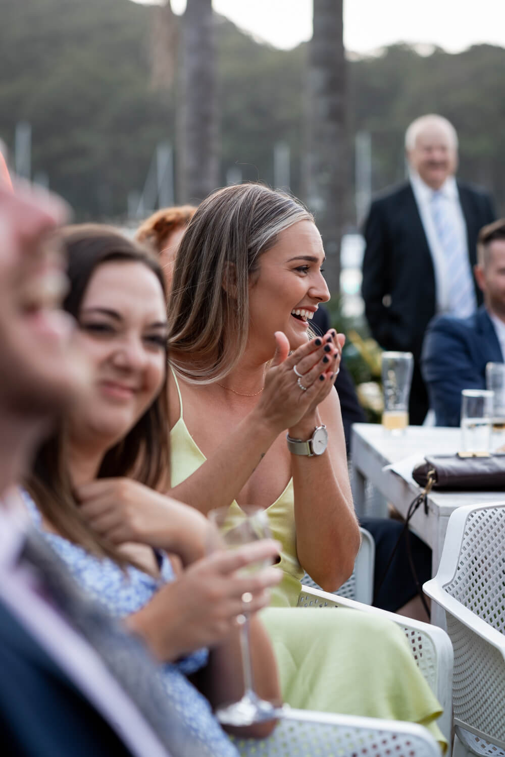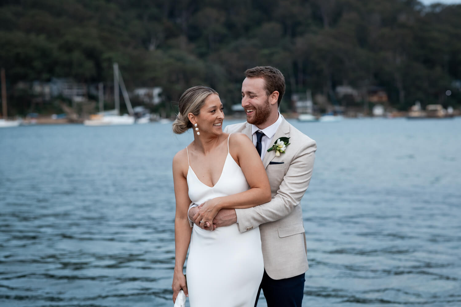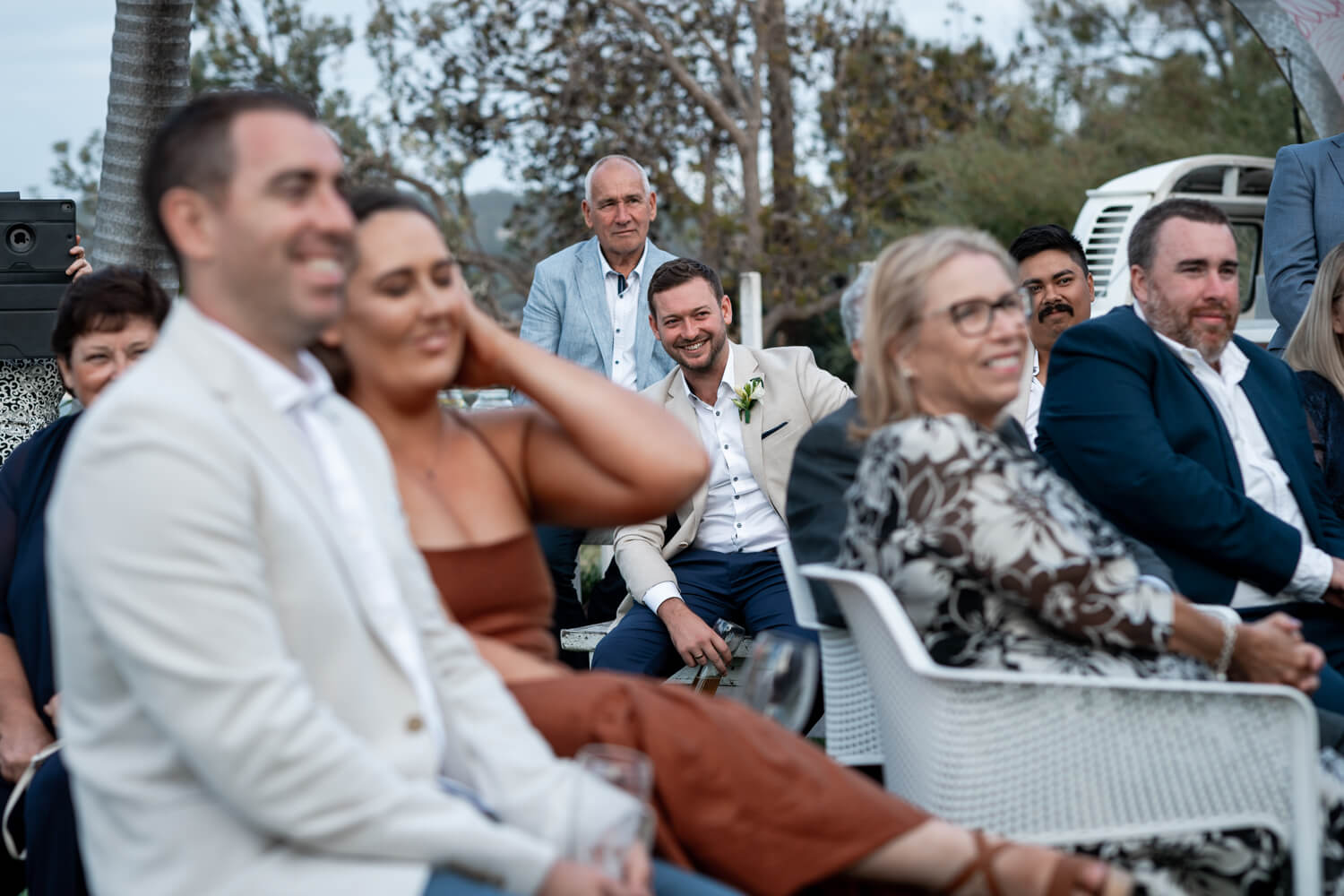 How did the proposal happen that lead to your Pasadena Wedding at Church Point?: Michael tried to take me on a 2hr hike. He turned up wearing boat shoes and a linen button up shirt (supposedly coming straight from work). I declined the 2hr hike idea as I thought his footwear and clothes were not suitable (little did I know he planned to only walk the first 15 mins of the hike). Because I declined, he then had to revert to PLAN B. Which ended up being a small picnic with drinks atop a rock platform which over looked the entire beach! He had then planned our whole family to come over and celebrate after the proposal!