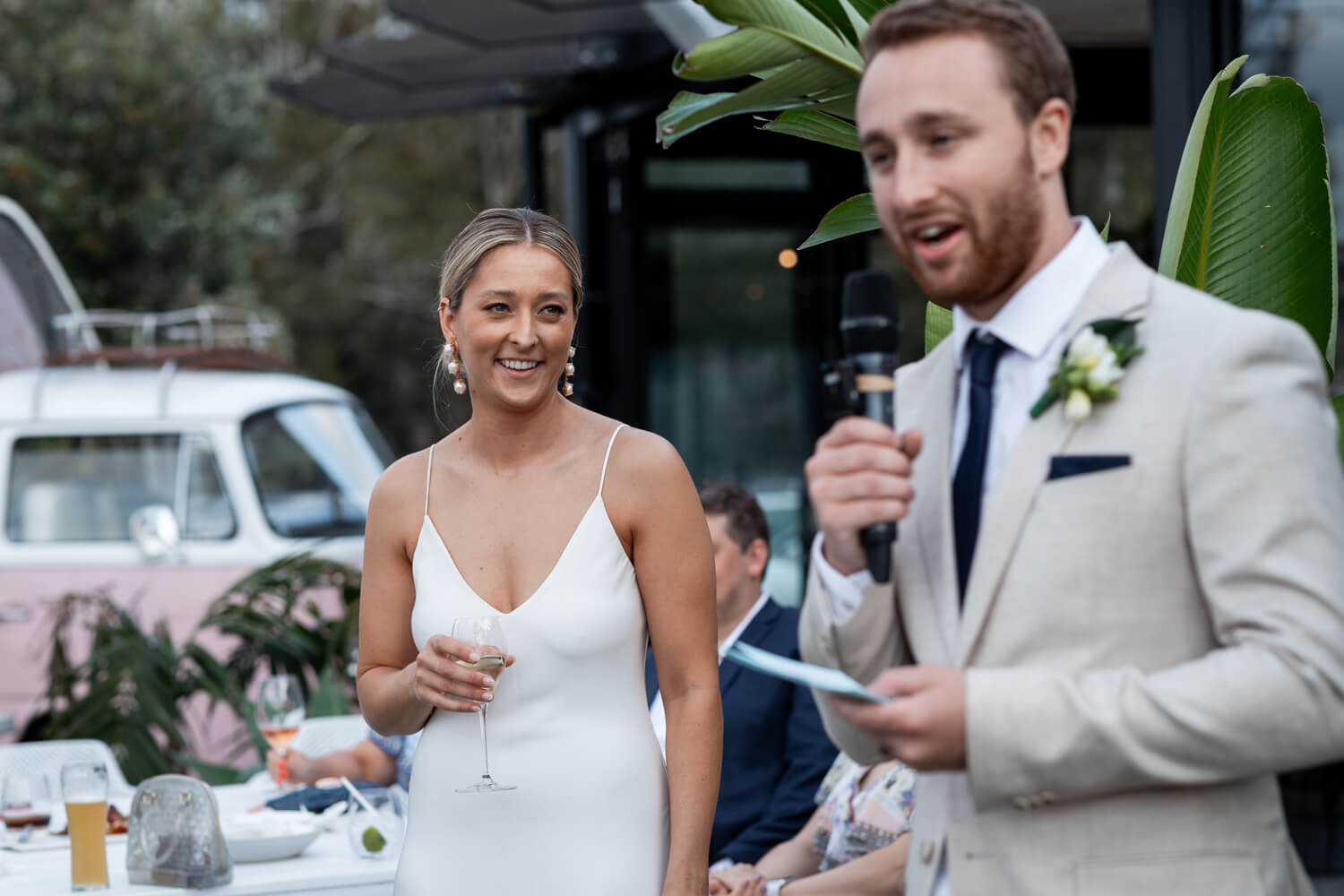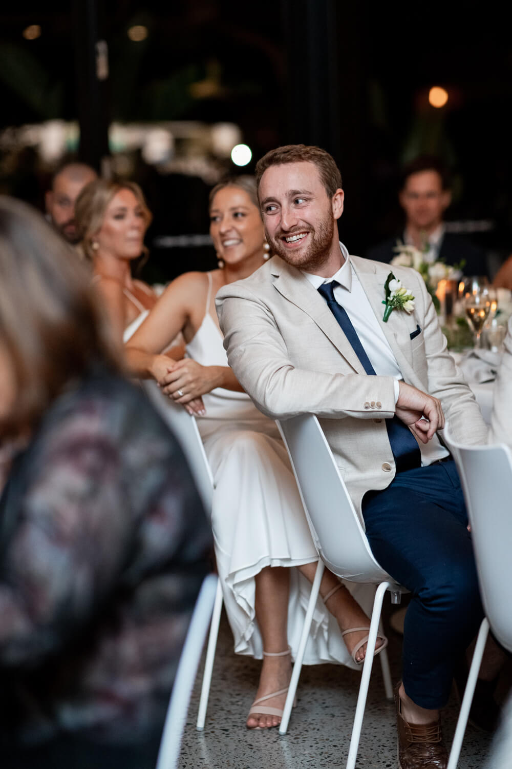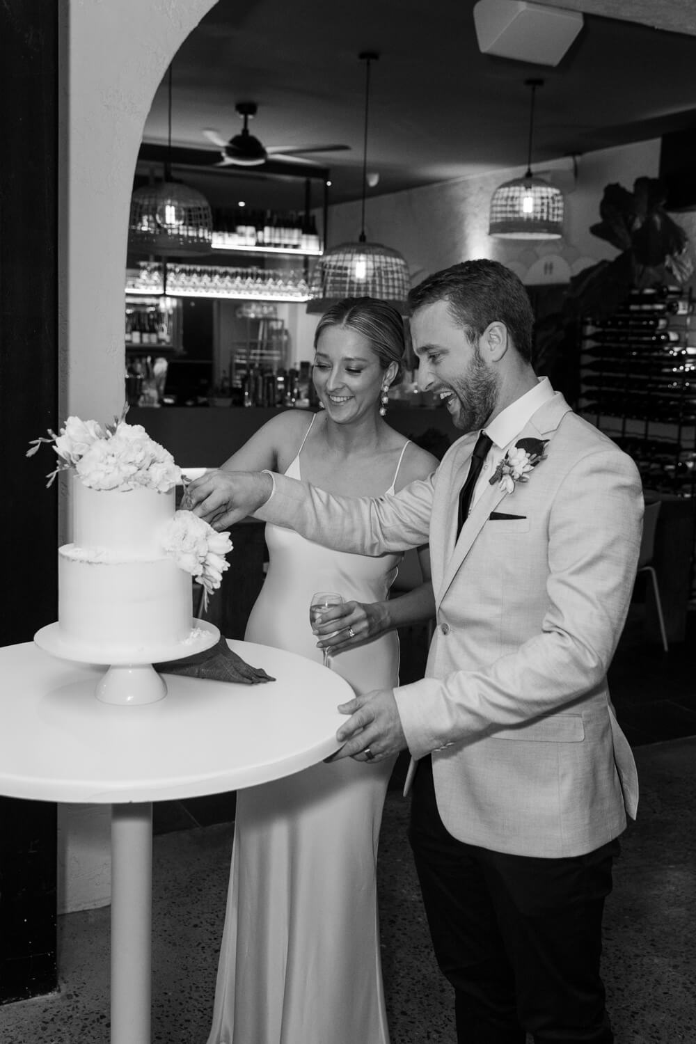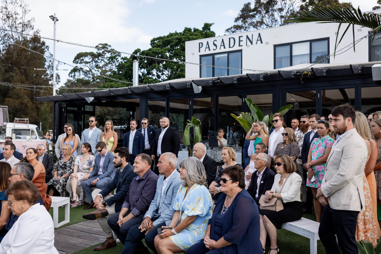 Venue: Pasadena | Celebrant: Claire Belford | Hair & make-up artist: Shelley Lia | Floral designer: The Faux Fernery & Wild Lotus | Cake designer: By Gigi | Live Music & DJ: Stevie Lee Music | Bride’s dress: Grace Loves Lace | Rings: Grew & Co & Baby Anything | Bridesmaid dresses: Bec & Bridge | Groom & Groomsmen’s suit: Politix