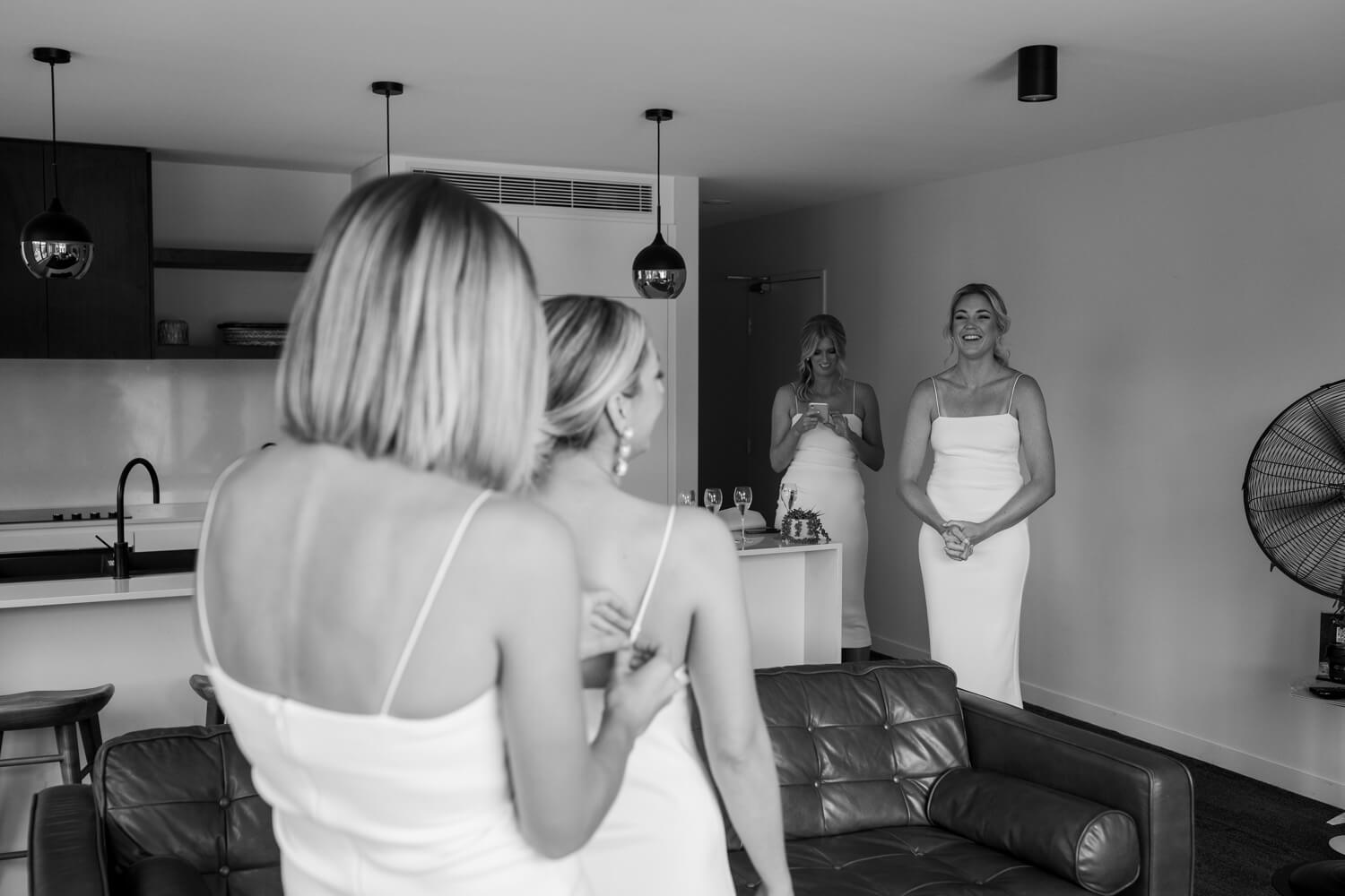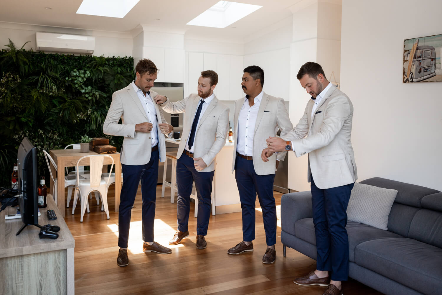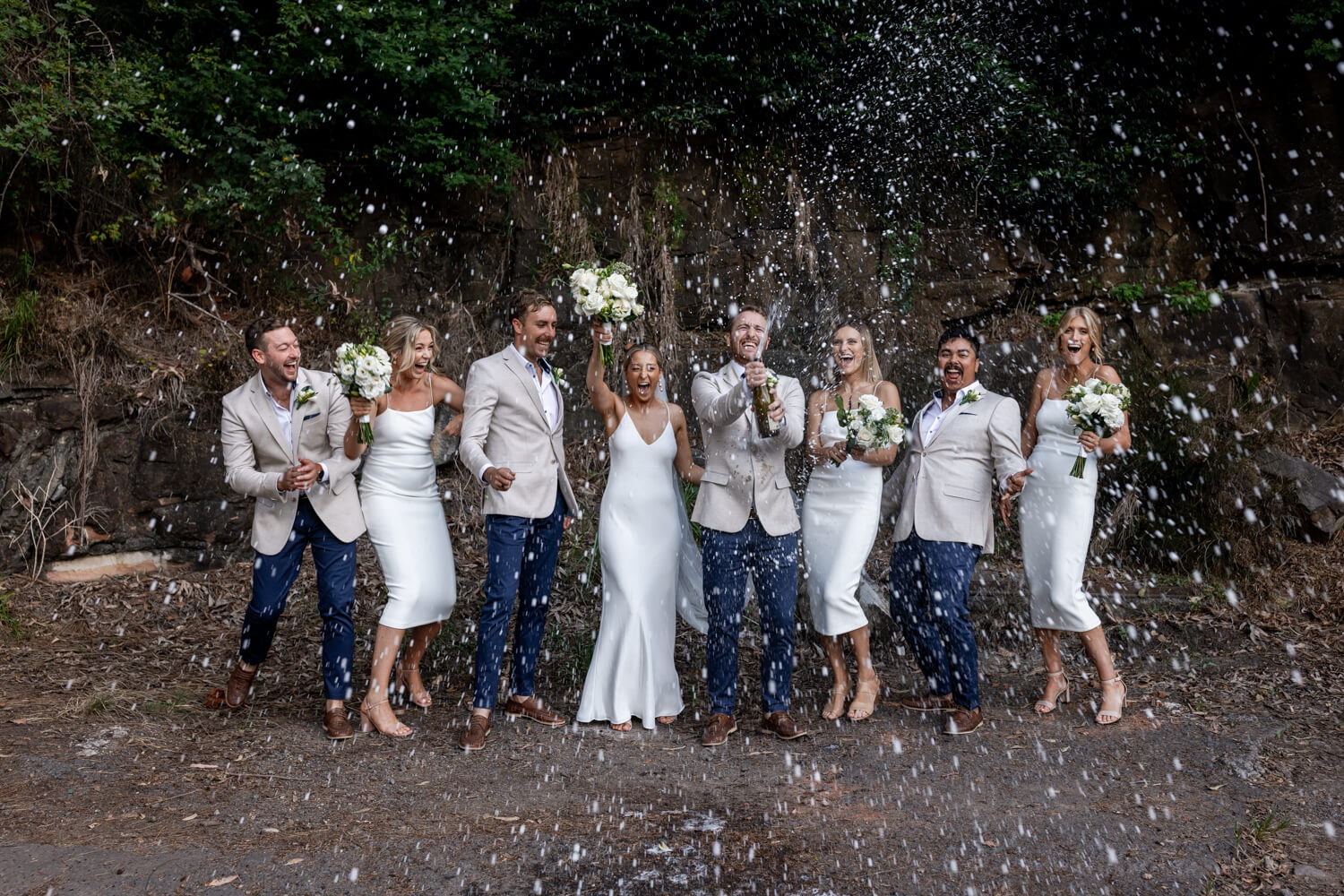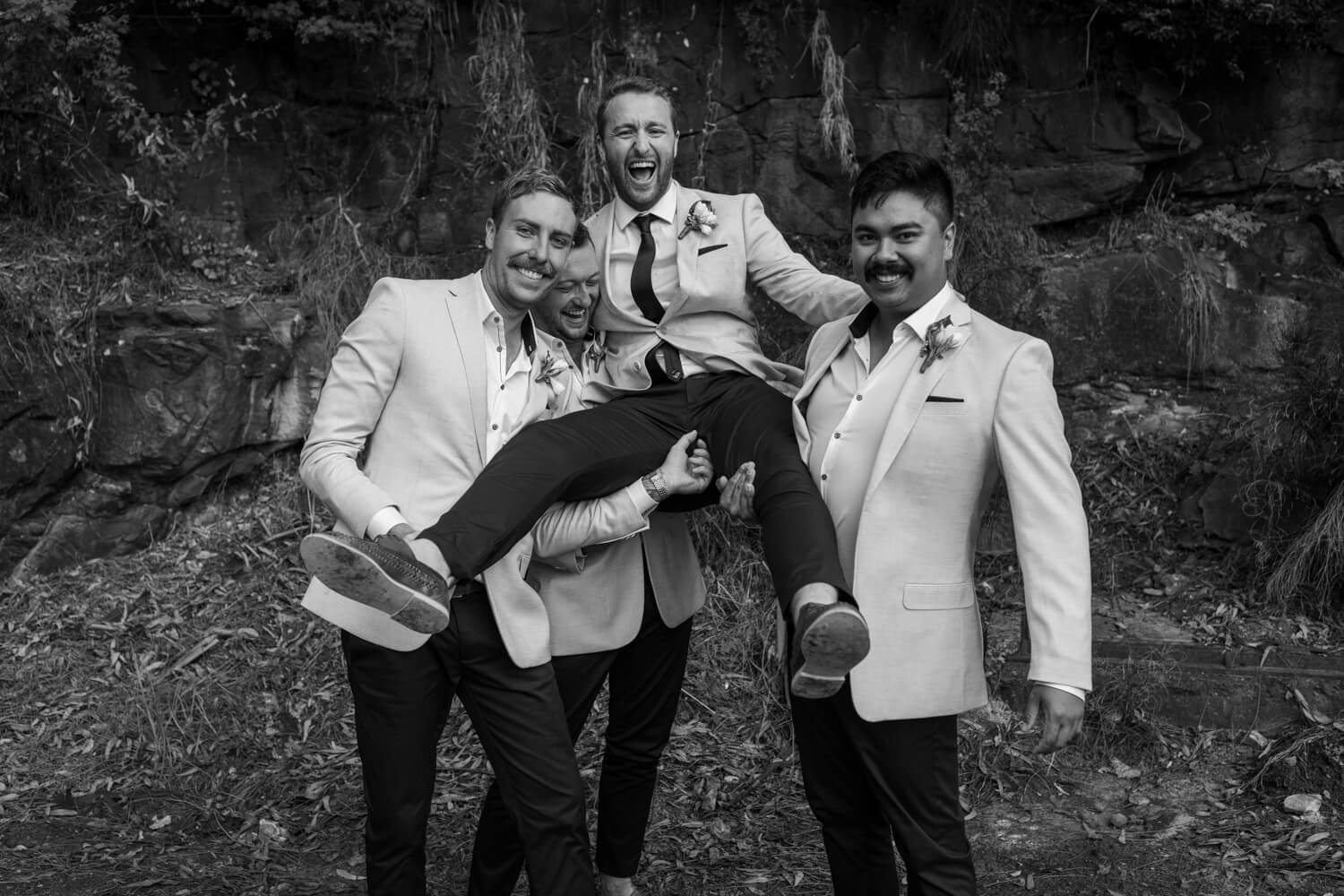 Venue: Pasadena | Celebrant: Claire Belford | Hair & make-up artist: Shelley Lia | Floral designer: The Faux Fernery & Wild Lotus | Cake designer: By Gigi | Live Music & DJ: Stevie Lee Music | Bride’s dress: Grace Loves Lace | Rings: Grew & Co & Baby Anything | Bridesmaid dresses: Bec & Bridge | Groom & Groomsmen’s suit: Politix