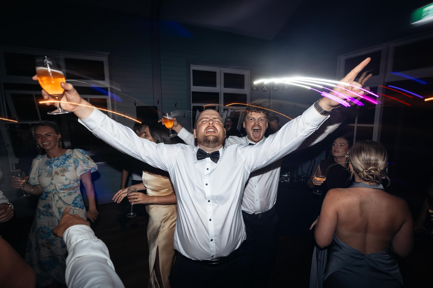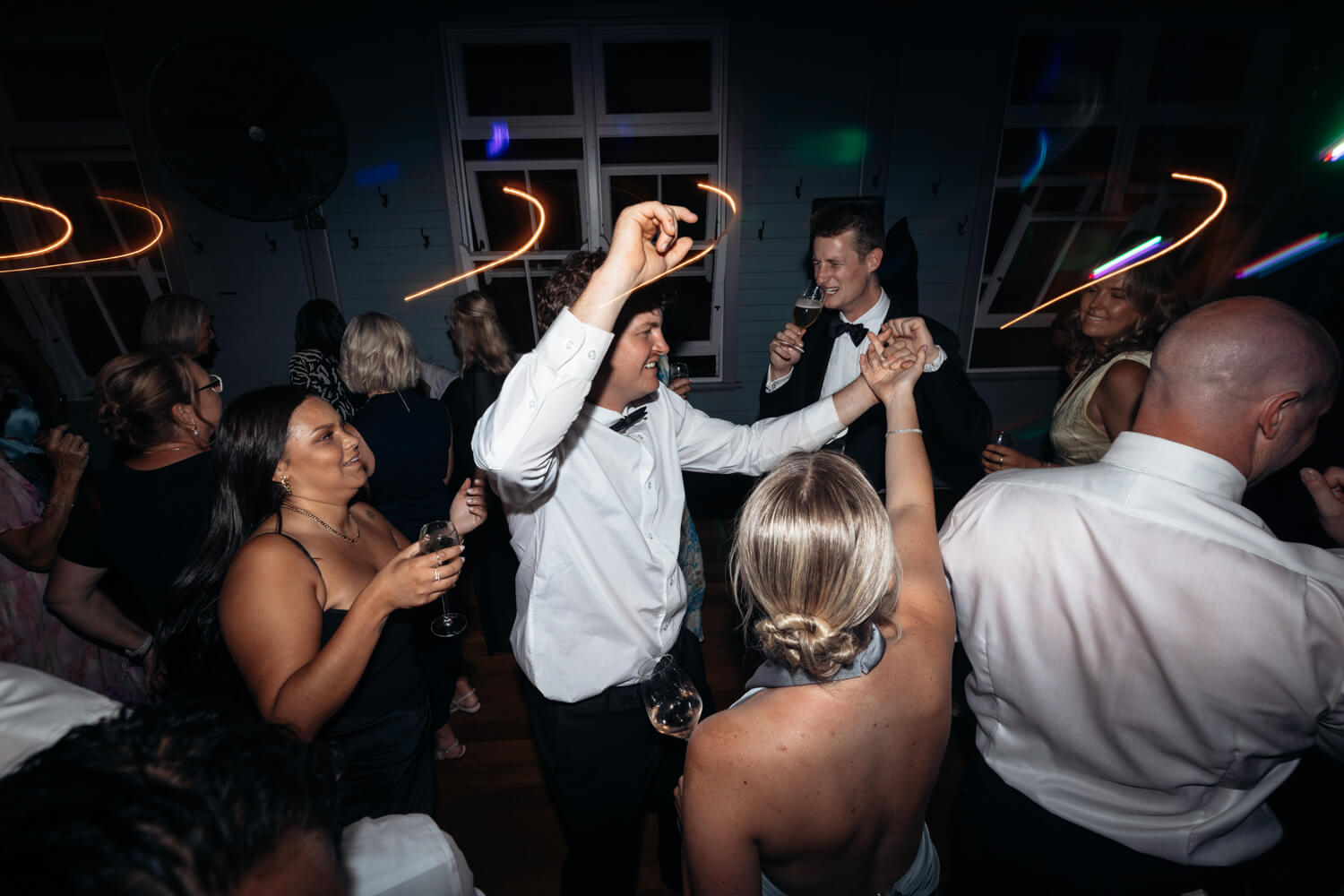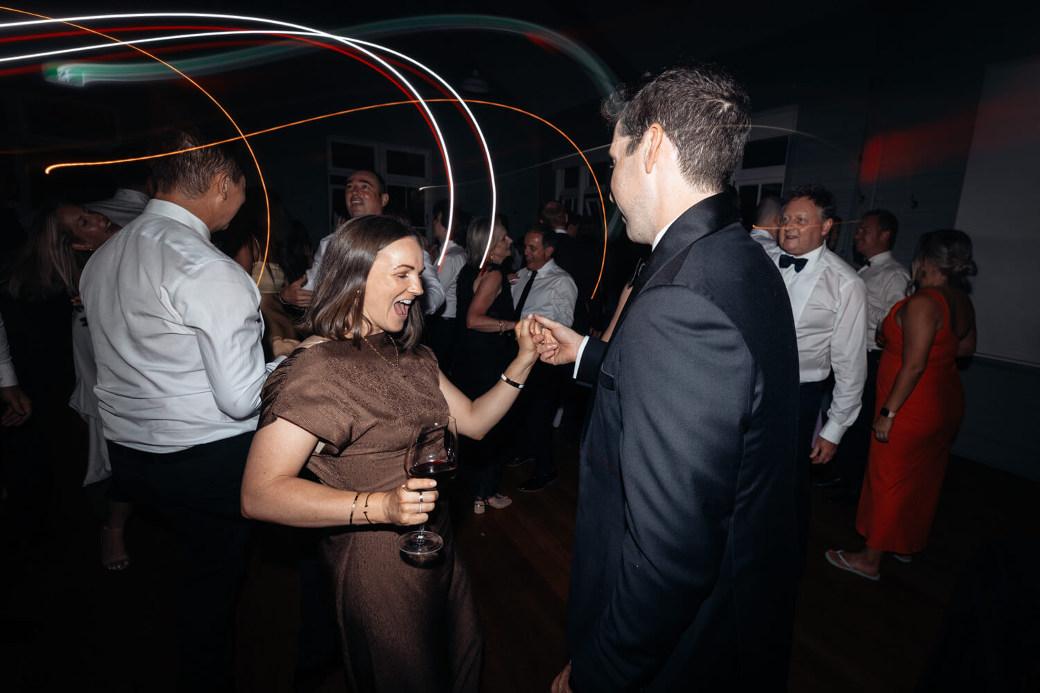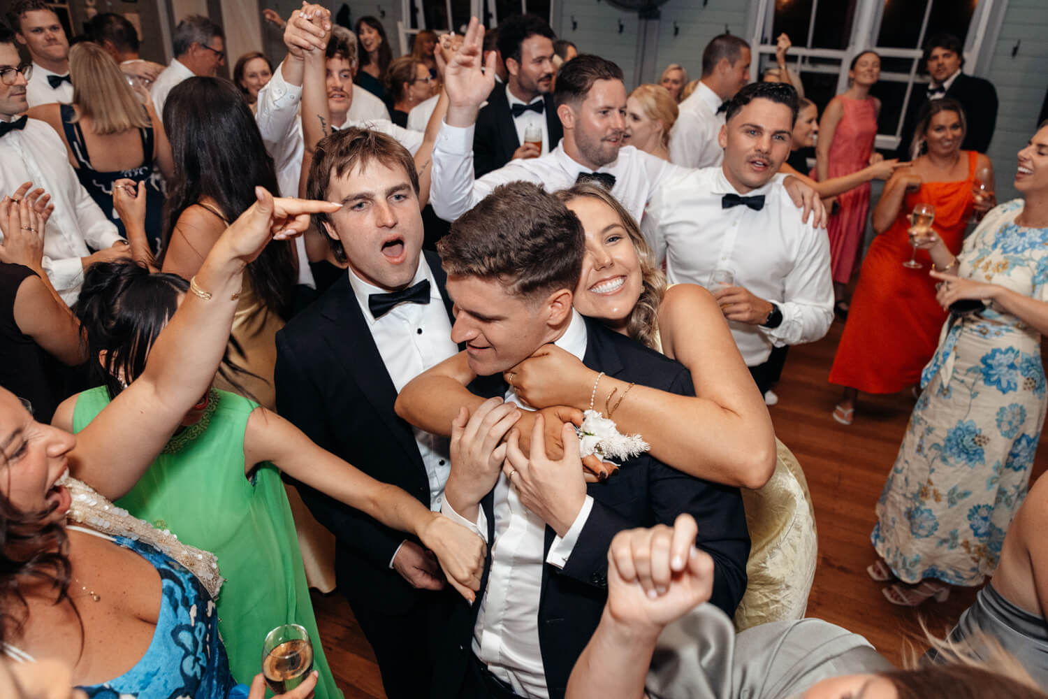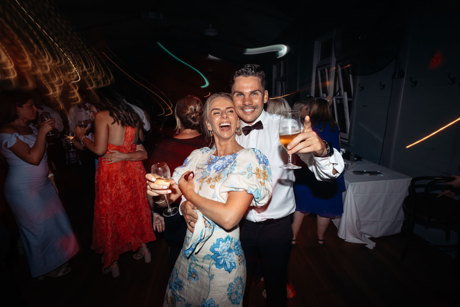 As the sun faded on their Q Station wedding in Manly, everyone came together for the reception. The speeches were heartfelt and hilarious, the food and wine flowed easily, and by the time the music started, the dance floor was packed. It was the kind of night where you could feel the energy in the room, full of laughter, movement, and celebration.