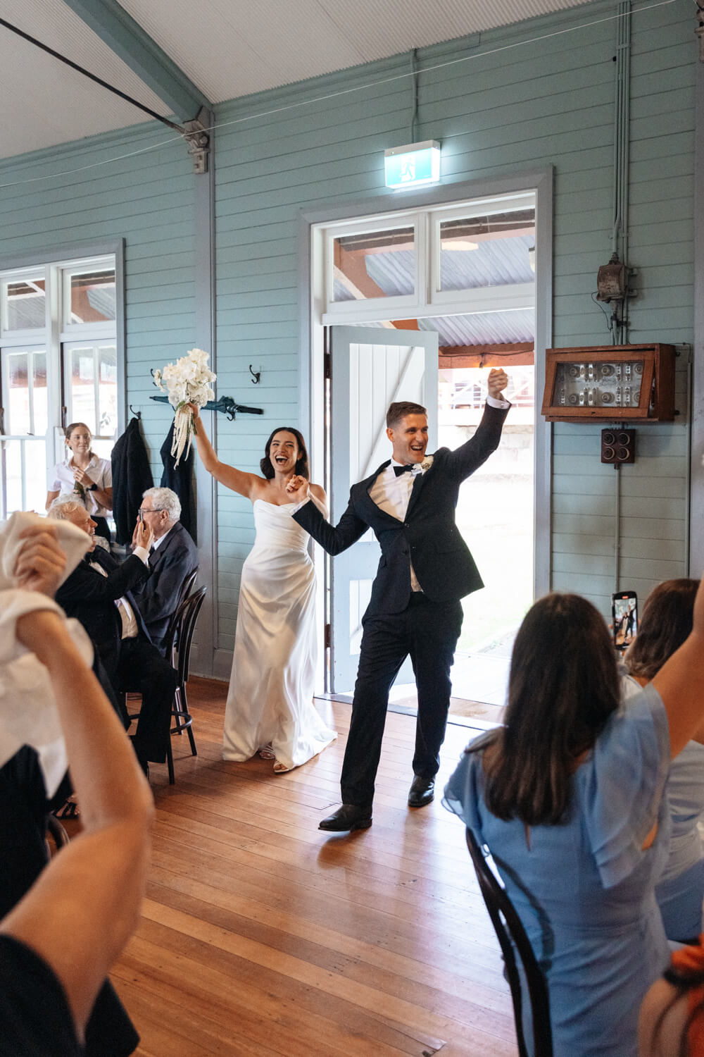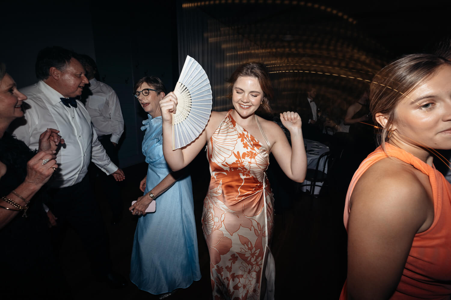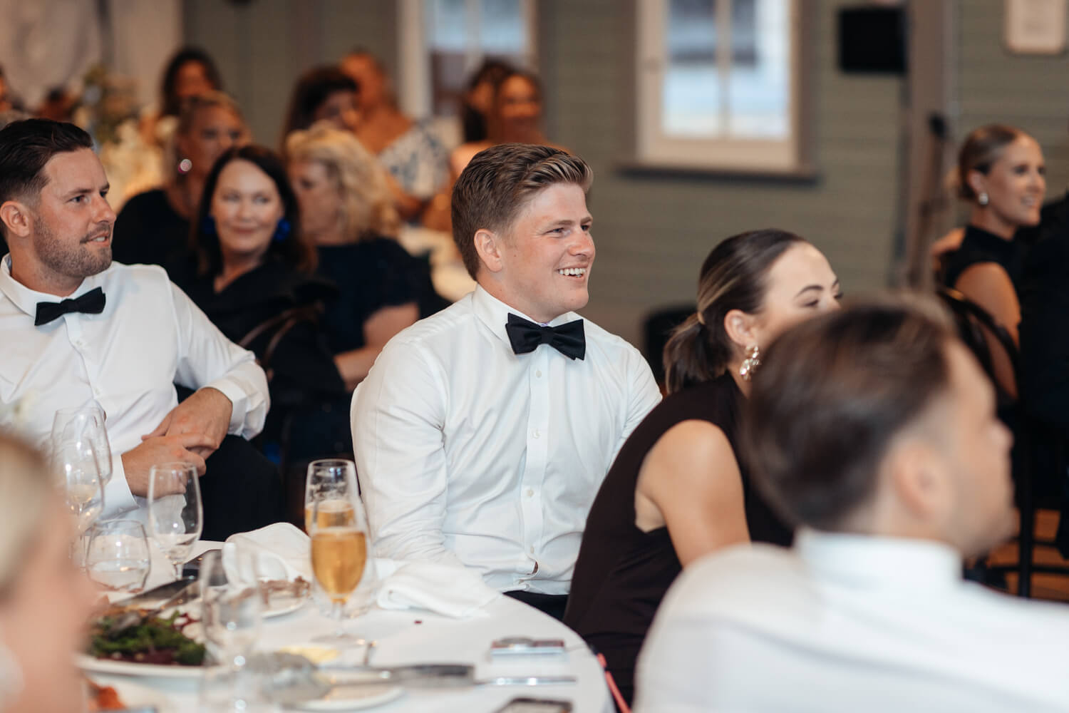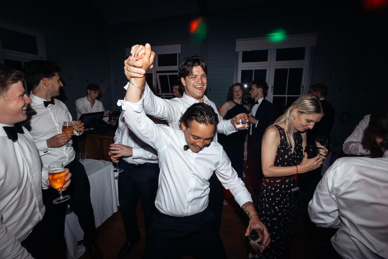 As the sun faded on their Q Station wedding in Manly, everyone came together for the reception. The speeches were heartfelt and hilarious, the food and wine flowed easily, and by the time the music started, the dance floor was packed. It was the kind of night where you could feel the energy in the room, full of laughter, movement, and celebration.