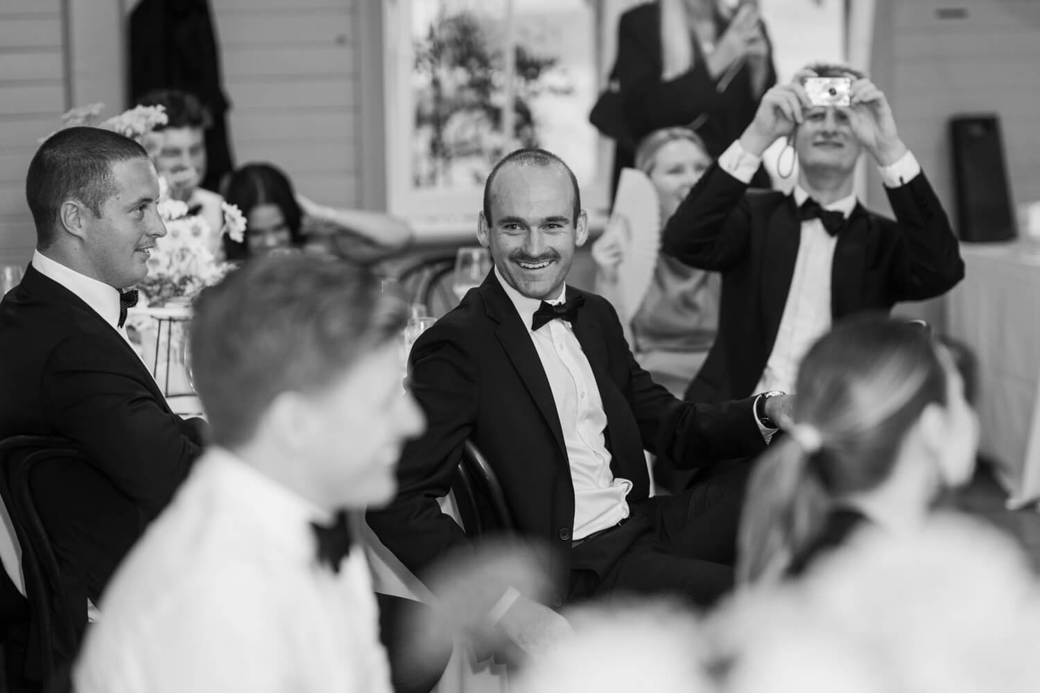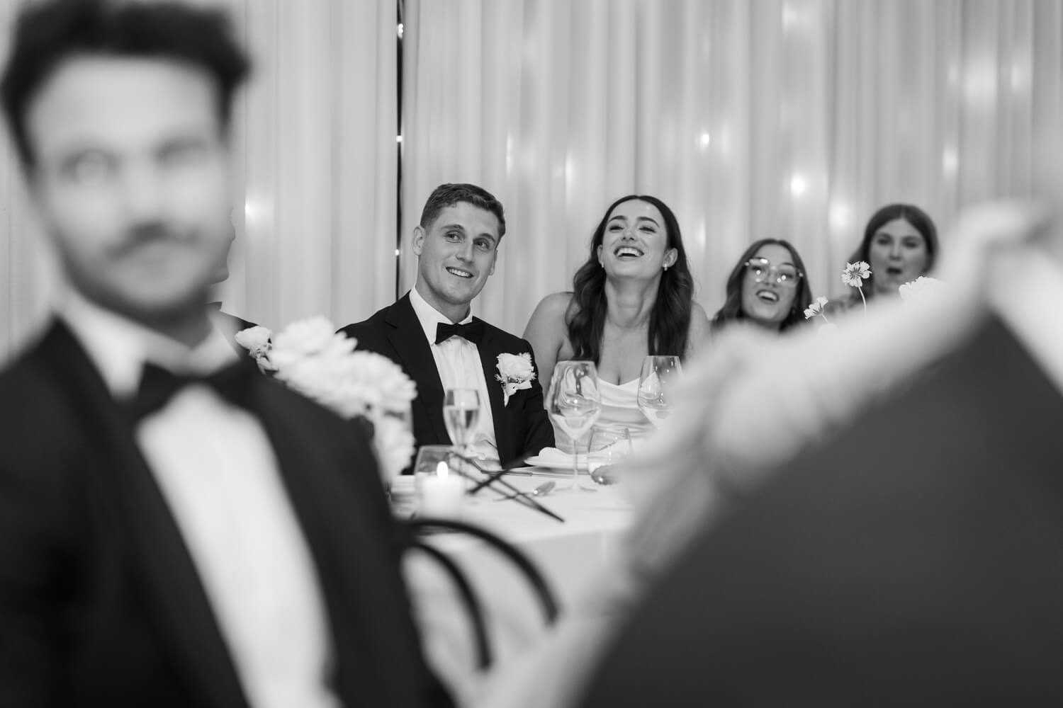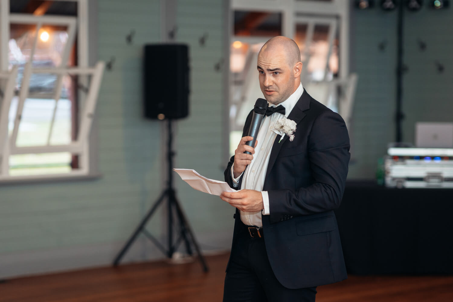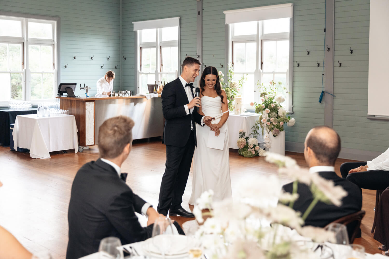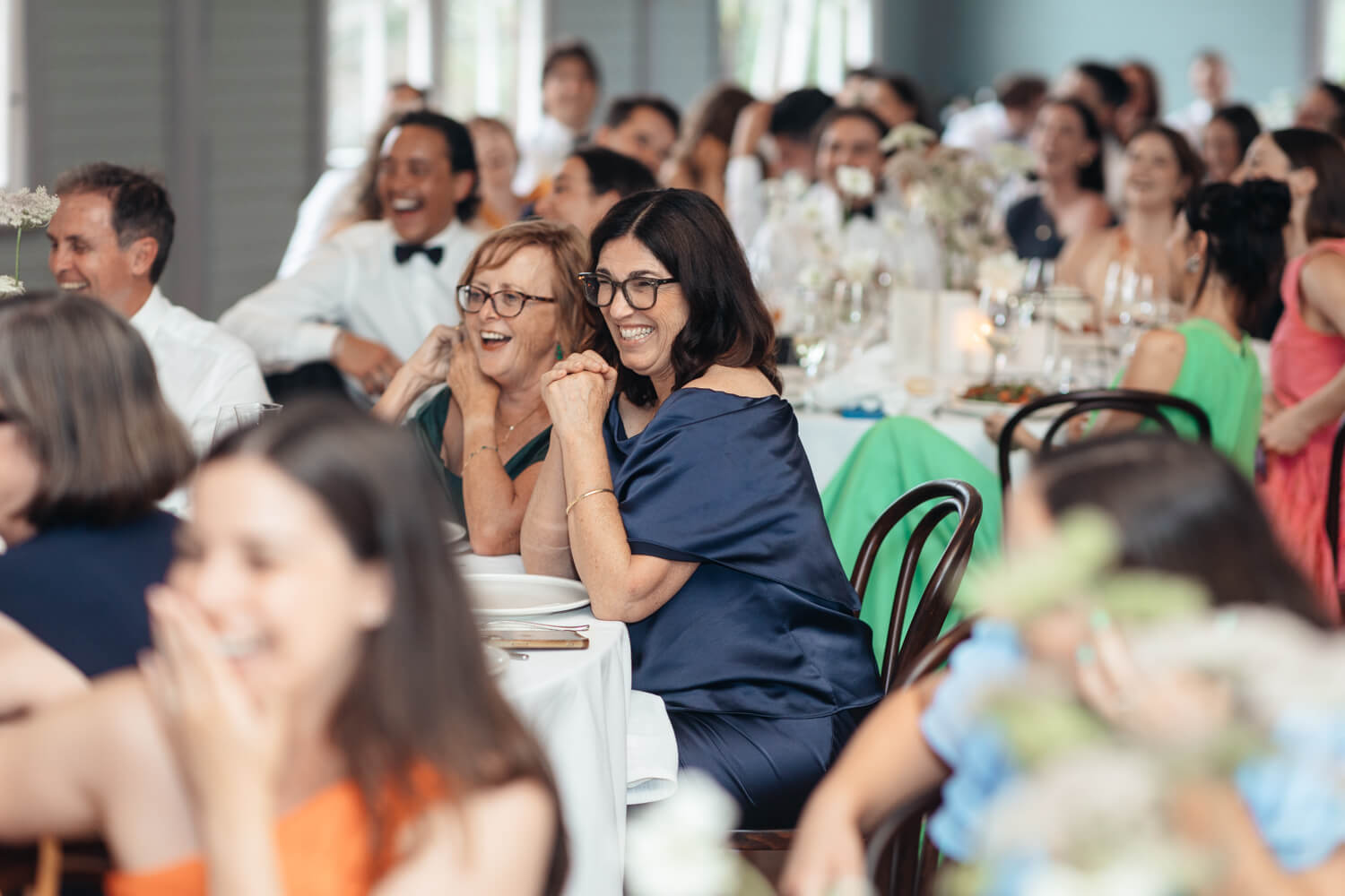 As the sun faded on their Q Station wedding in Manly, everyone came together for the reception. The speeches were heartfelt and hilarious, the food and wine flowed easily, and by the time the music started, the dance floor was packed. It was the kind of night where you could feel the energy in the room, full of laughter, movement, and celebration.