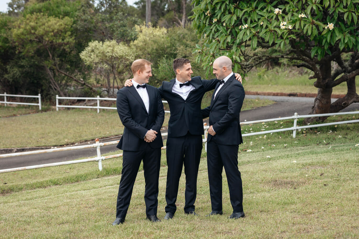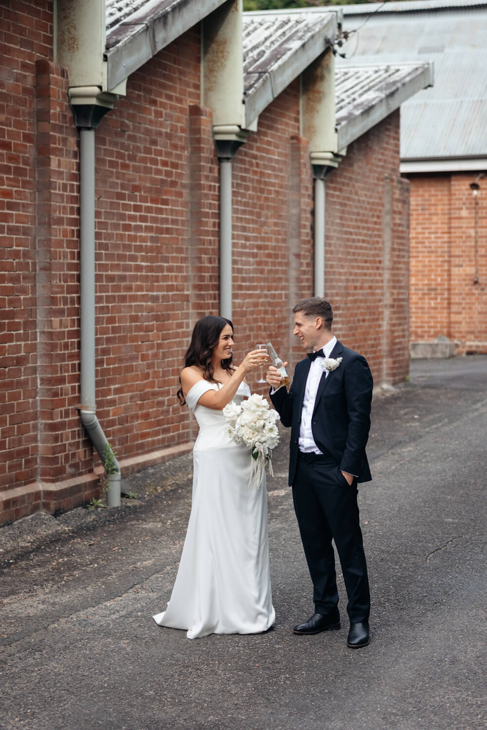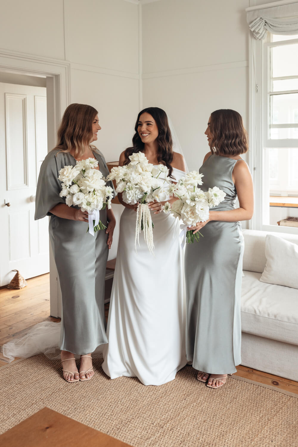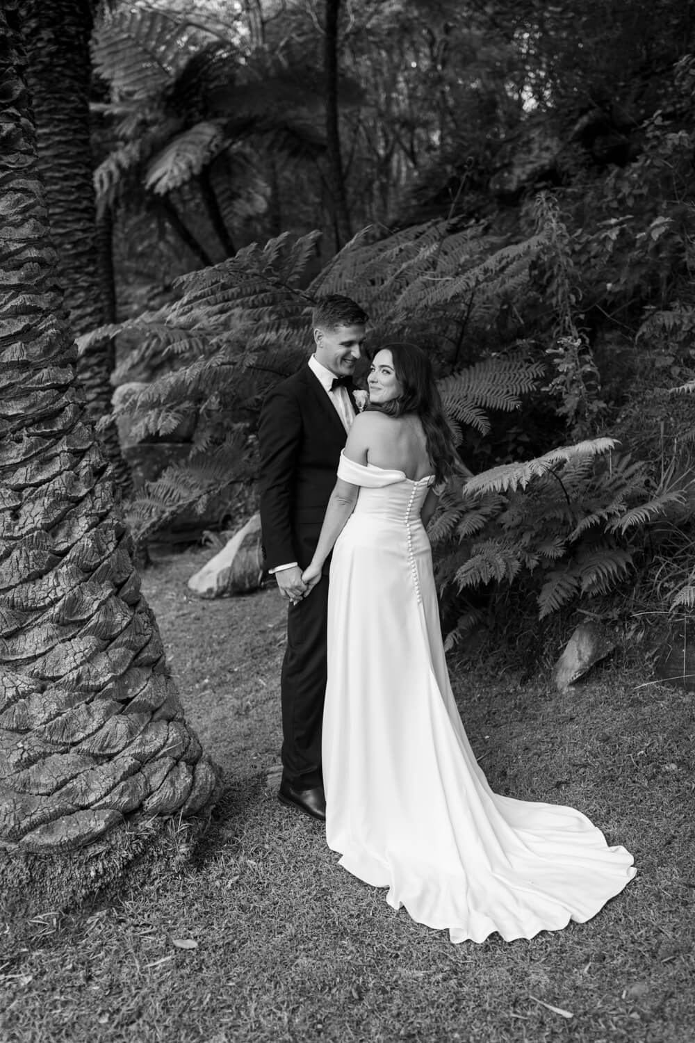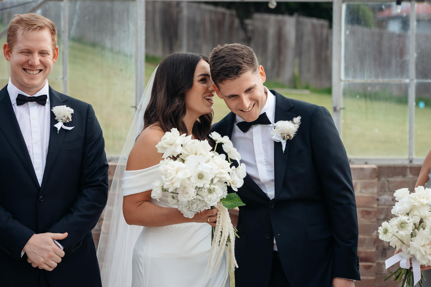 Afterwards, we wandered the grounds for photos. Q Station’s mix of lush greenery, waterfront jetties and heritage buildings gave us a few simple but striking backdrops, though what really stood out were the couple’s interactions with each other. They couldn’t stop smiling, sharing little jokes and moments of quiet connection. Their bridal party brought the energy too, making the portrait session light-hearted and fun, exactly how it should be.