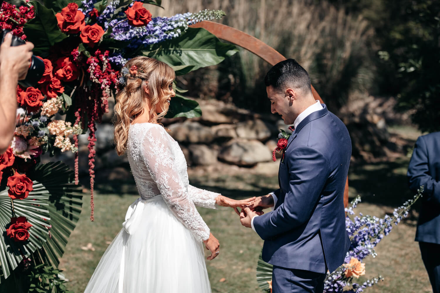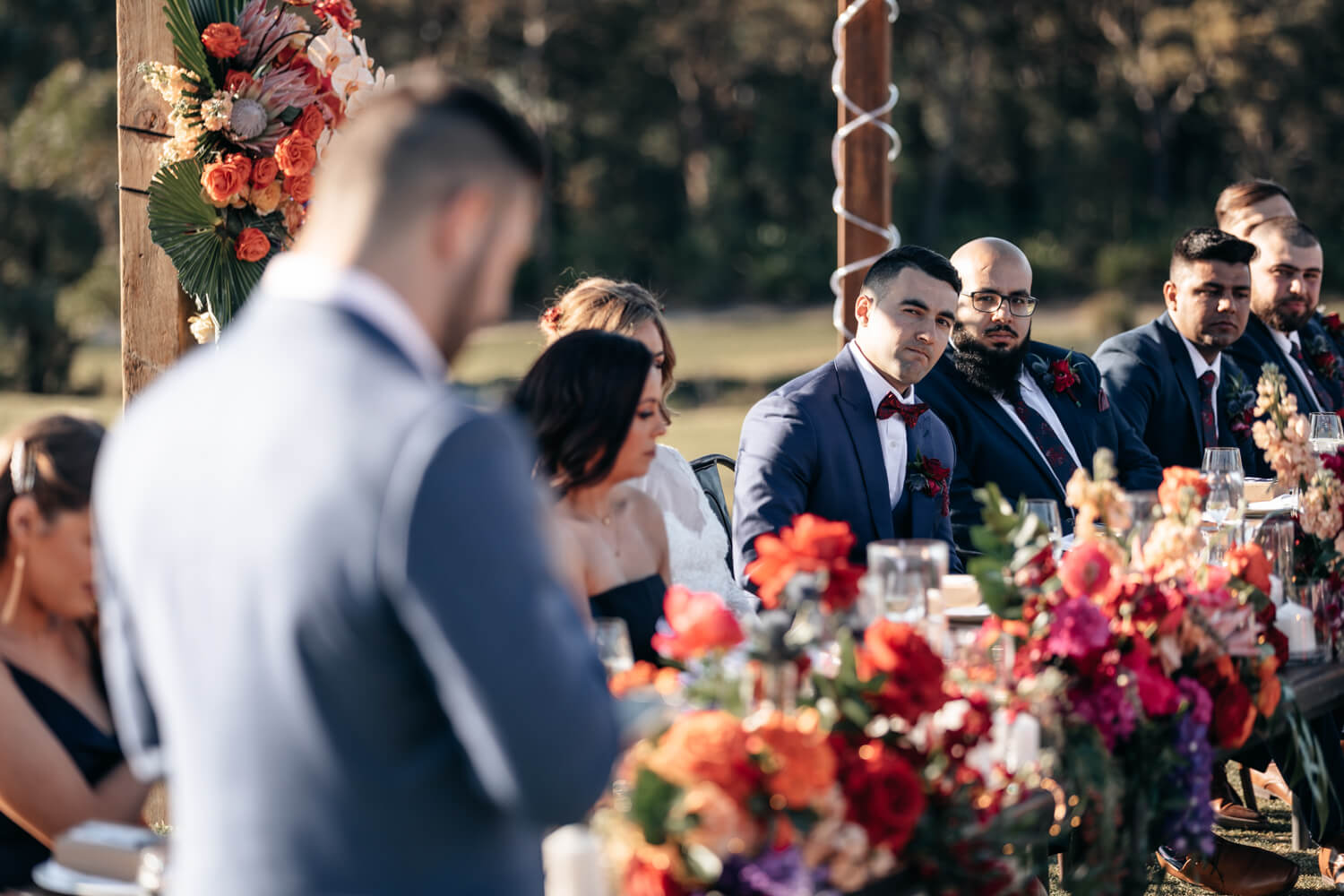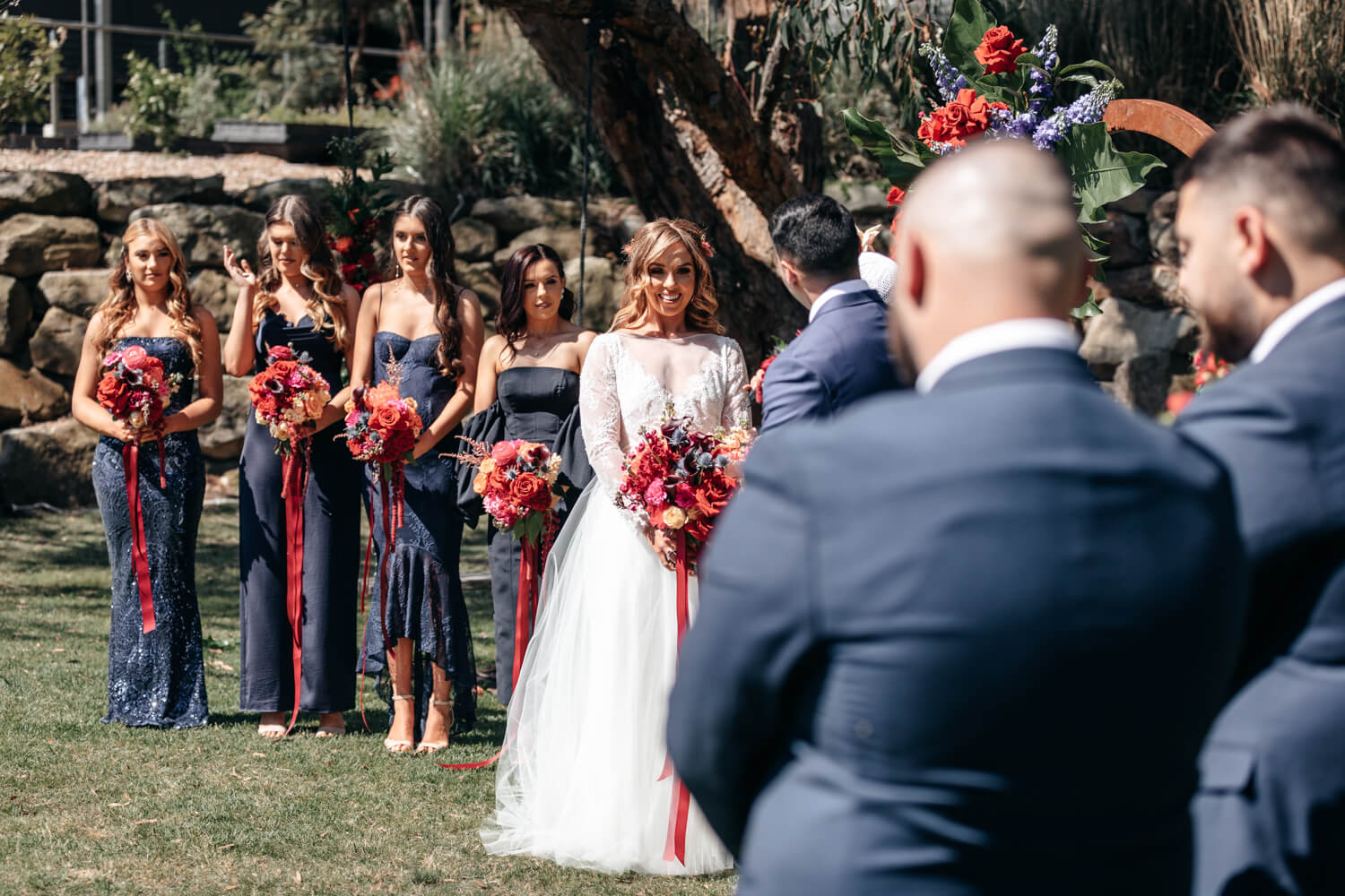 Venue – The Springs | Floral designer: Mimosa Floral Design | Celebrant: Bilal Dannoun | Make-up artist: Mahsa | Hair stylist: Hair By Halla | Videographer: Amico Films | Cake designer: Delicieux Cakes | Bride’s dress: Nelder Jones | Bride’s | Shoes: Puma | Hair piece: Norwest Florsit | Brides ring designer: Goldland Jewellery | Groom’s suit: Montagio | Groomsmen’s suit details: Tarocash | Rentals: BTS Eventhire
