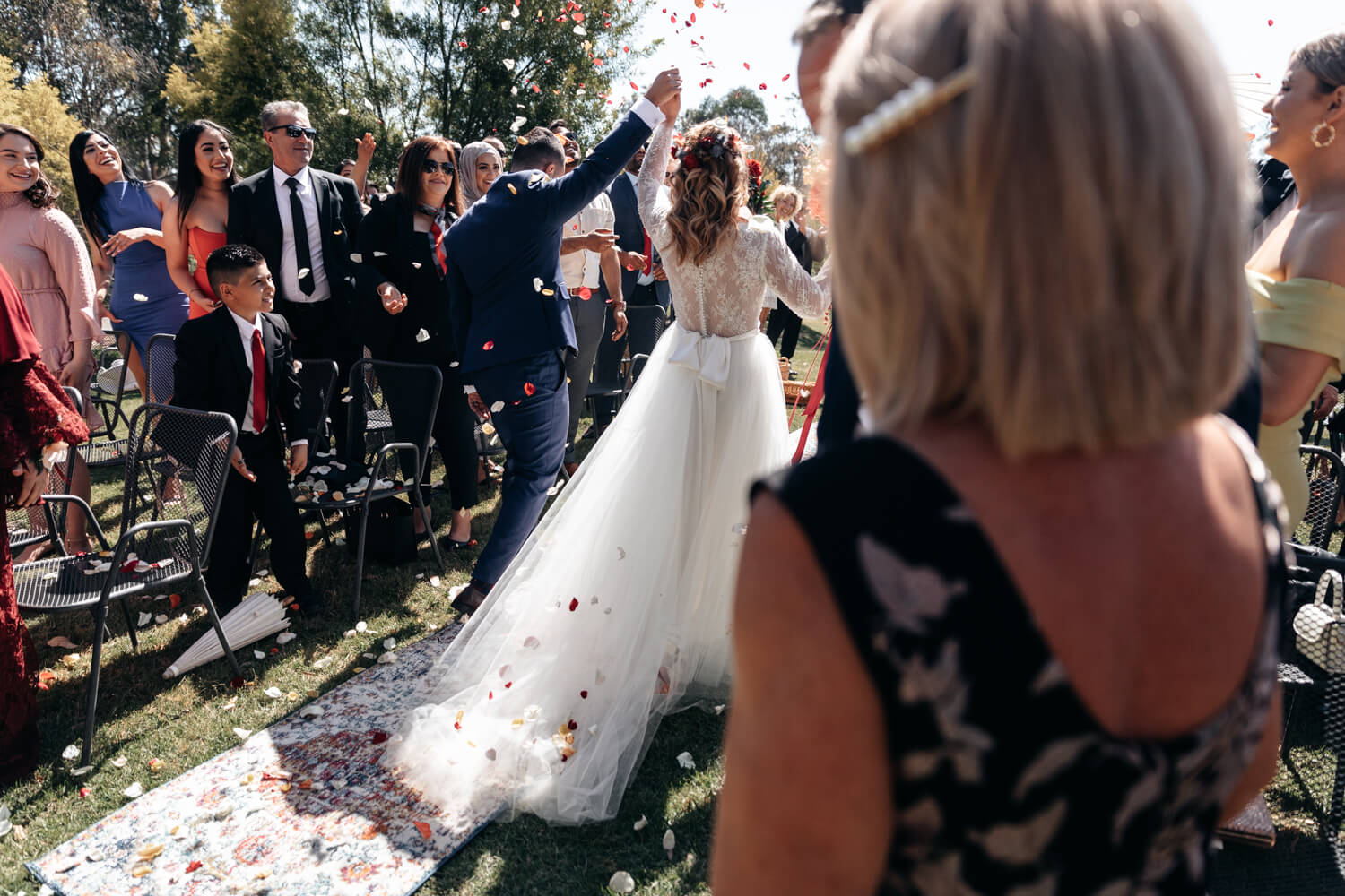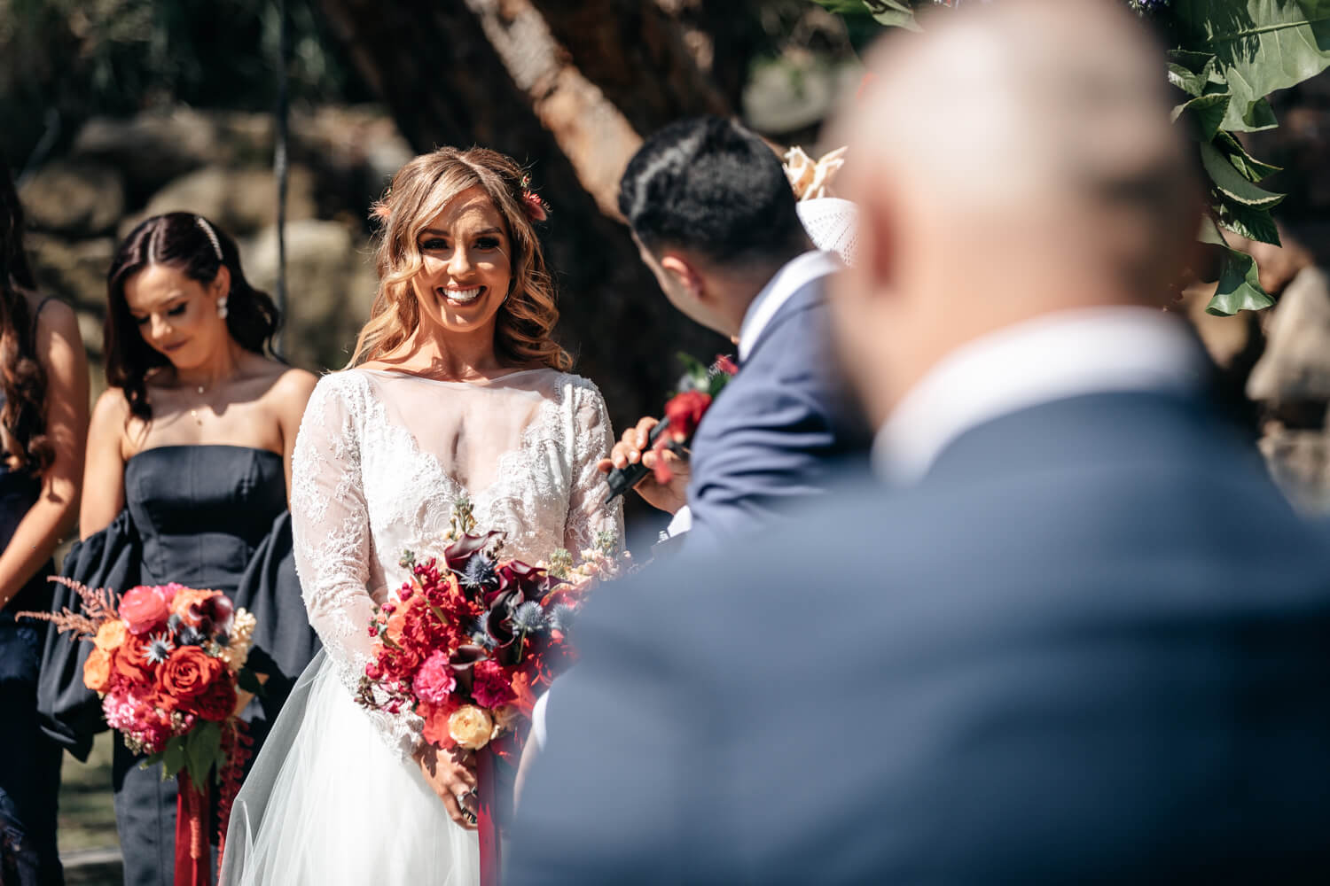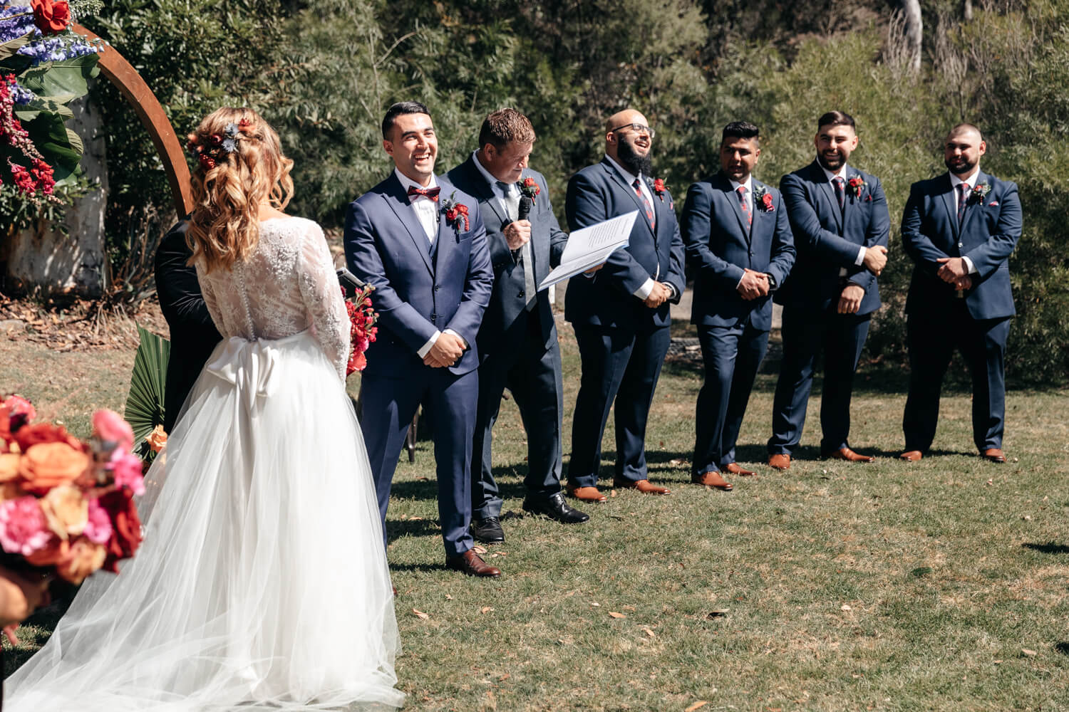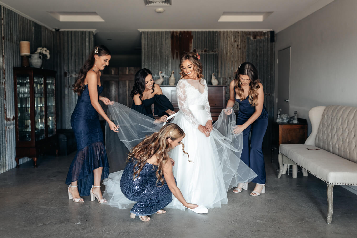 Venue – The Springs | Floral designer: Mimosa Floral Design | Celebrant: Bilal Dannoun | Make-up artist: Mahsa | Hair stylist: Hair By Halla | Videographer: Amico Films | Cake designer: Delicieux Cakes | Bride’s dress: Nelder Jones | Bride’s | Shoes: Puma | Hair piece: Norwest Florsit | Brides ring designer: Goldland Jewellery | Groom’s suit: Montagio | Groomsmen’s suit details: Tarocash | Rentals: BTS Eventhire
