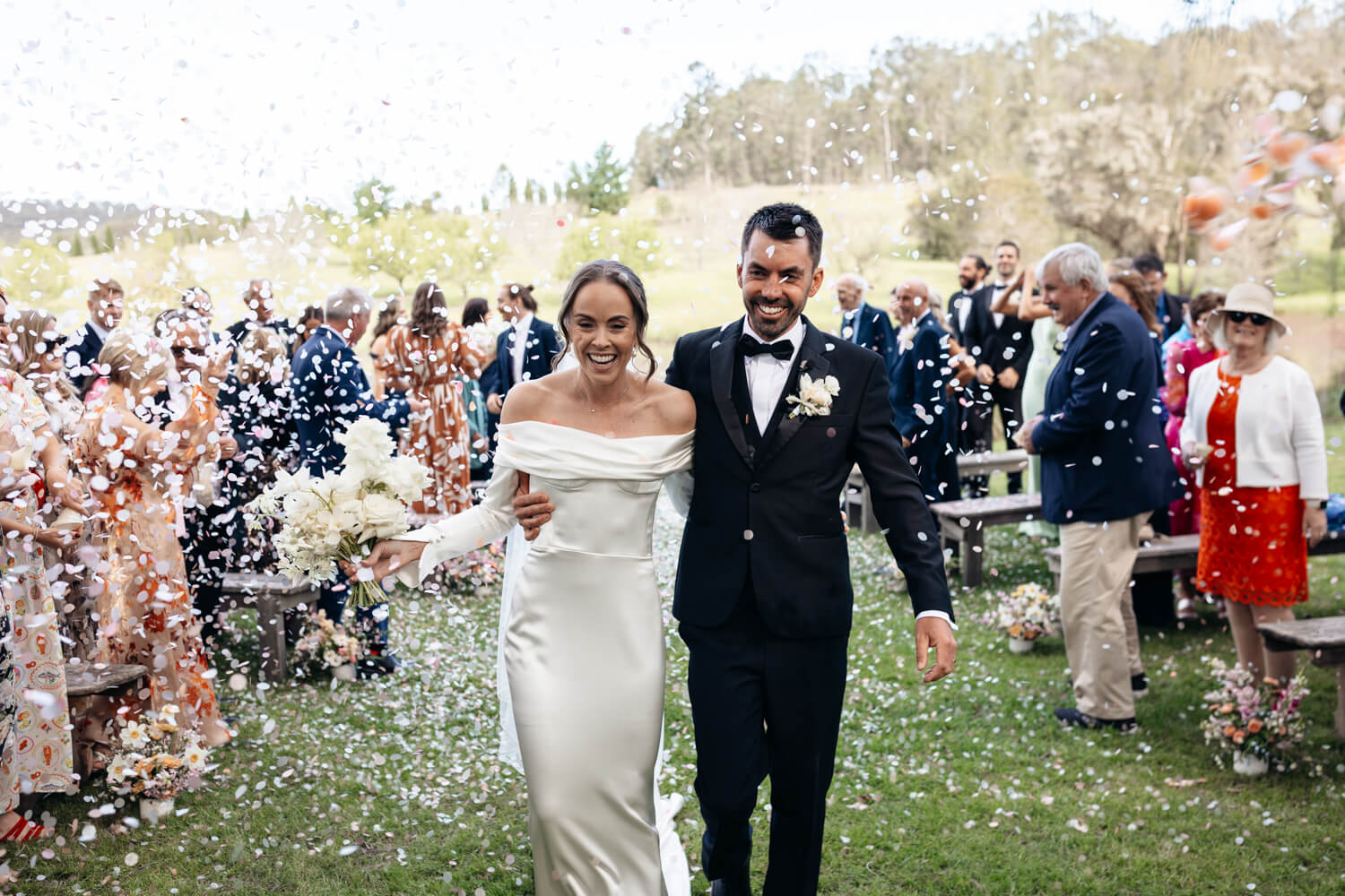 Venue: The Woodhouse Wollombi | Photographer: Lonely Hunter | Video: Euphoria Films | Make-up artist: Make Up by Bonnie Lee | Catering: Fennel & Co Floral designer: Pandanus Design | Music: Suaver | Cake: Cakes by Han | Bride’s dress: Corston Corture