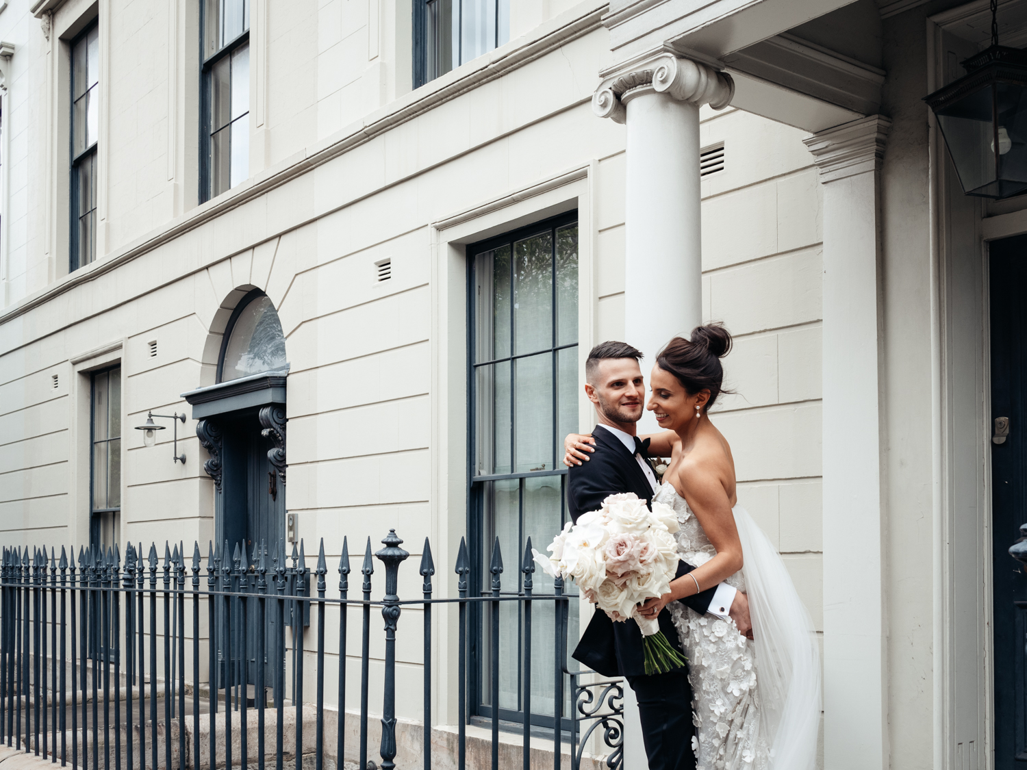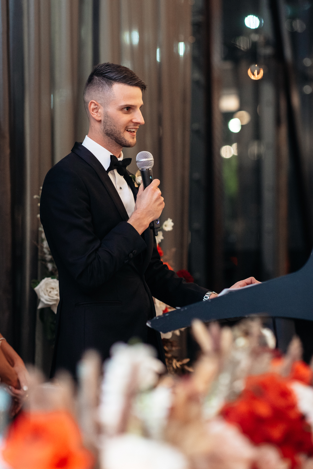 Venue: View By Sydney | Make-up: Heidi Scarlett King Make up | Hair: Sarah J Hair & Make up | Florals: Lavande Designs | Video: Shaking Man Films | DJ: Upbeat Social | Dress: Oscar Delarenta | Shoes: Bared Footwear | Rings: Ronald J Crisp Jeweller | Suits: Peppers Formal Wear | Groom’s Accessories: Tagheuer | Cars: London Cab Weddings & Prestige Hire | Signs: Lavender Creative